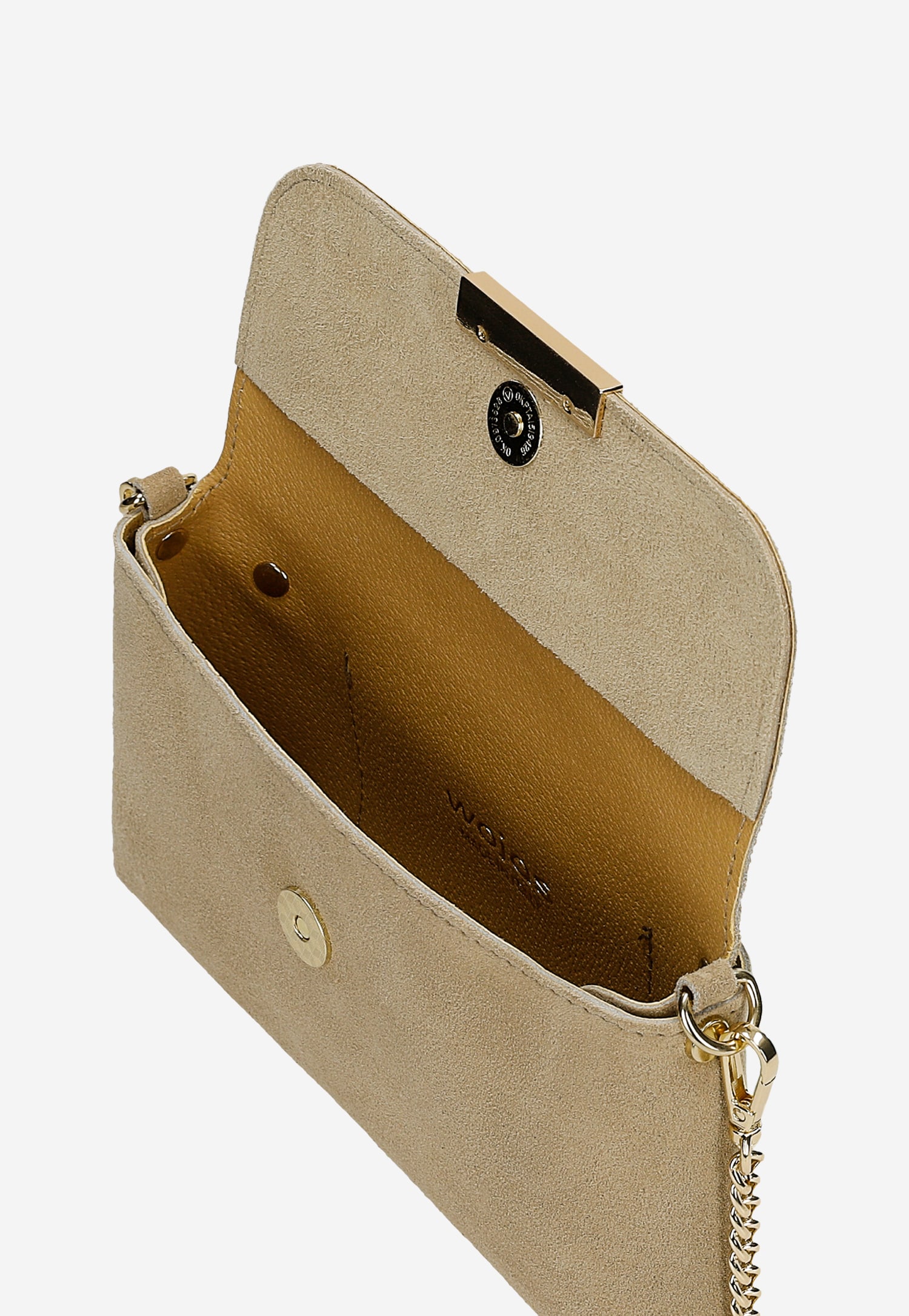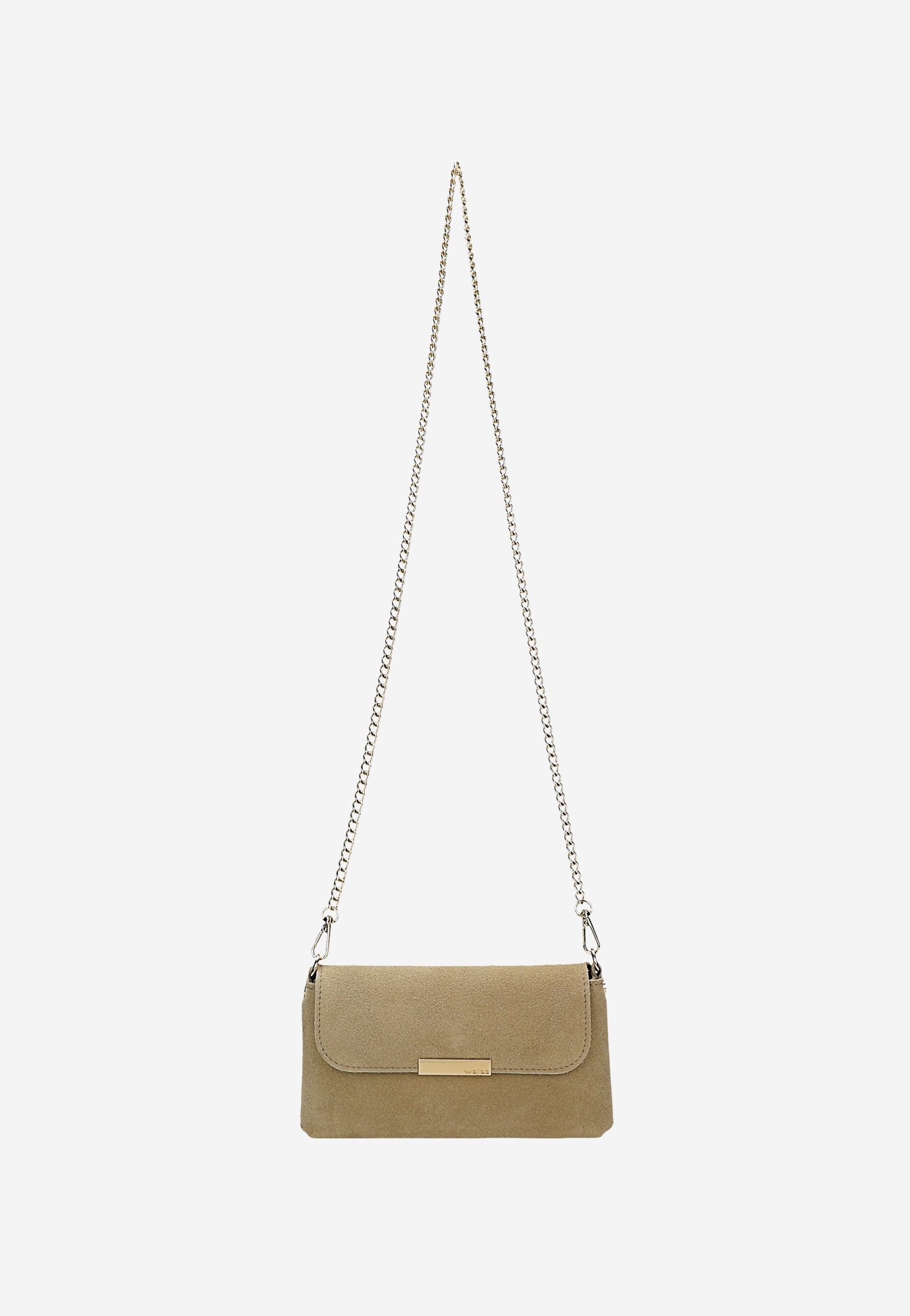 Ta beżowa torebka to kwintesencja eleganckiego minimalizmu. Wykonana z miękkiej dwoiny welurowej, zachwyca delikatną, aksamitną fakturą, która subtelnie wyróżnia się w każdej stylizacji. Złoty łańcuszek nadaje całości wyrafinowanego charakteru, a kompaktowe wymiary (21 x 11 x 2 cm) sprawiają, że idealnie komponuje się z wizytowymi kreacjami.