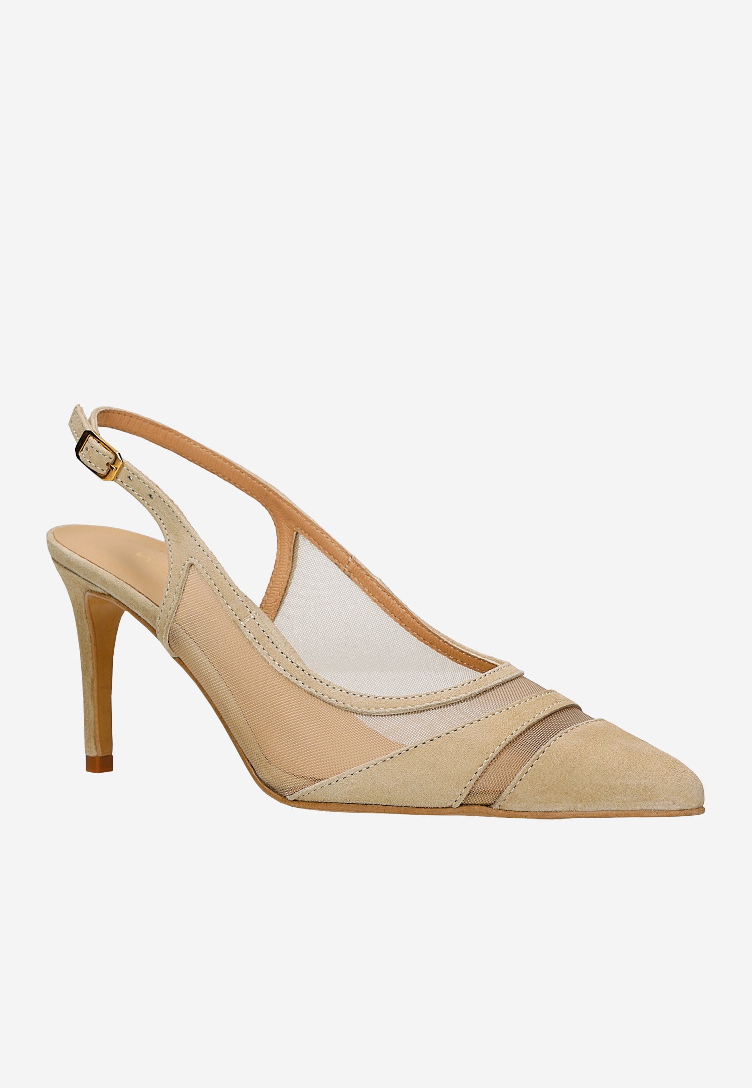 Szpilka o wysokości 7,5 cm wysmukla sylwetkę i nadaje postawie pewności, idealnie sprawdzając się w formalnych sytuacjach. Wewnętrzna podszewka ze skóry świńskiej i koziej gwarantuje wygodę przez cały dzień. Uniwersalny beżowy kolor pozwala na komponowanie butów z garderobą biznesową, koktajlowymi sukienkami czy eleganckimi spodniami.