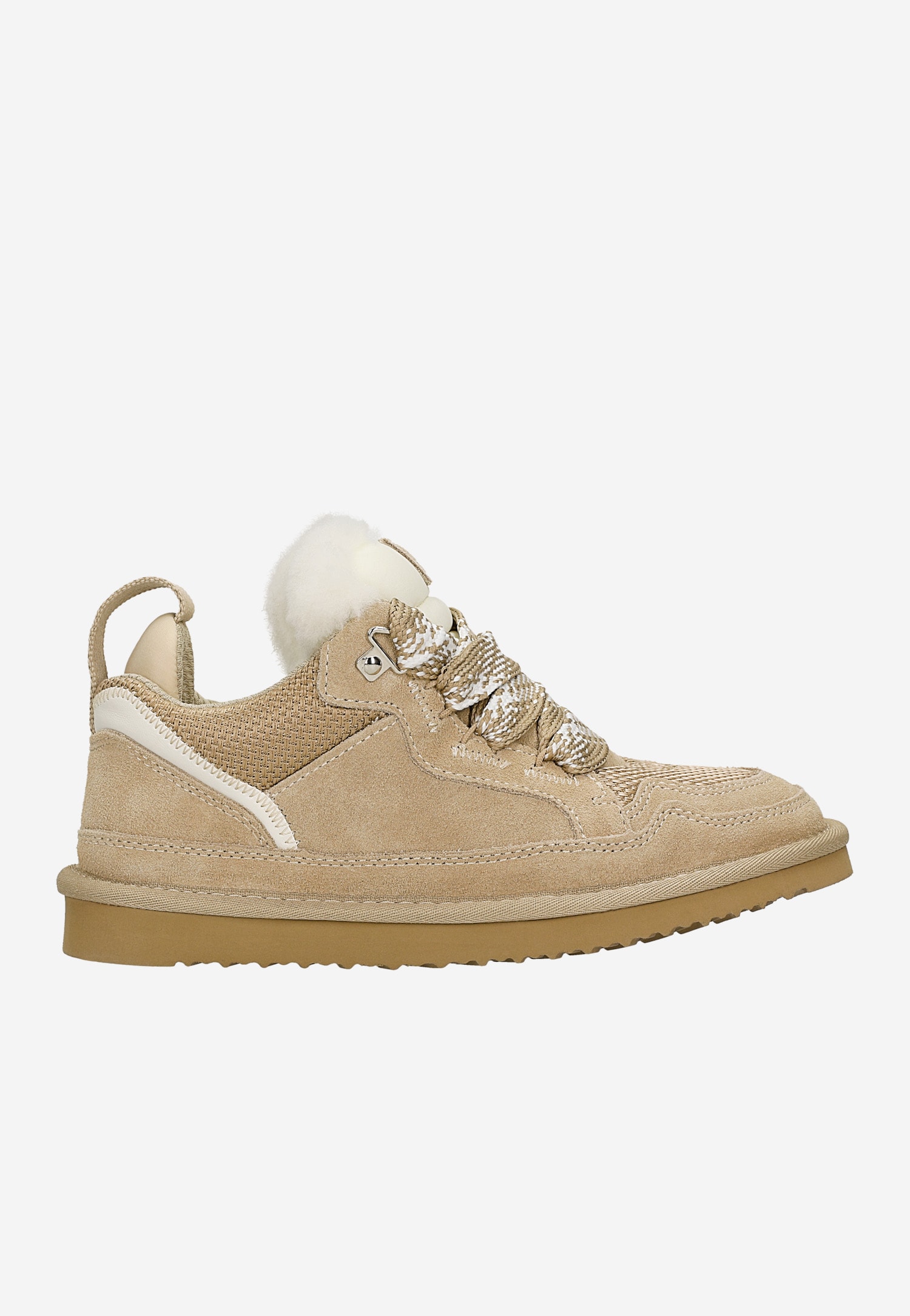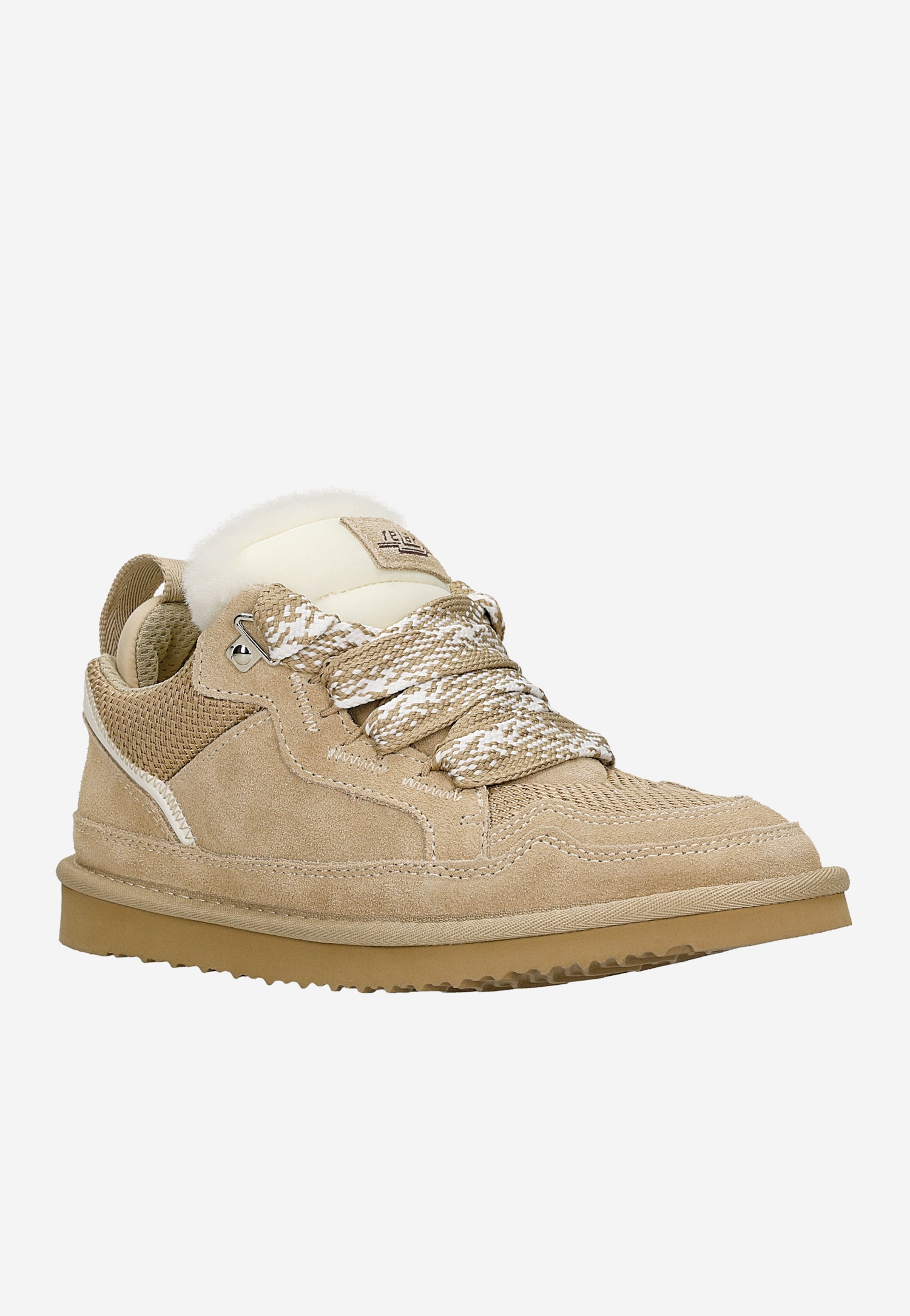 Beżowe niskie śniegowce z puchatym językiem i grubymi sznurówkami R64013-84