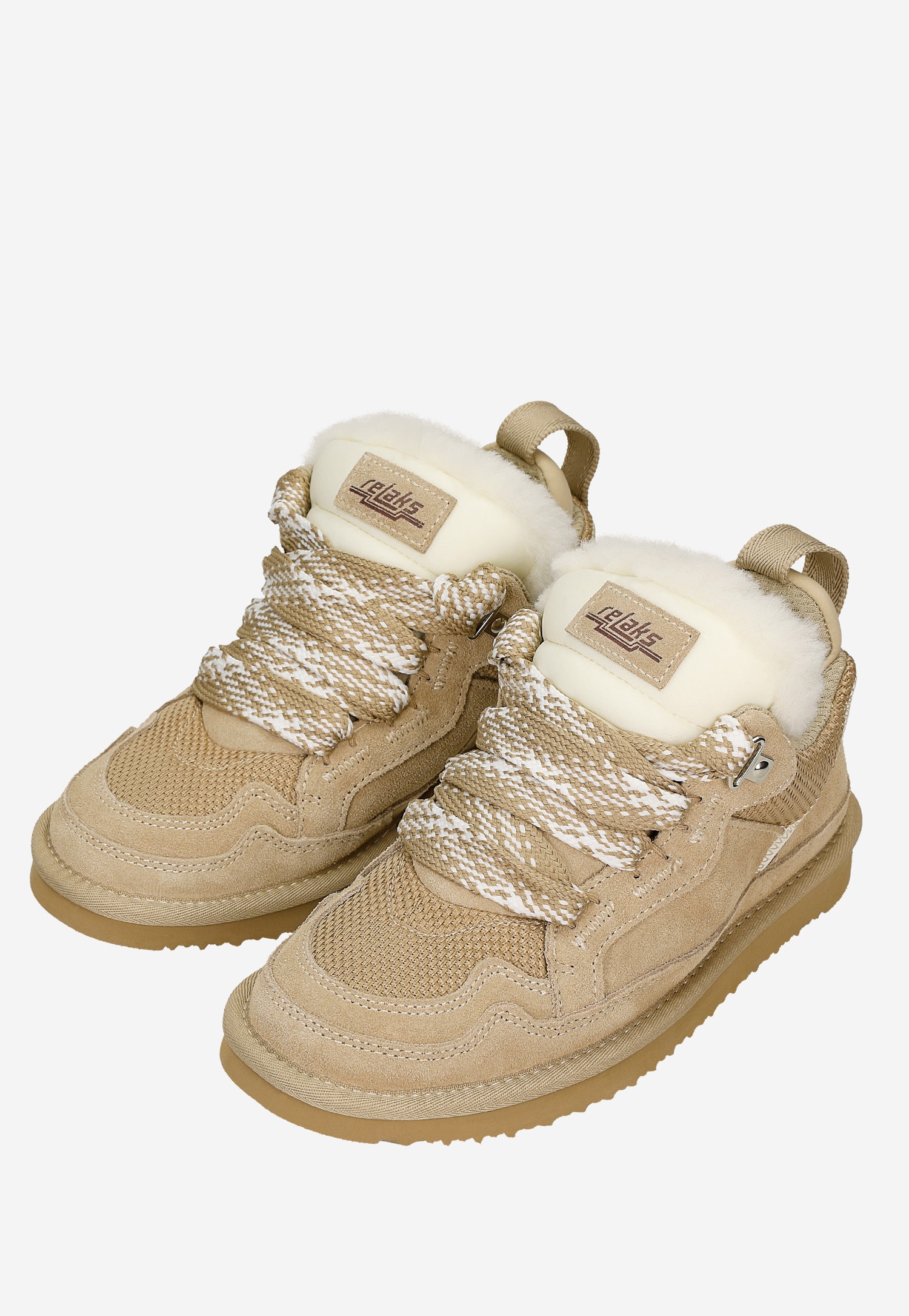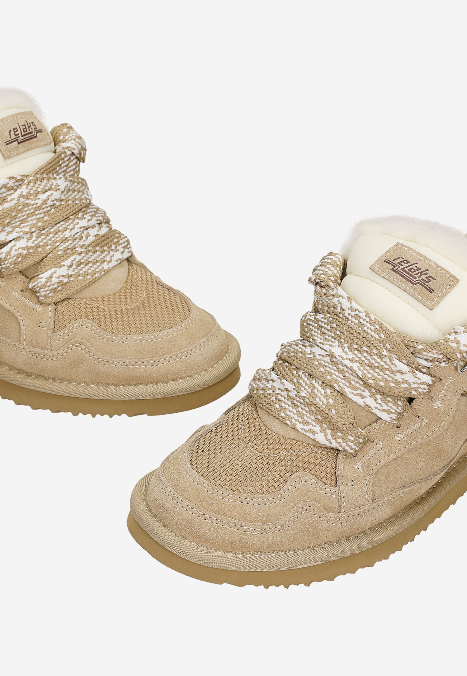 Beżowe niskie śniegowce z puchatym językiem i grubymi sznurówkami R64013-84 Czarne niskie śniegowce RELAKS z futerkiem R64013-81 Niskie śniegowce RELAKS z podszewką ze skóry owczej R64013-82