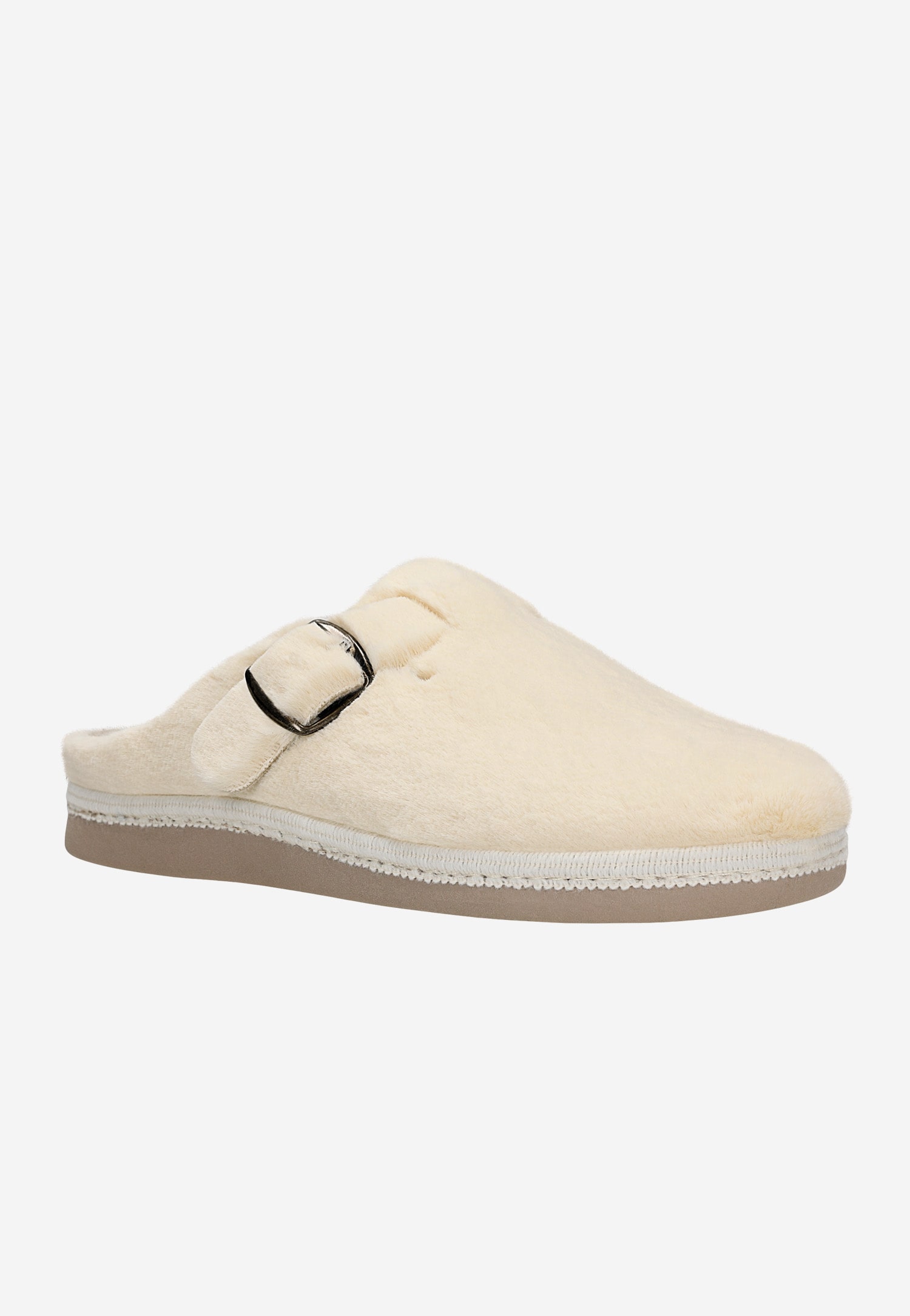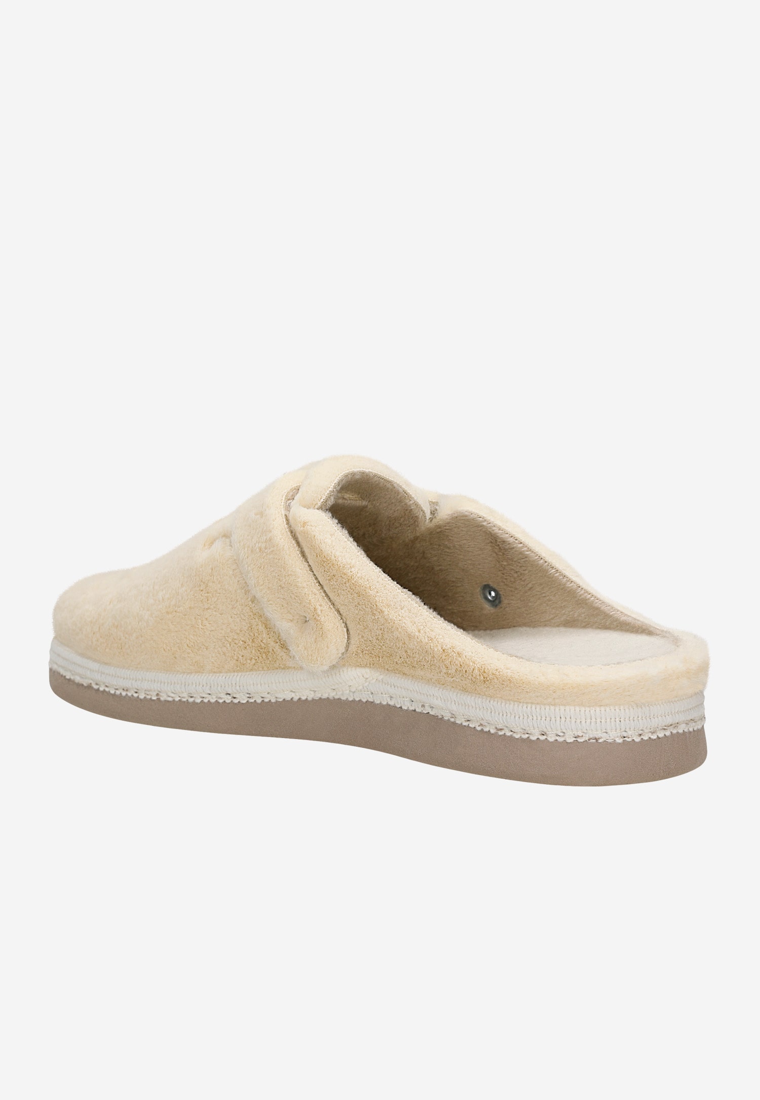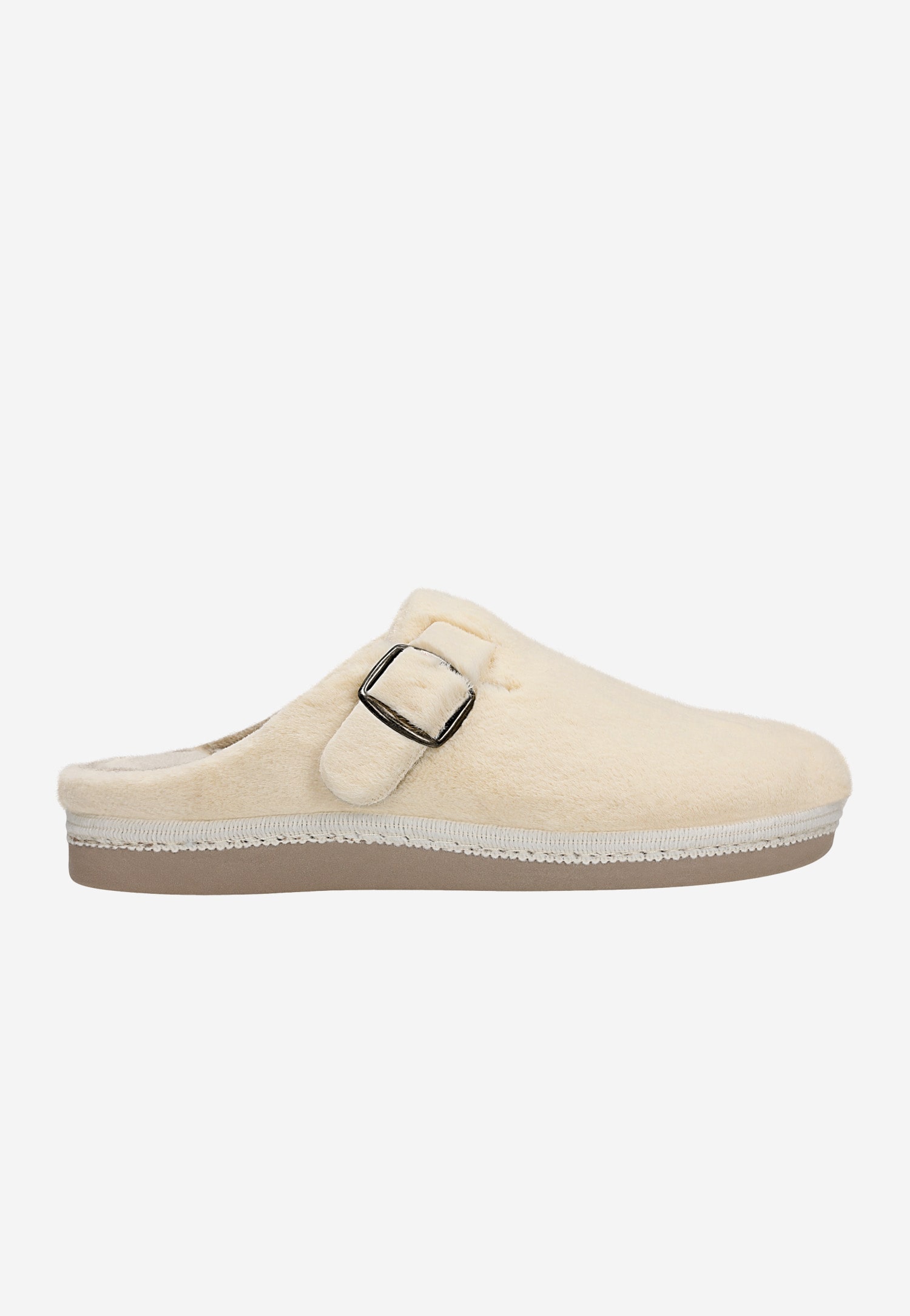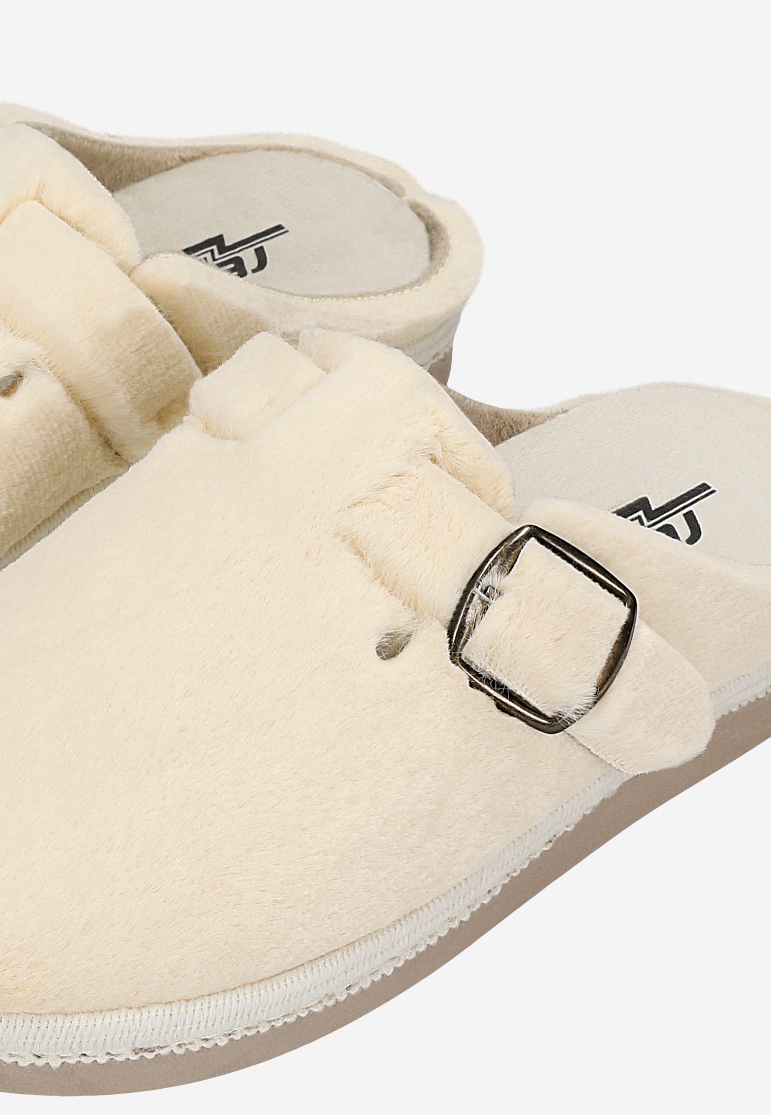 Beżowe pantofle damskie RELAKS z miękkiego syntetycznego futerka R3401214