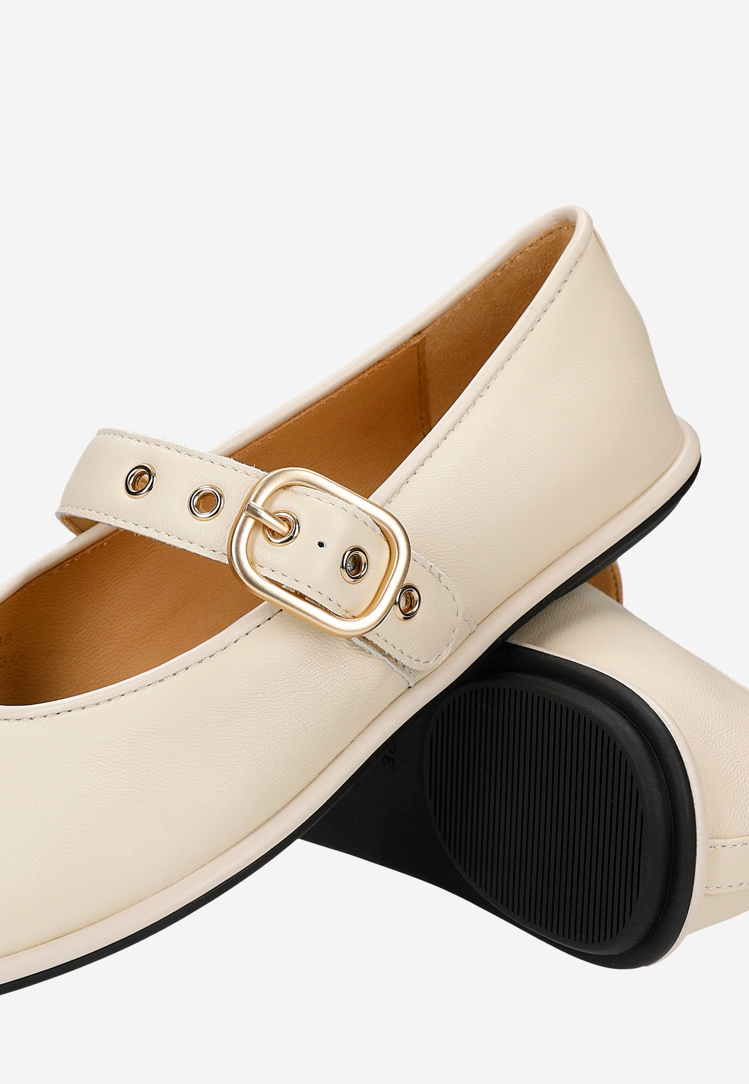 Te beżowe skórzane baleriny to doskonały wybór dla kobiet ceniących komfort i ponadczasowy styl. Wykonane ze skóry licowej w uniwersalnym beżowym odcieniu, świetnie komponują się zarówno z jeansami, jak i eleganckimi sukienkami. Neutralny kolor sprawia, że baleriny pasują do większości modowych zestawień w stylu urban.