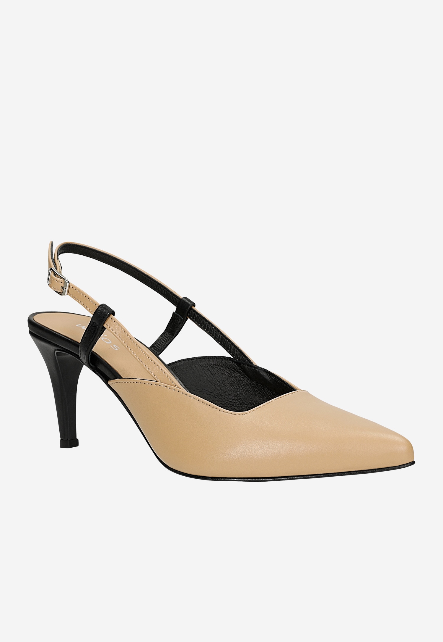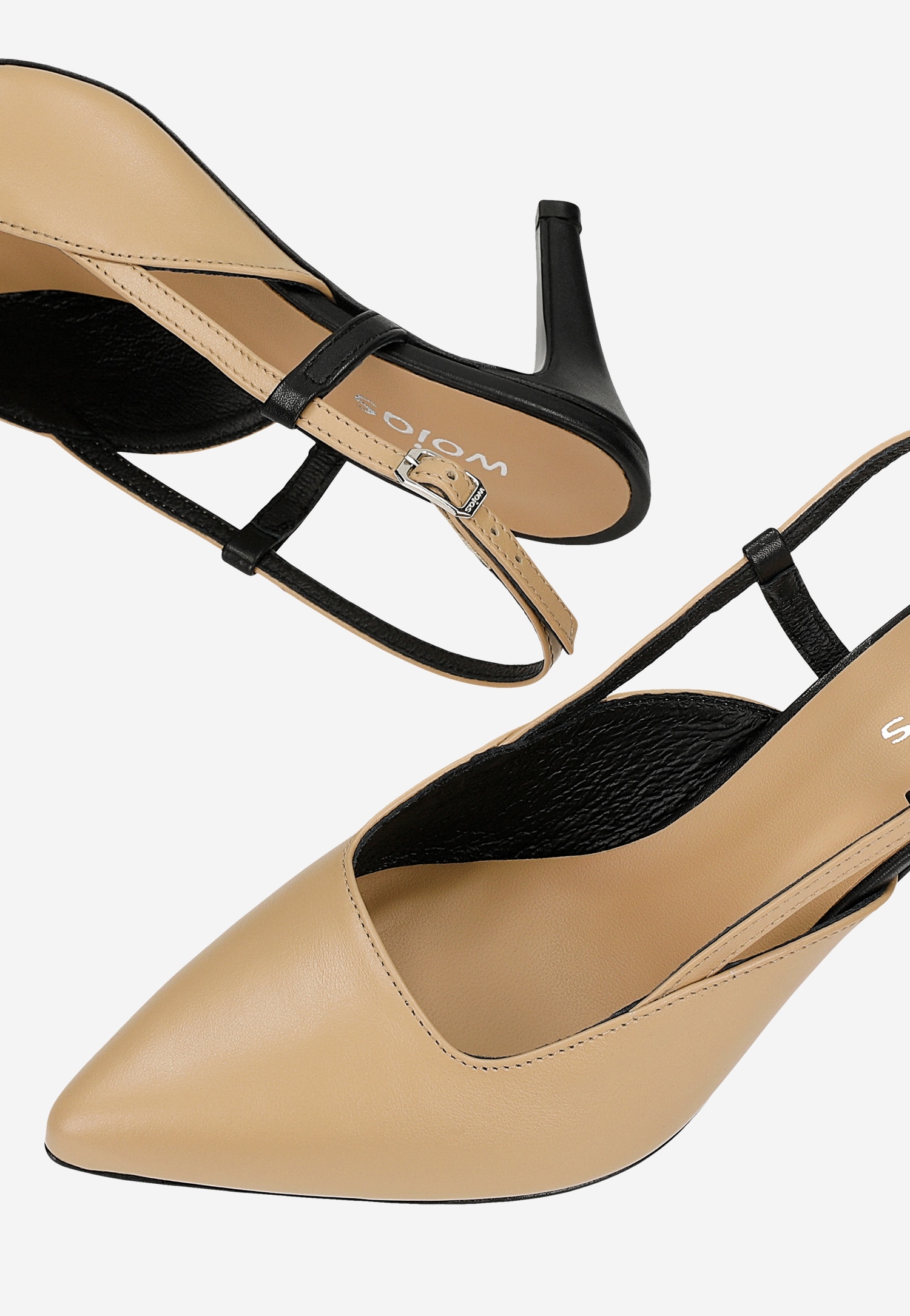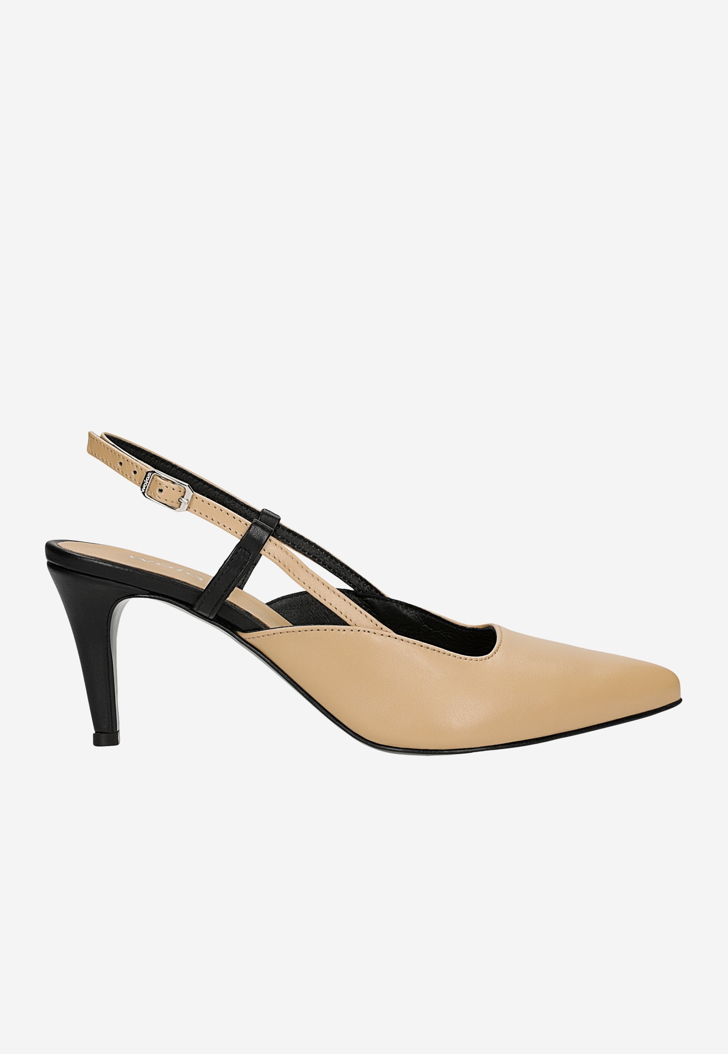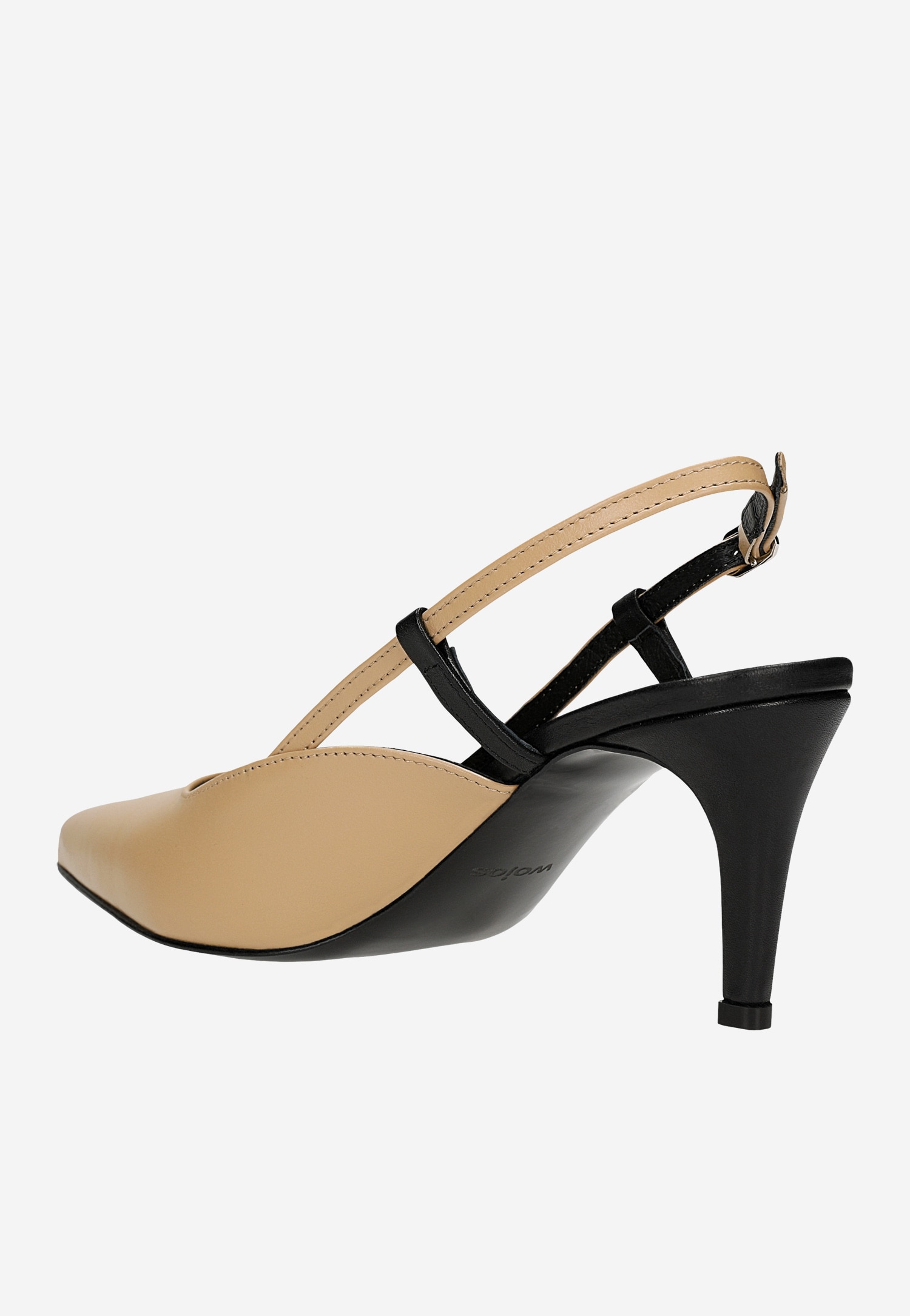 Te wyjątkowe czółenka łączą klasyczną elegancję z nowoczesnym designem. Dwukolorowa kompozycja beżu i czerni nadaje im niepowtarzalny charakter, który z łatwością urozmaici każdą formalną stylizację. Odkryta pięta dodaje lekkości i kobiecego charakteru, idealnie prezentując się w wiosennych zestawieniach.