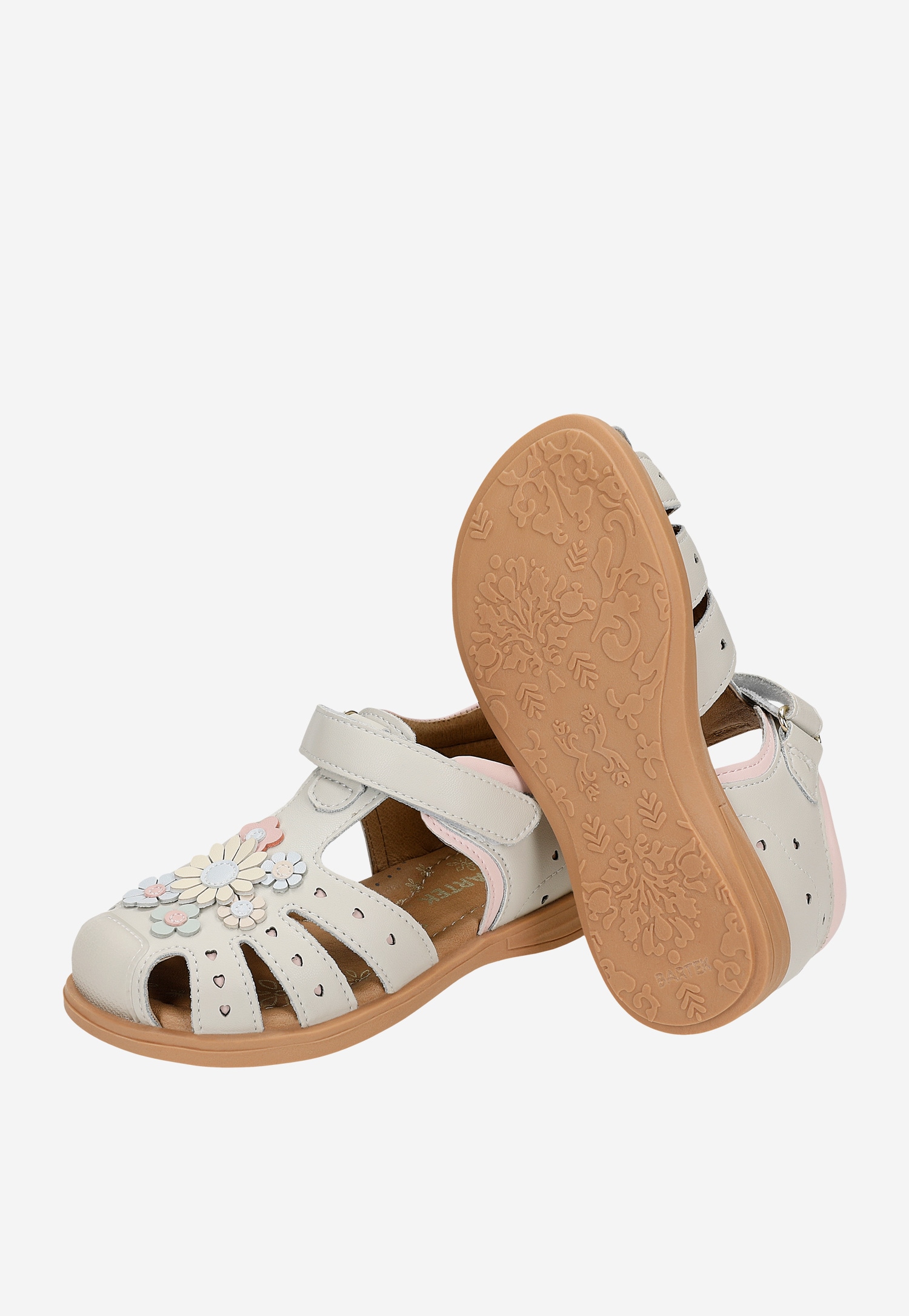 Te beżowo-różowe sandały BARTEK to idealny wybór na ciepłe dni pełne zabawy. **Delikatny kwiatowy wzór** dodaje im dziewczęcego uroku, sprawiając, że Twoja córka poczuje się wyjątkowo podczas każdej letniej przygody.