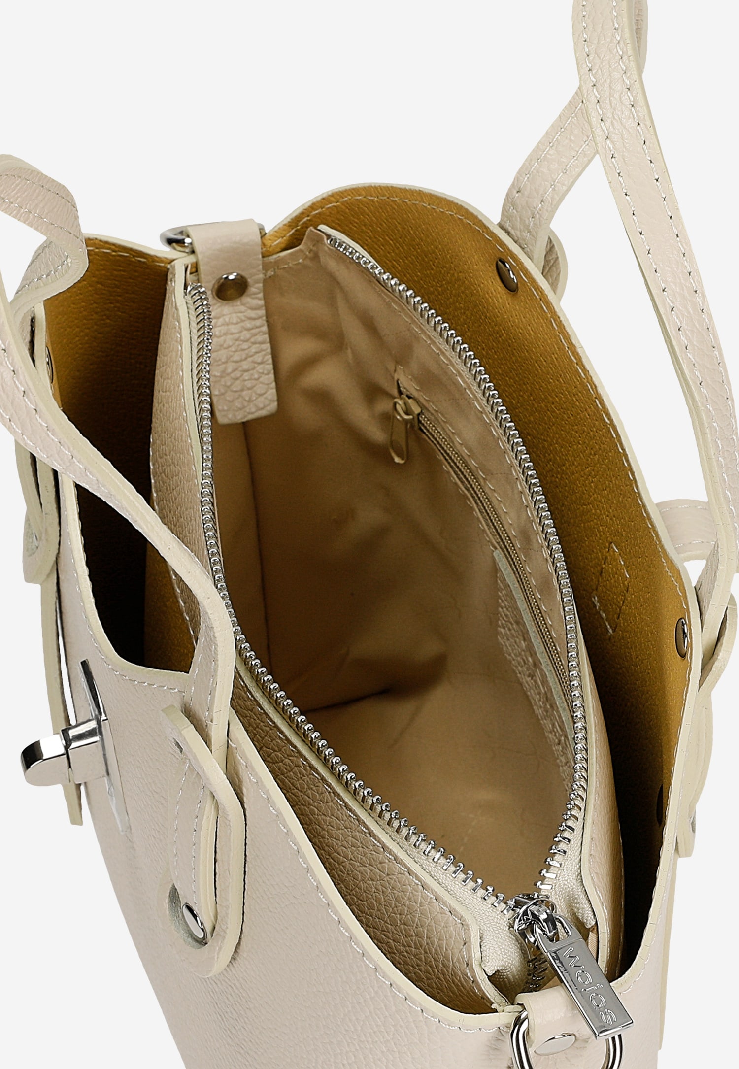 Ten beżowy skórzany kuferek to doskonały wybór dla kobiet ceniących ponadczasową elegancję i praktyczność. Wykonany z wysokiej jakości skóry licowej, zapewnia trwałość i stylowy wygląd przez cały rok. Uniwersalny beżowy odcień idealnie komponuje się zarówno z casualowymi, jak i eleganckimi stylizacjami.