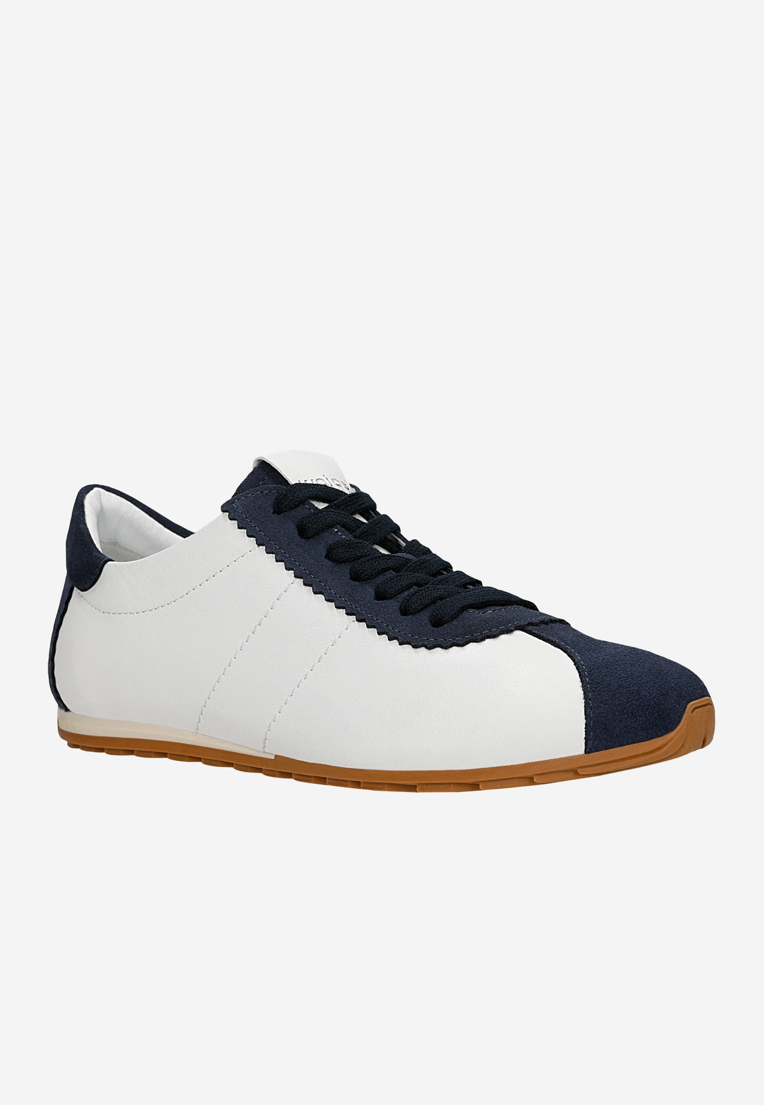 Te białe sneakersy damskie z efektownymi granatowymi wstawkami to idealne połączenie sportowego charakteru z miejskim stylem. Wykonane z wysokiej jakości skóry licowej i dwoinowej welurowej, buty zapewniają trwałość i elegancki wygląd przez cały rok.