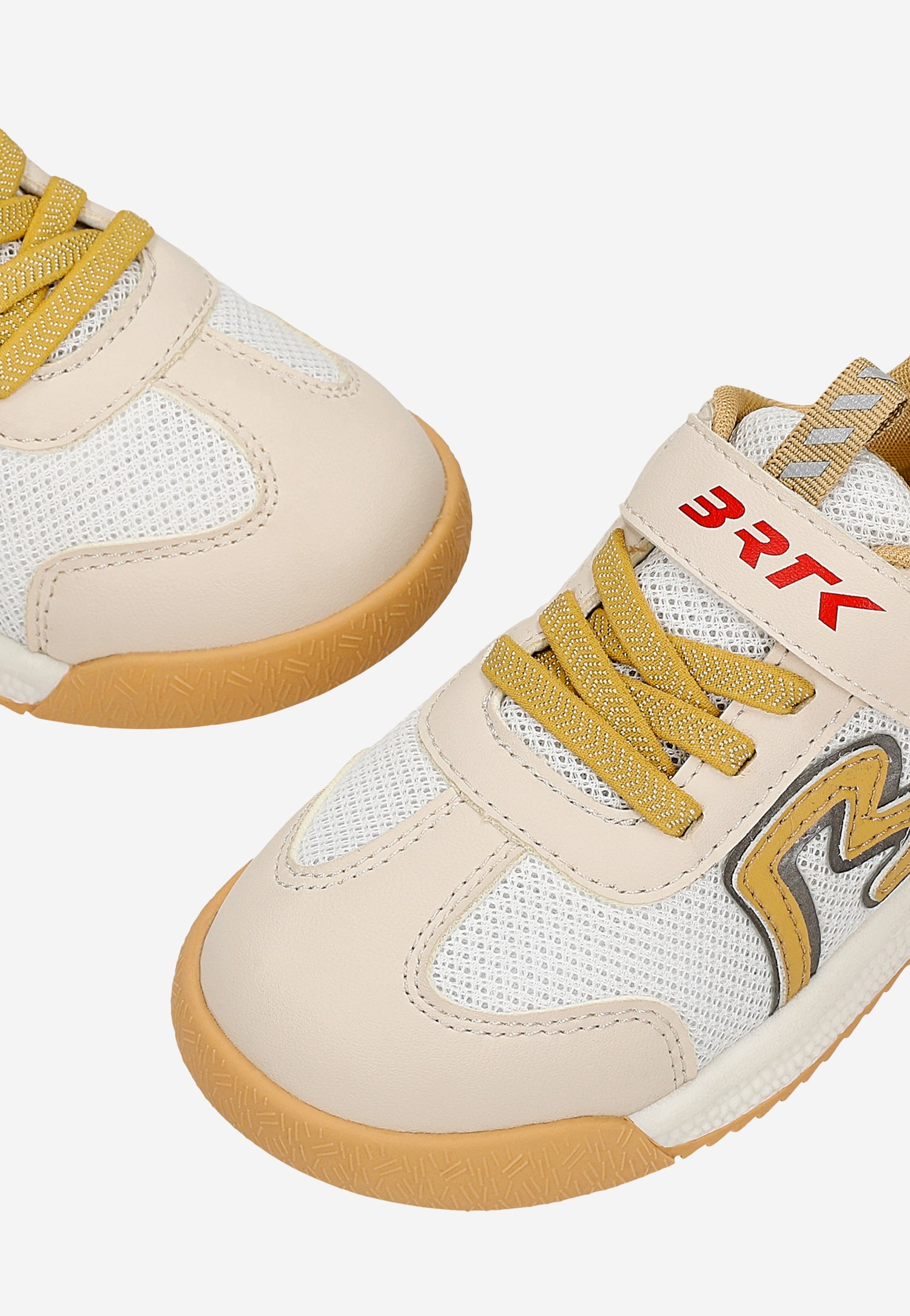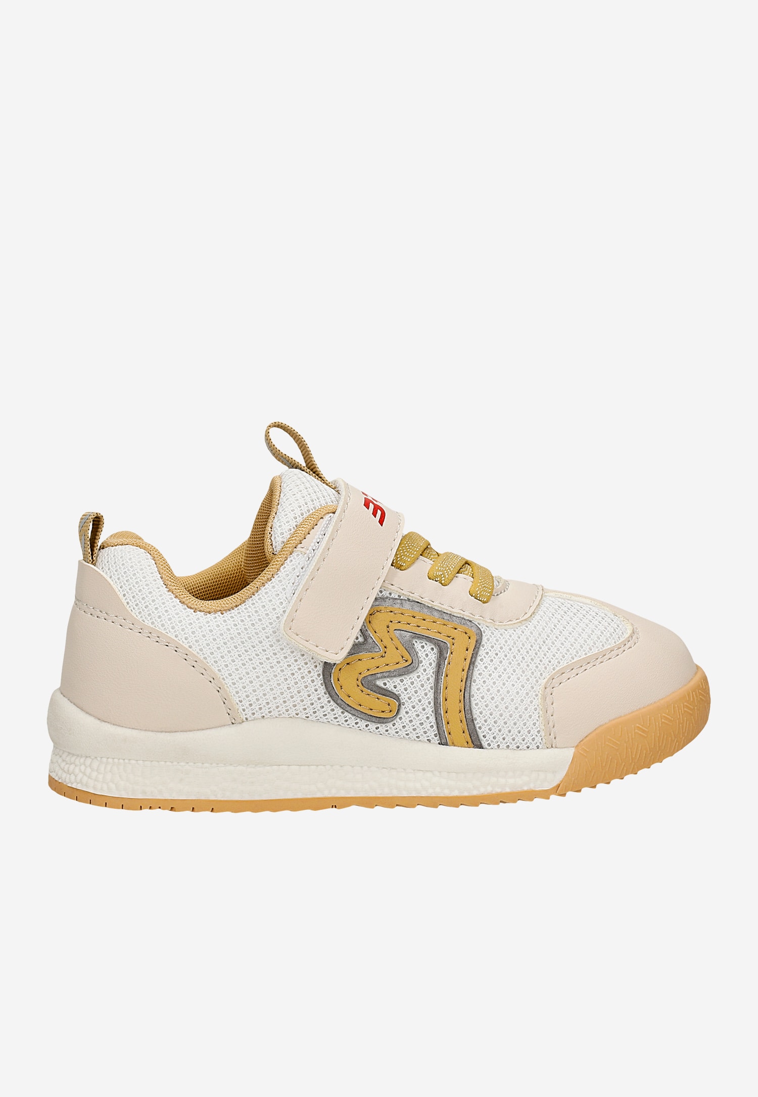 Model osadzono na płaskiej podeszwie o wysokości 1,5 cm z obcasem 2,5 cm, która zapewnia dziecku stabilność podczas biegania i skakania. Tekstylna podszewka dba o odpowiednią cyrkulację powietrza, chroniąc stópki przed nadmiernym poceniem się. Neutralna kolorystyka w odcieniach beżu i bieli sprawia, że sneakersy pasują do większości dziecięcych stylizacji – od sportowych dresów po casualowe zestawy z jeansami.