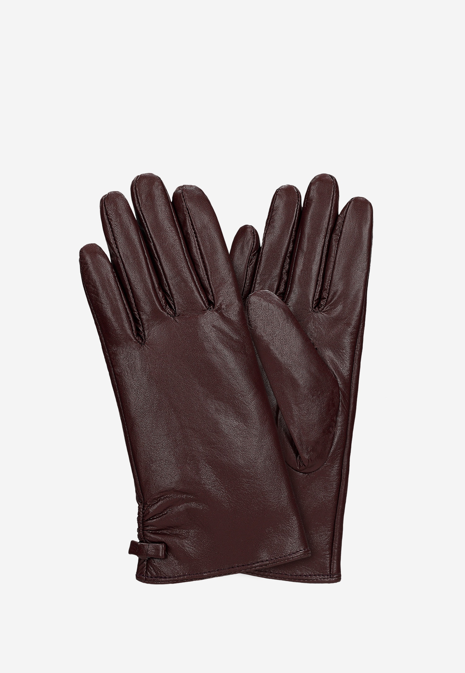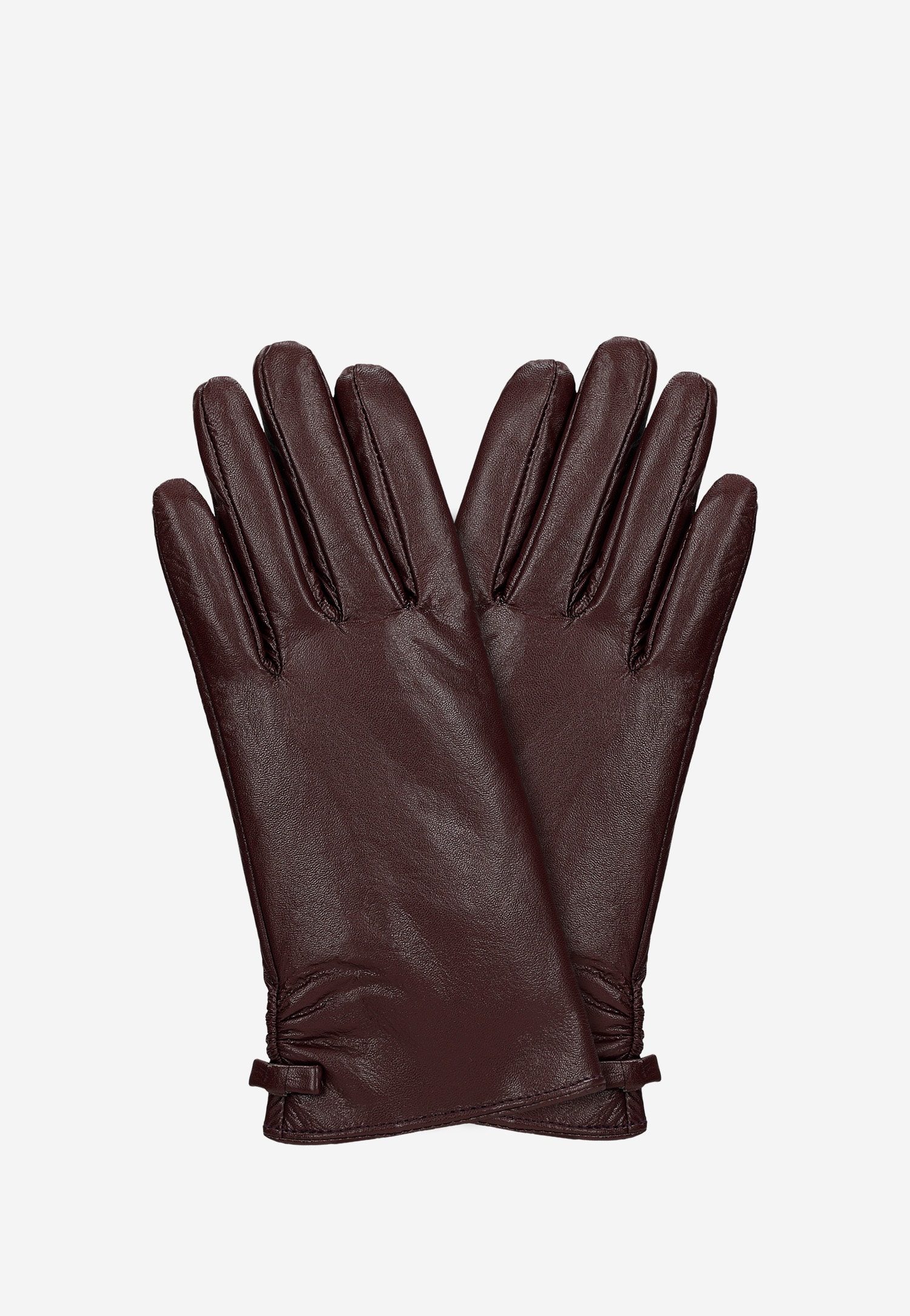 Bordowe skórzane rękawiczki damskie dotykowe do smartfona 98127-55 Widok 1