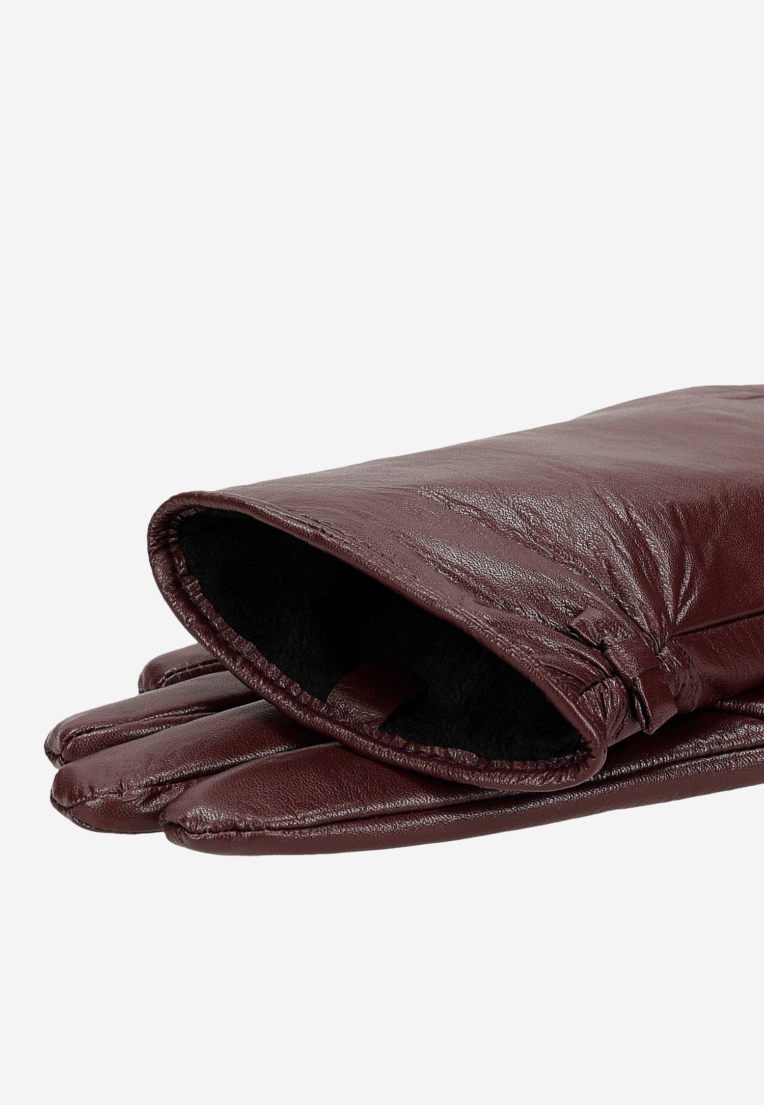 Bordowe skórzane rękawiczki damskie dotykowe do smartfona 98127-55