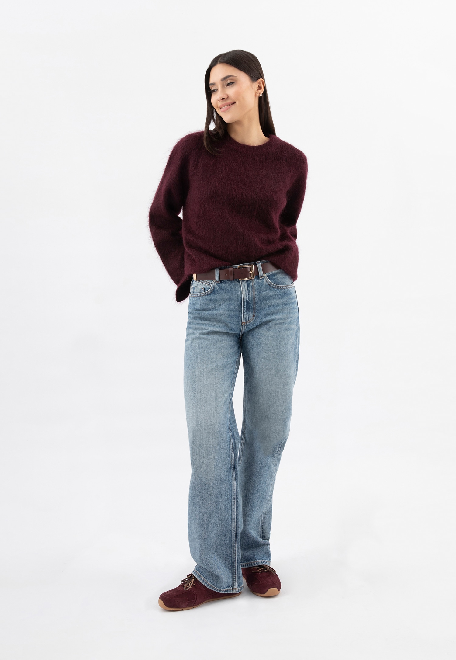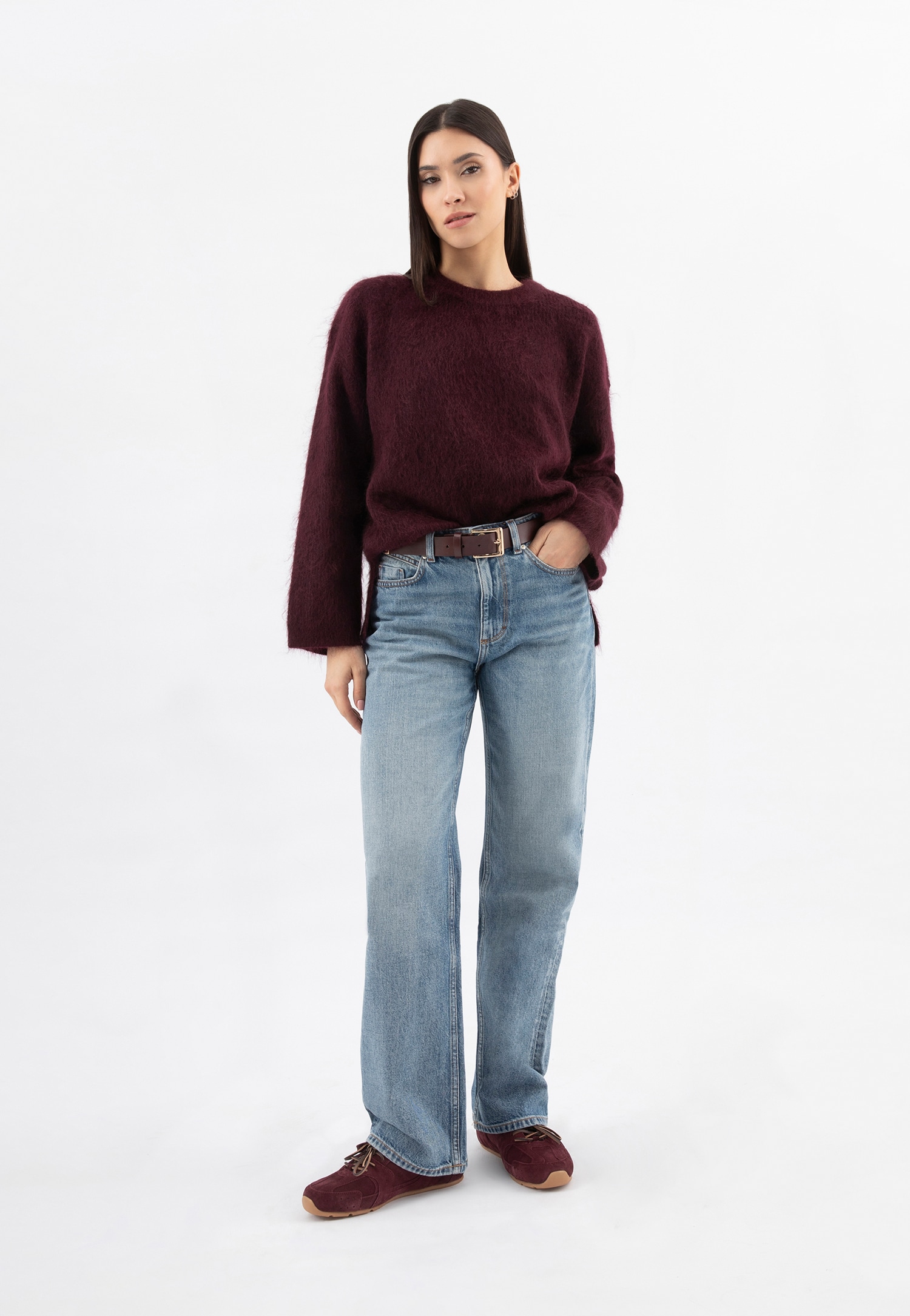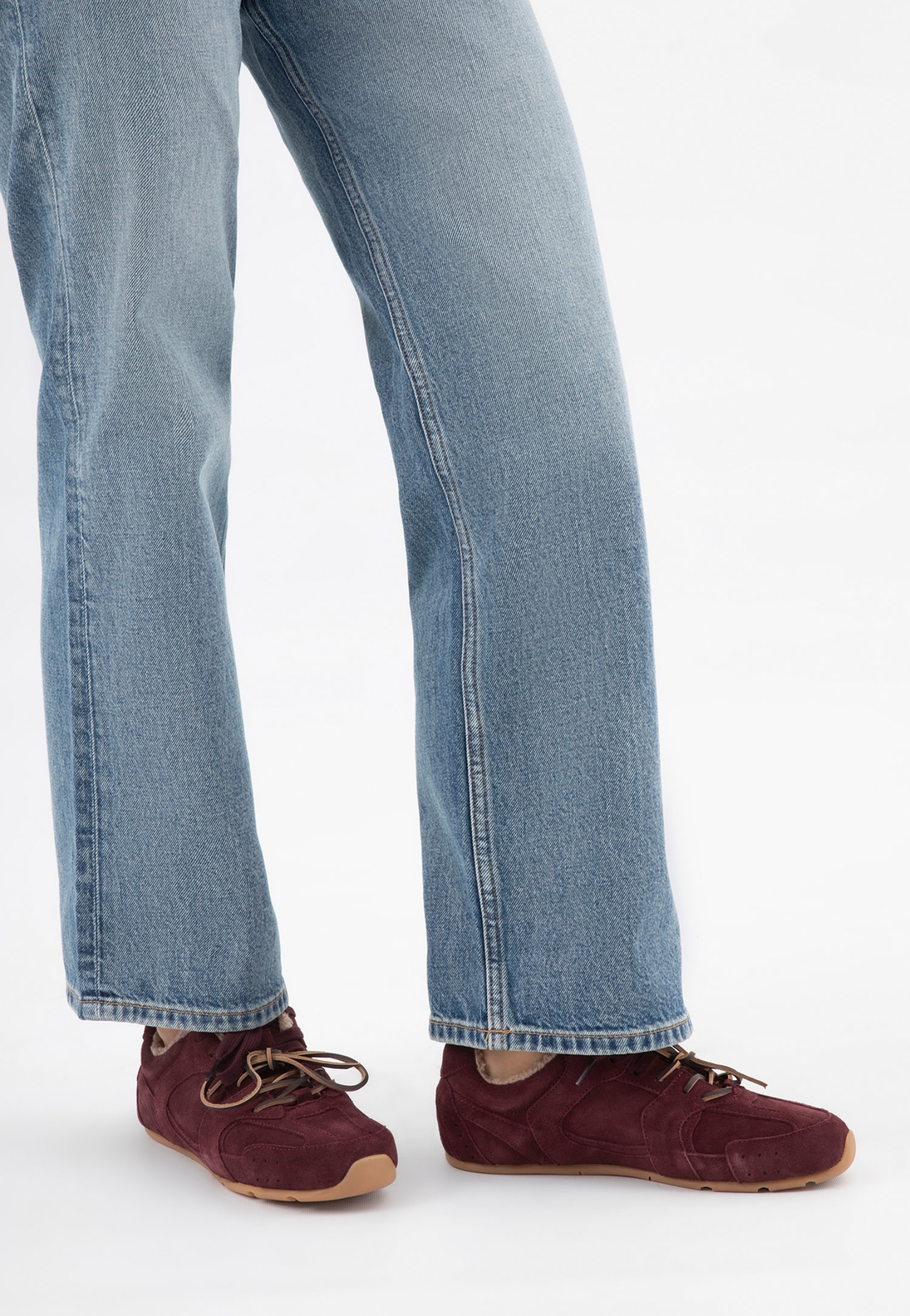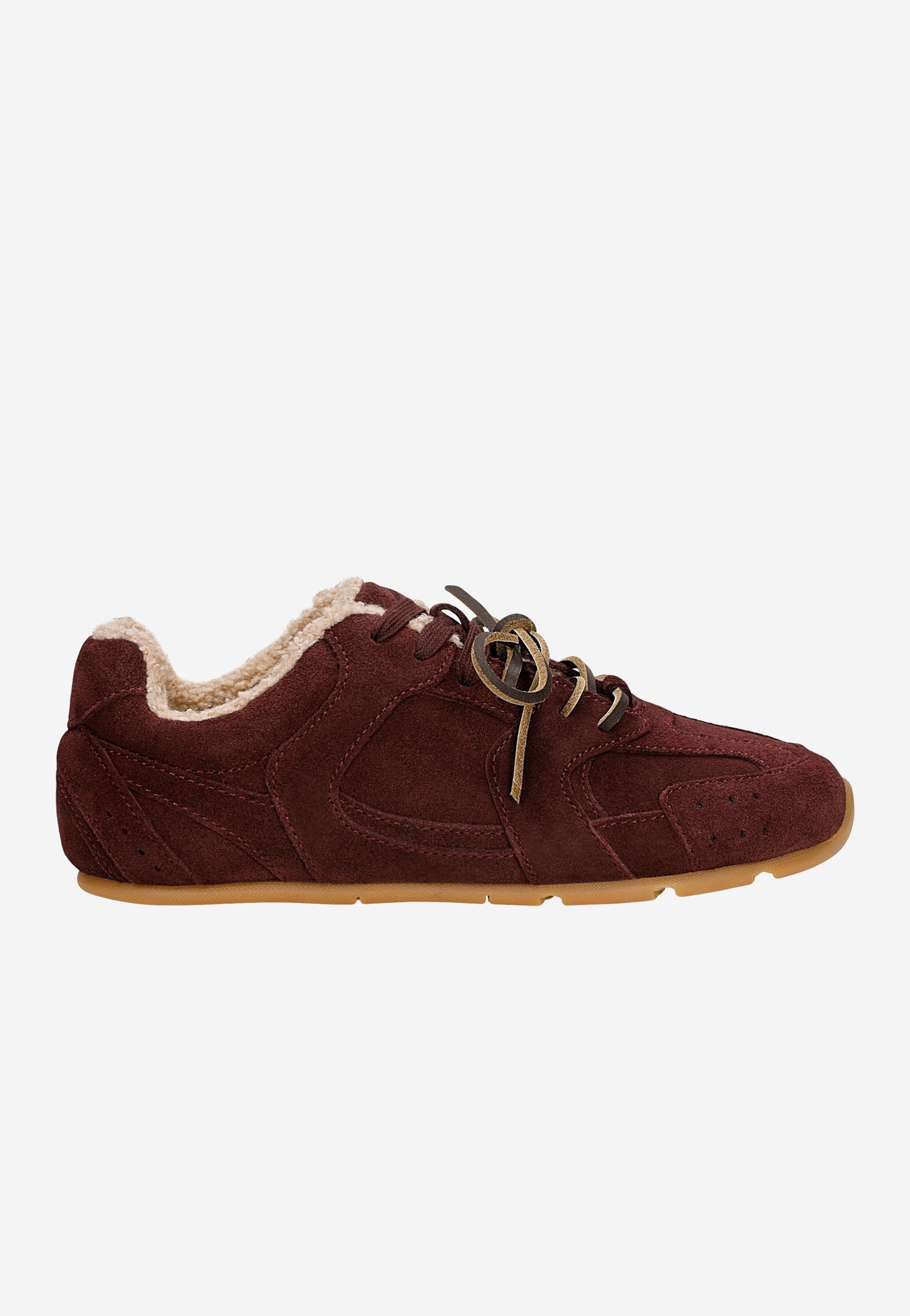 · bordowe sneakersy damskie wykonano z dwoiny welurowej,