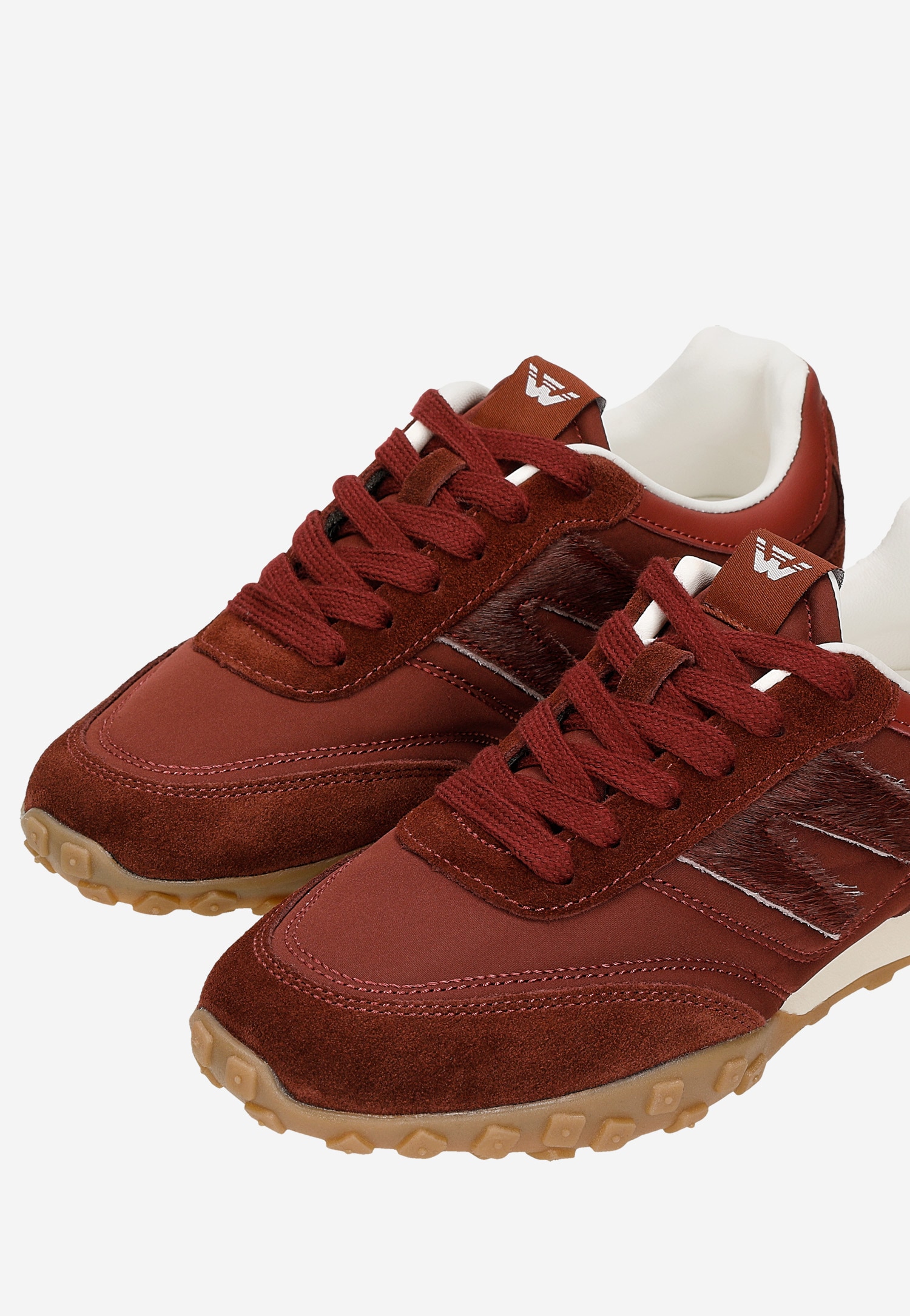 Bordowe sneakersy damskie z łączonych skór 46374-85 Widok 1