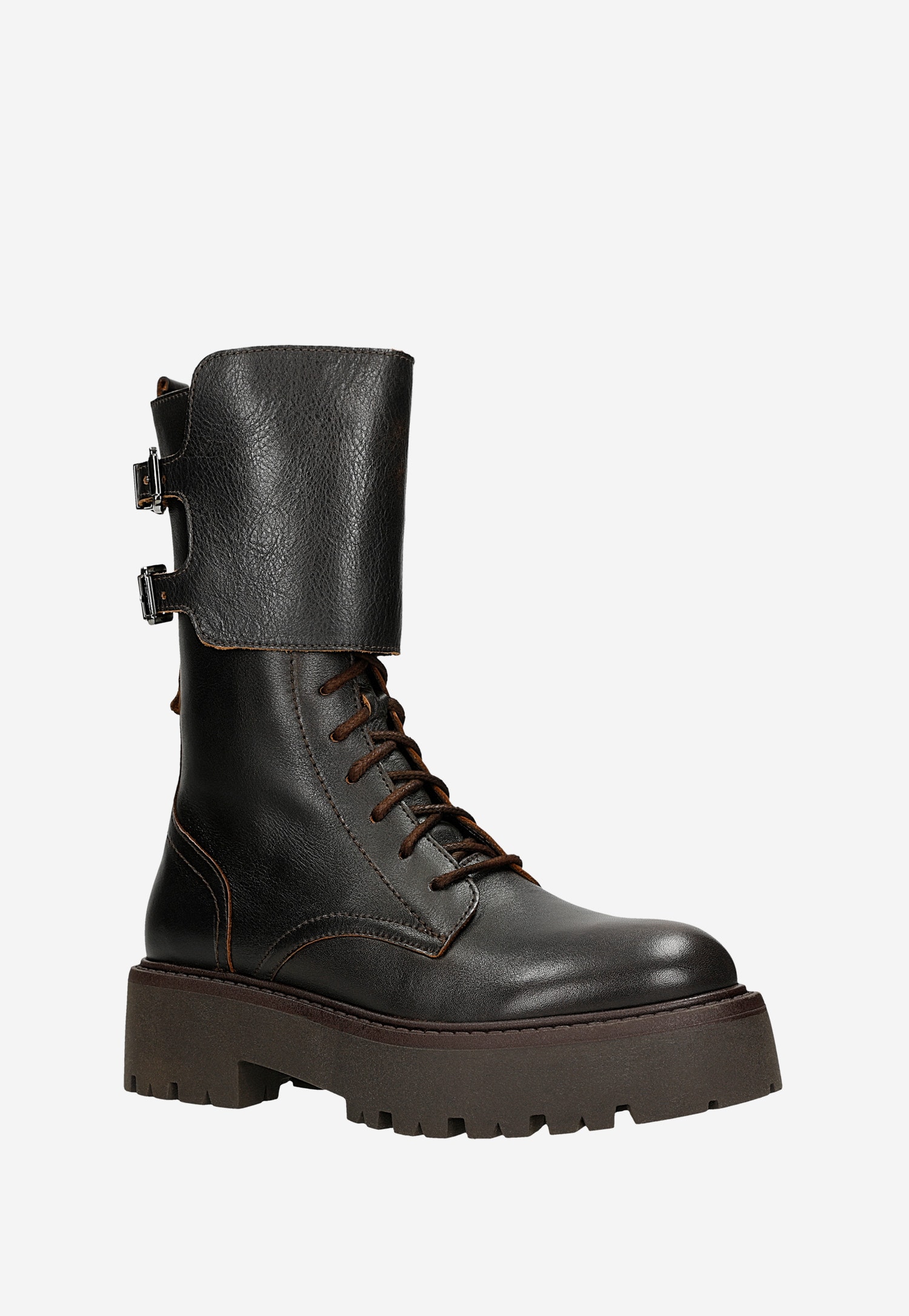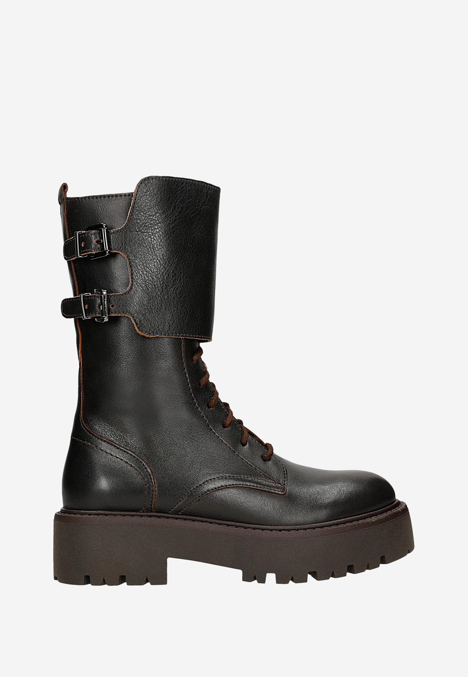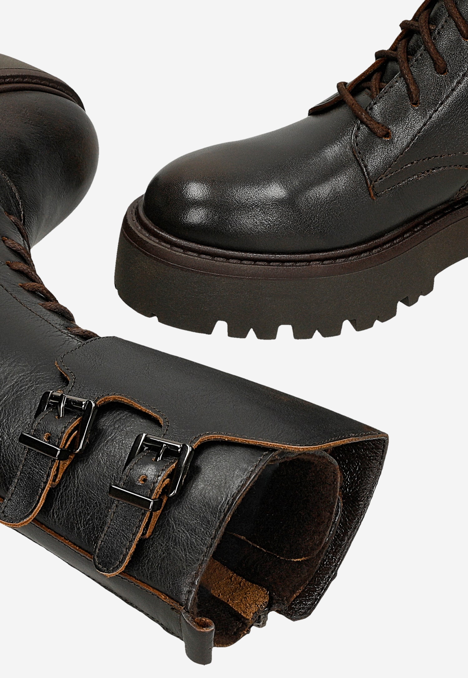 Brązowe bikery damskie na platformie 64148-52 Widok 1