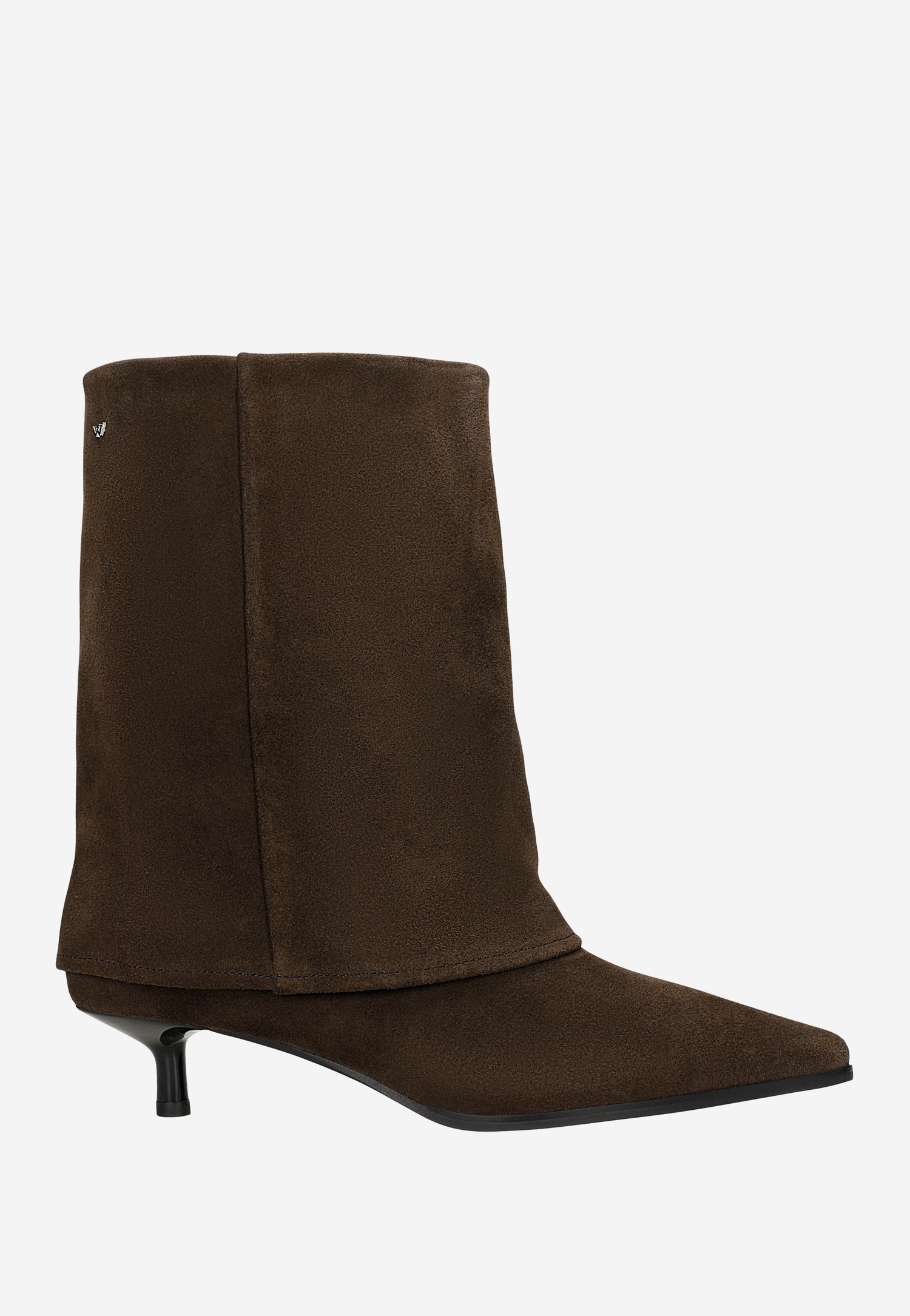 Brązowe botki damskie na niskiej szpilce 55345-62