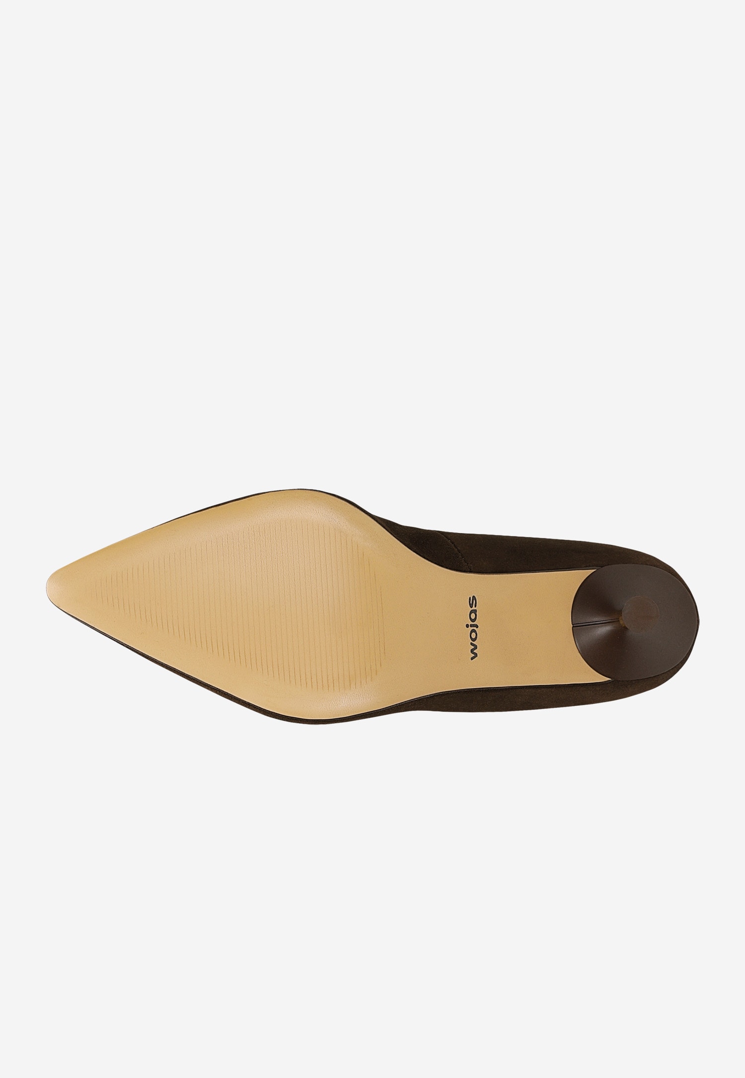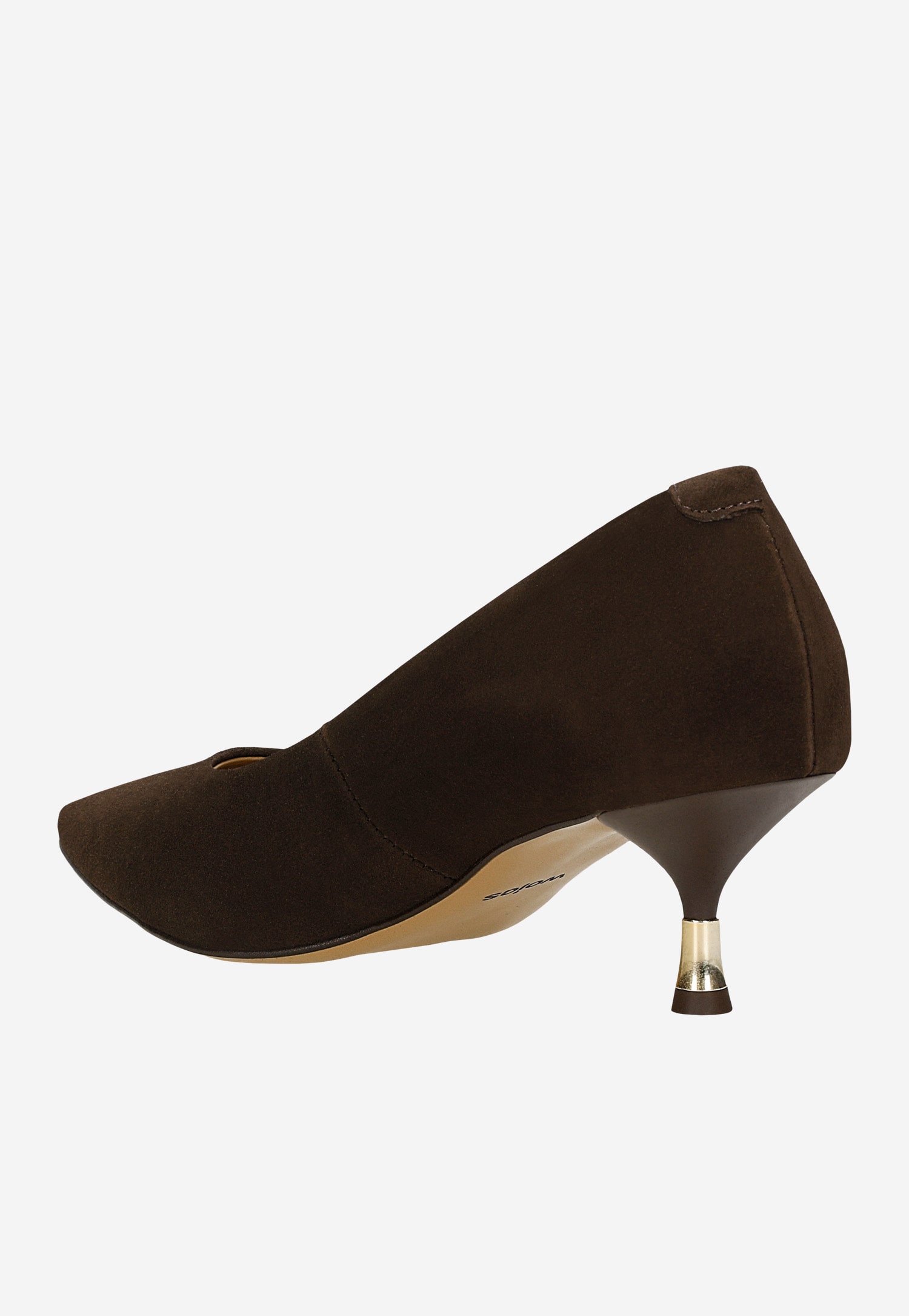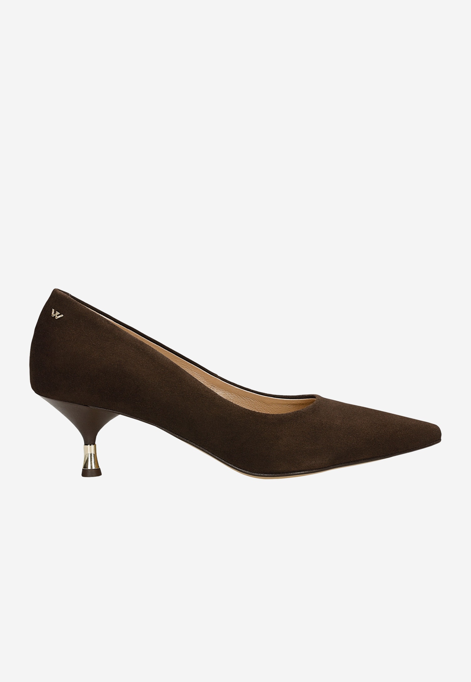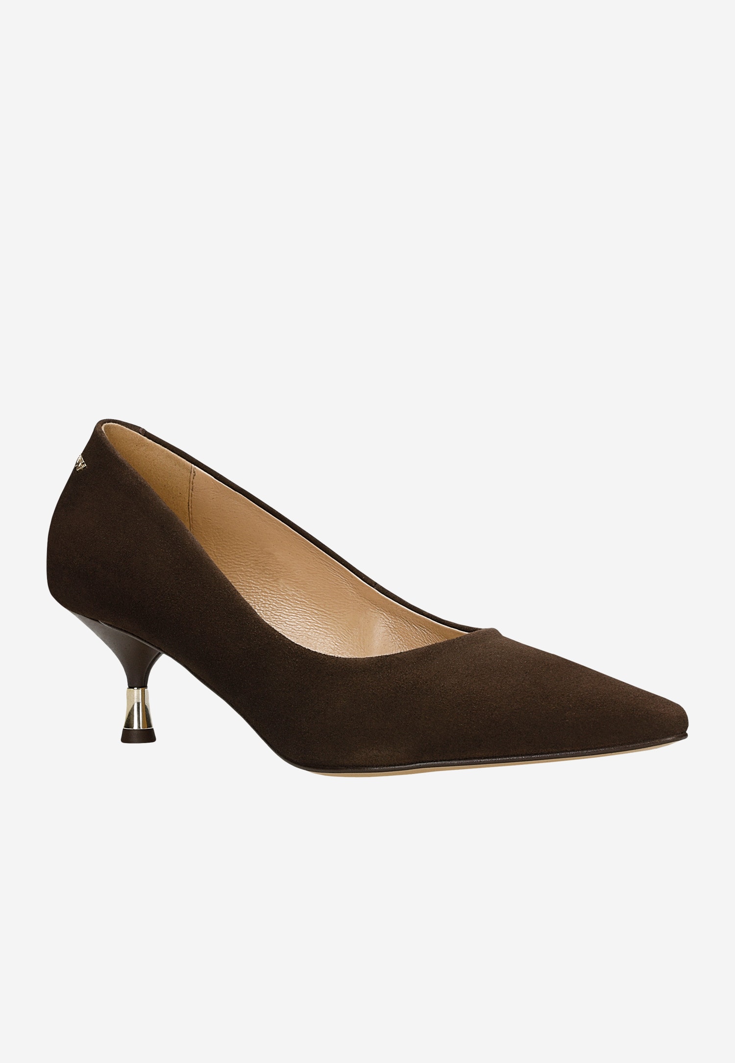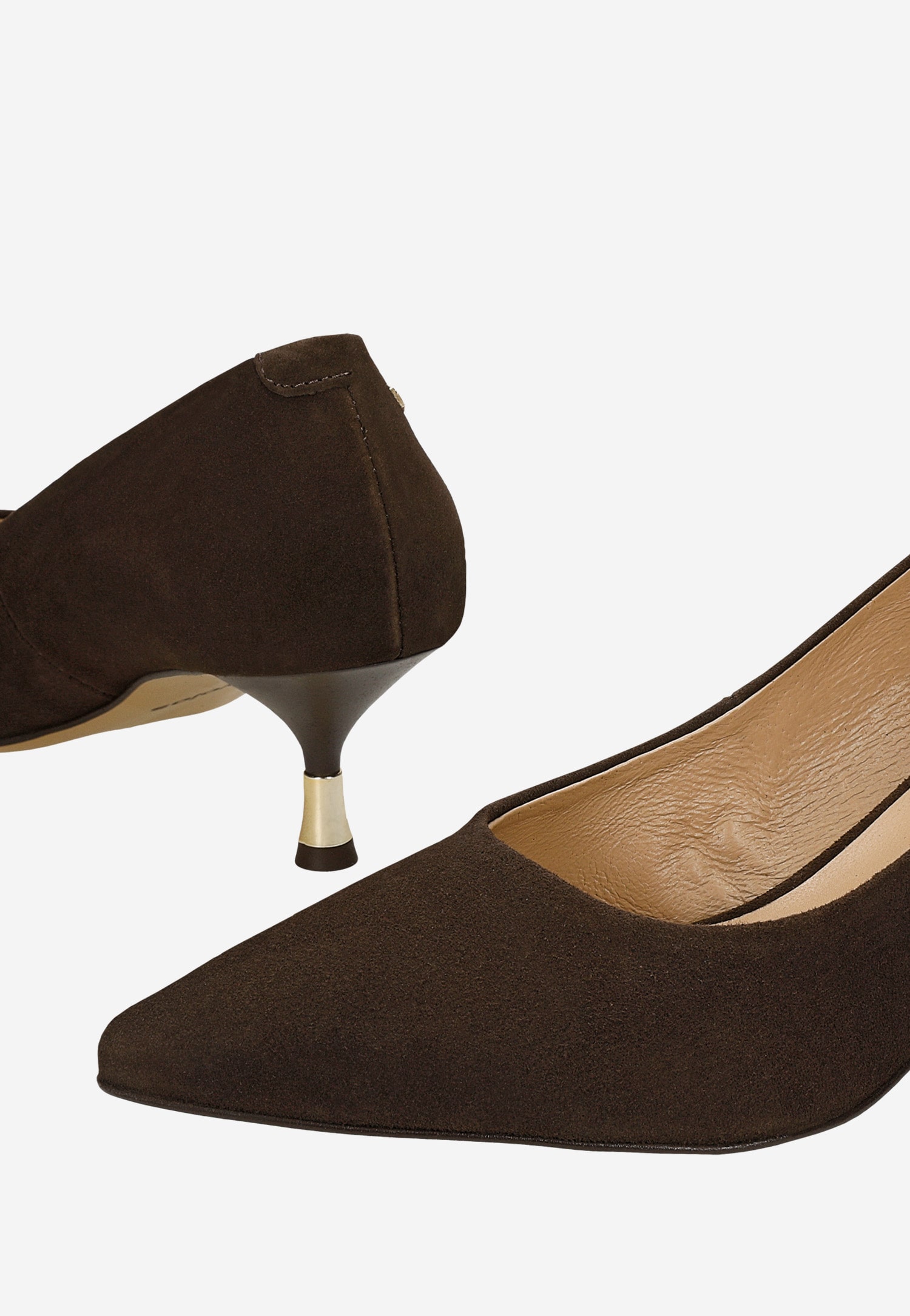 Te brązowe czółenka z welurowej skóry to idealne połączenie eleganckiego designu z codziennym komfortem. Czekoladowy odcień nadaje im ponadczasowego charakteru, sprawiając, że doskonale komponują się zarówno z garniturami do pracy, jak i z wieczorową kreacją na specjalne okazje.