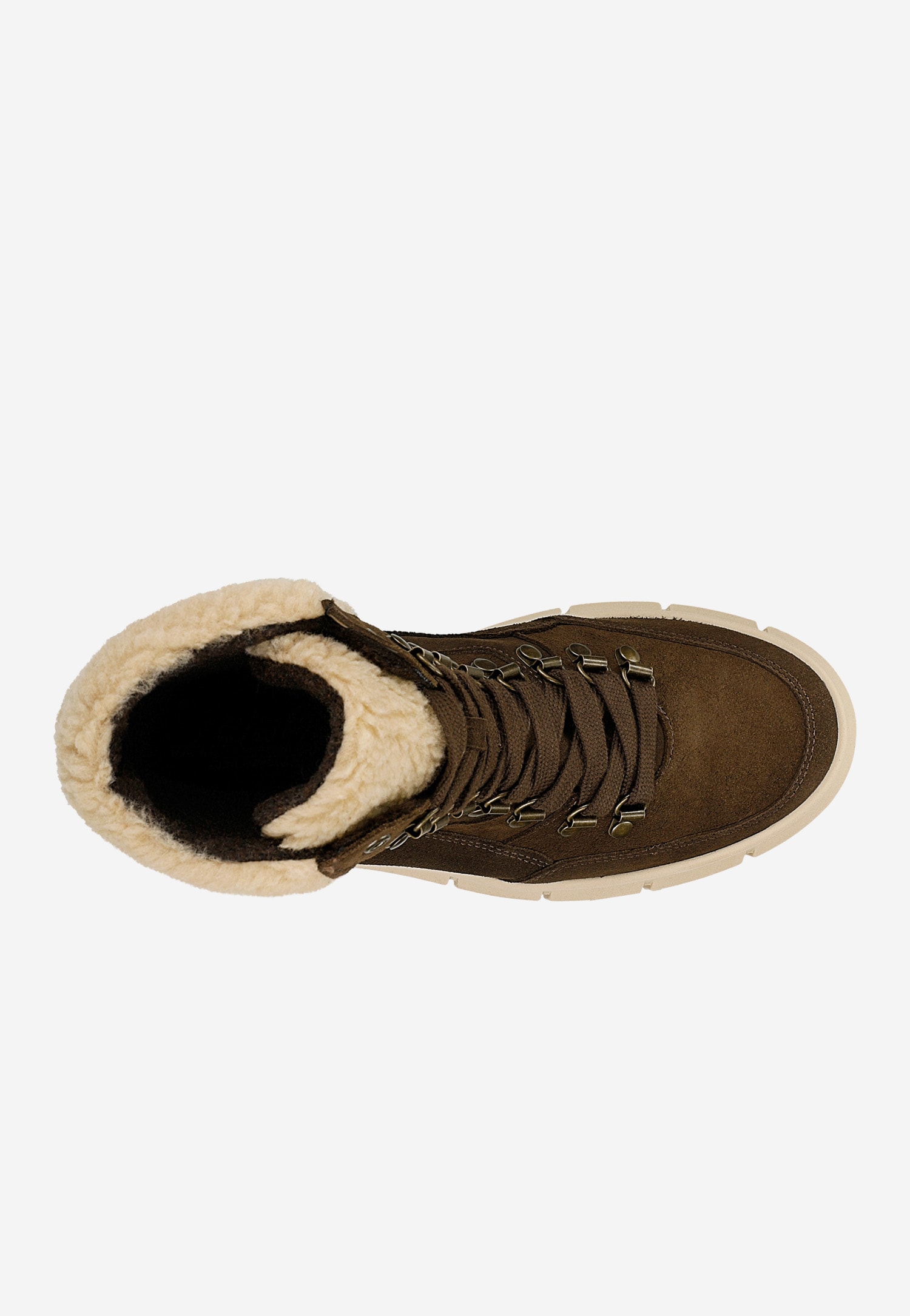 Brązowe czekoladowe trzewiki RELAKS z kożuszkiem R64003-62