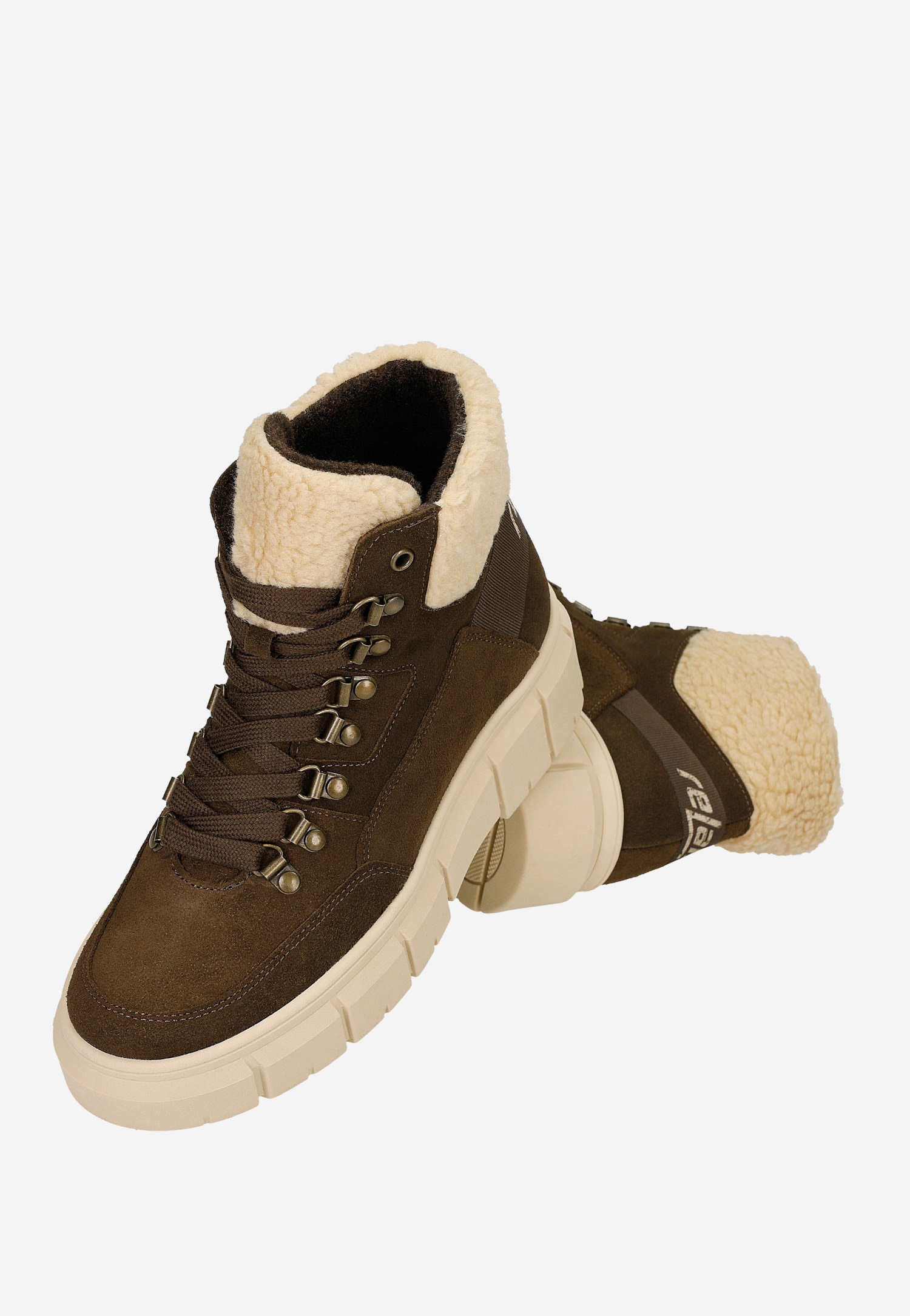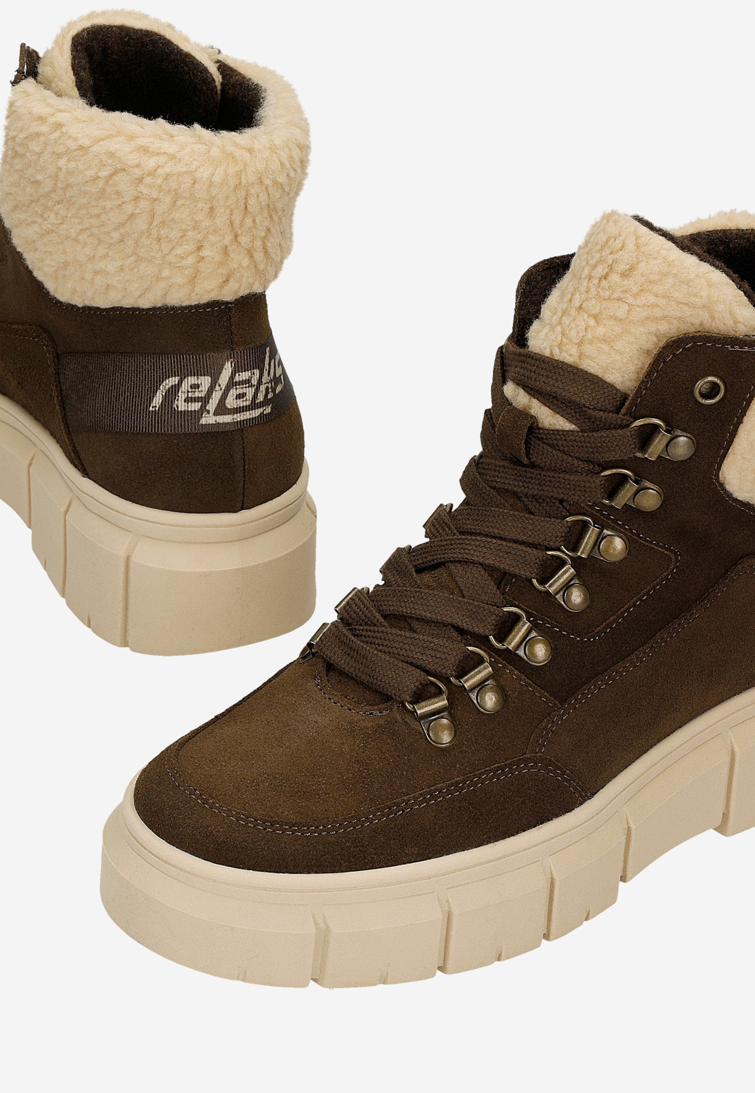 RELAKS ciepłe beżowe trzewiki damskie z białym kożuszkiem R64003-64 RELAKS czarne ocieplane trzewiki damskie z białym kożuchem R64003-61 Brązowe czekoladowe trzewiki RELAKS z kożuszkiem R64003-62 Czarne trzewiki damskie RELAKS z dwoiny welurowej R64003-81