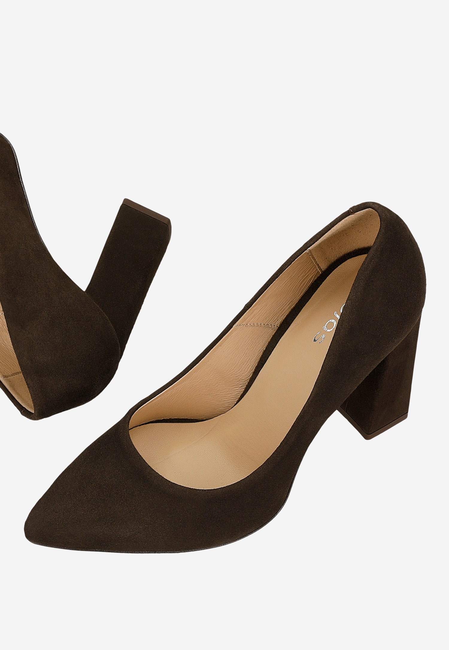 Brązowe damskie czółenka ze skóry welurowej to elegancka propozycja na formalne okazje. Wykonane z dbałością o detale, zachwycają klasycznym fasonem i wysokim komfortem noszenia. Wsuwane buty, na stabilnym, wysokim słupku, optycznie wydłużają nogi i dodają sylwetce lekkości. Szpiczasty nosek podkreśla elegancki charakter obuwia, idealnie wpisując się w styl biznesowy lub wieczorowy. Wnętrze wykończone miękką, skórzaną podszewką zapewnia wygodę przez cały dzień. Podeszwa wykonana z trwałego materiału Tuniskór gwarantuje dobrą przyczepność i odporność na ścieranie. Czółenka to połączenie klasy, kobiecości i funkcjonalności - doskonałe do biura, na spotkania czy oficjalne wyjścia. Sprawdzą się wszędzie tam, gdzie liczy się nienaganny wygląd i wygoda.