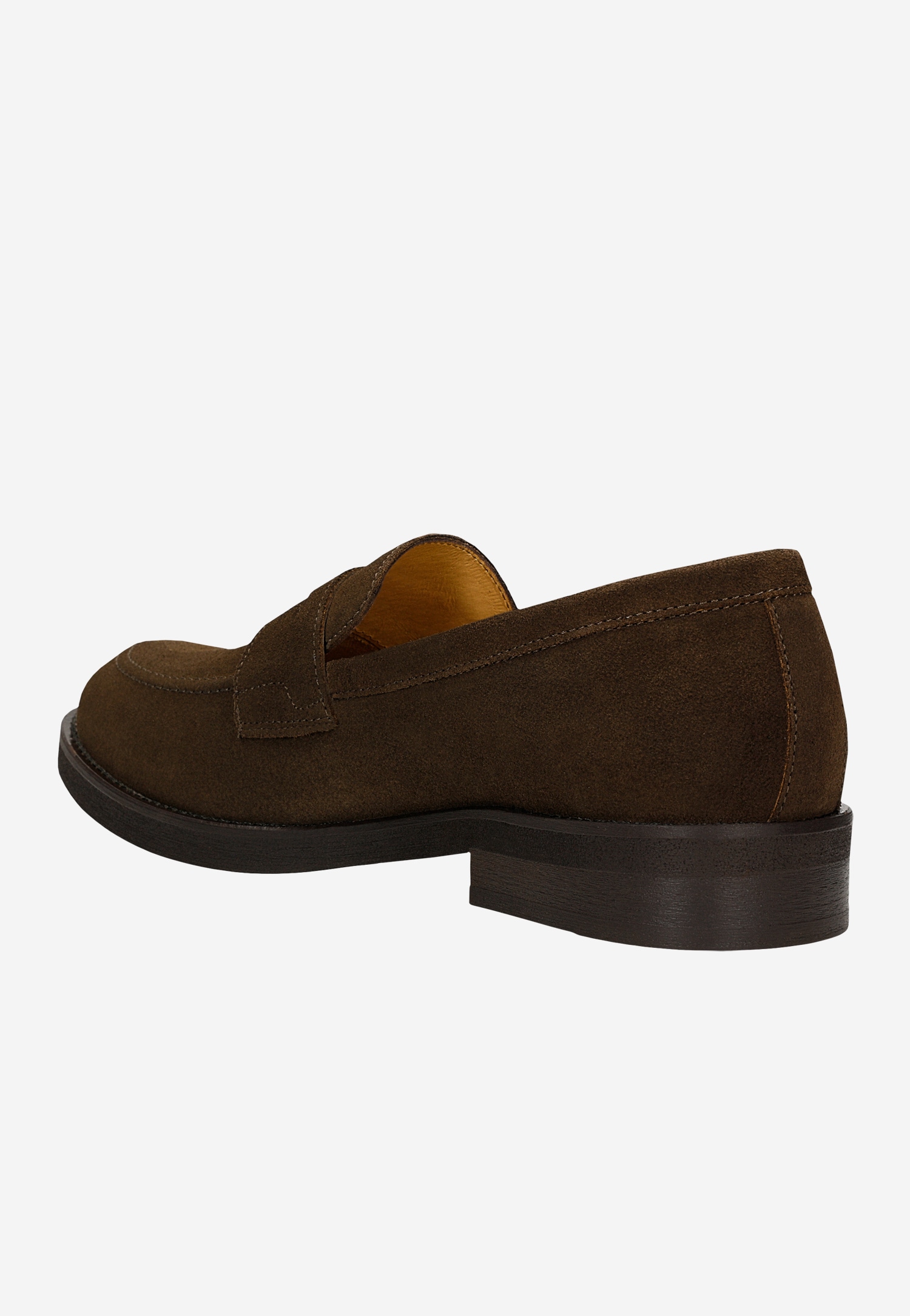 Te brązowe mokasyny z welurowej dwoiny to propozycja dla kobiet ceniących wygodę bez rezygnacji ze stylu. **Miękka dwoina welurowa** zapewnia komfort od pierwszego założenia, a naturalna podszewka ze skóry świńskiej dba o odpowiednią cyrkulację powietrza. Model ten doskonale sprawdzi się zarówno podczas intensywnego dnia w pracy, jak i weekendowych spacerów po mieście.