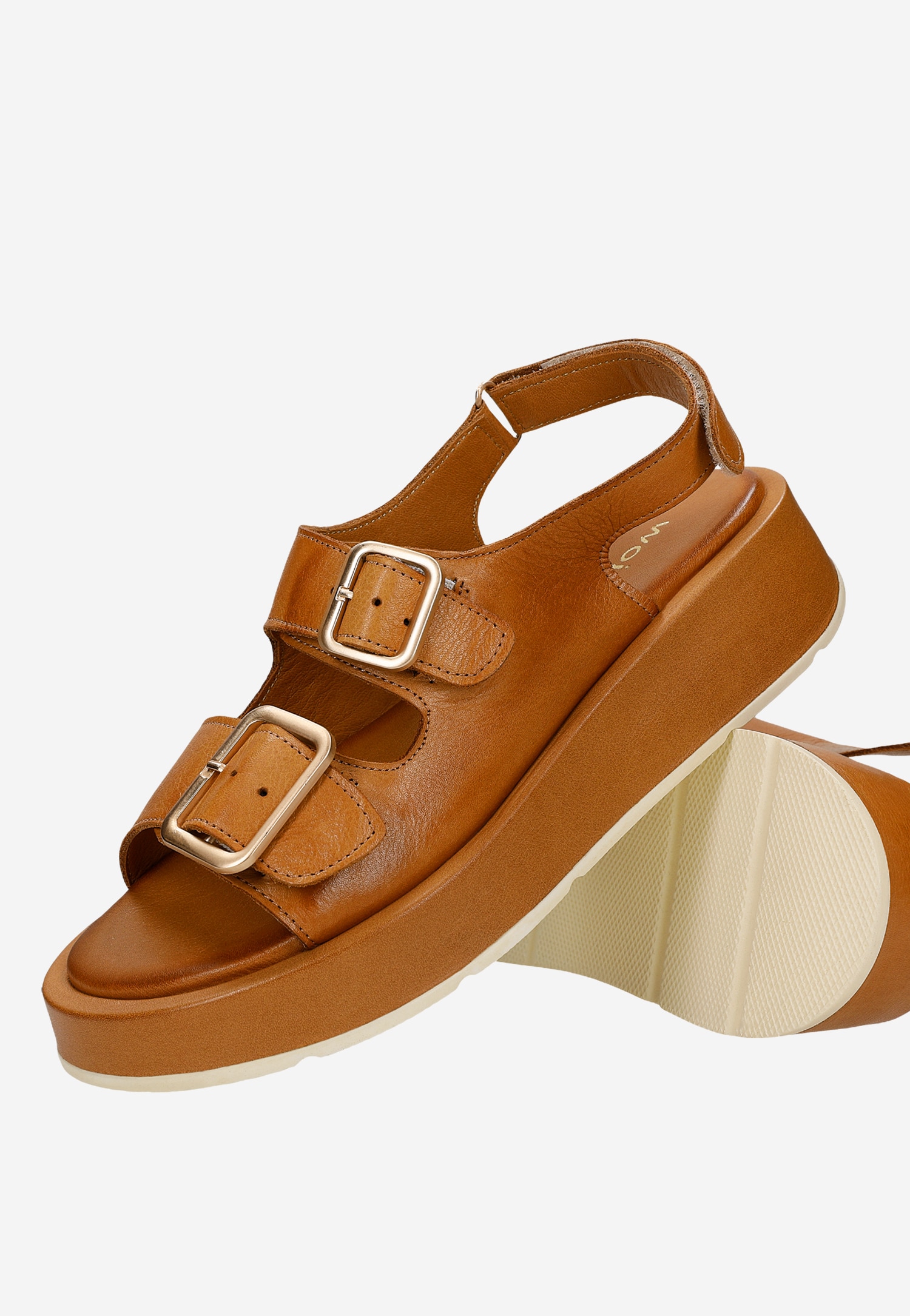 Naturalny, rudy odcień skóry nadaje sandałom ciepły charakter i sprawia, że doskonale komponują się z letnimi sukienkami, jeansami czy lnianymi spodniami w stylu casual. Starannie wykończone wnętrze z podszewką ze skóry bydlęcej gwarantuje odpowiednią cyrkulację powietrza i przyjemność użytkowania nawet w upalne dni.