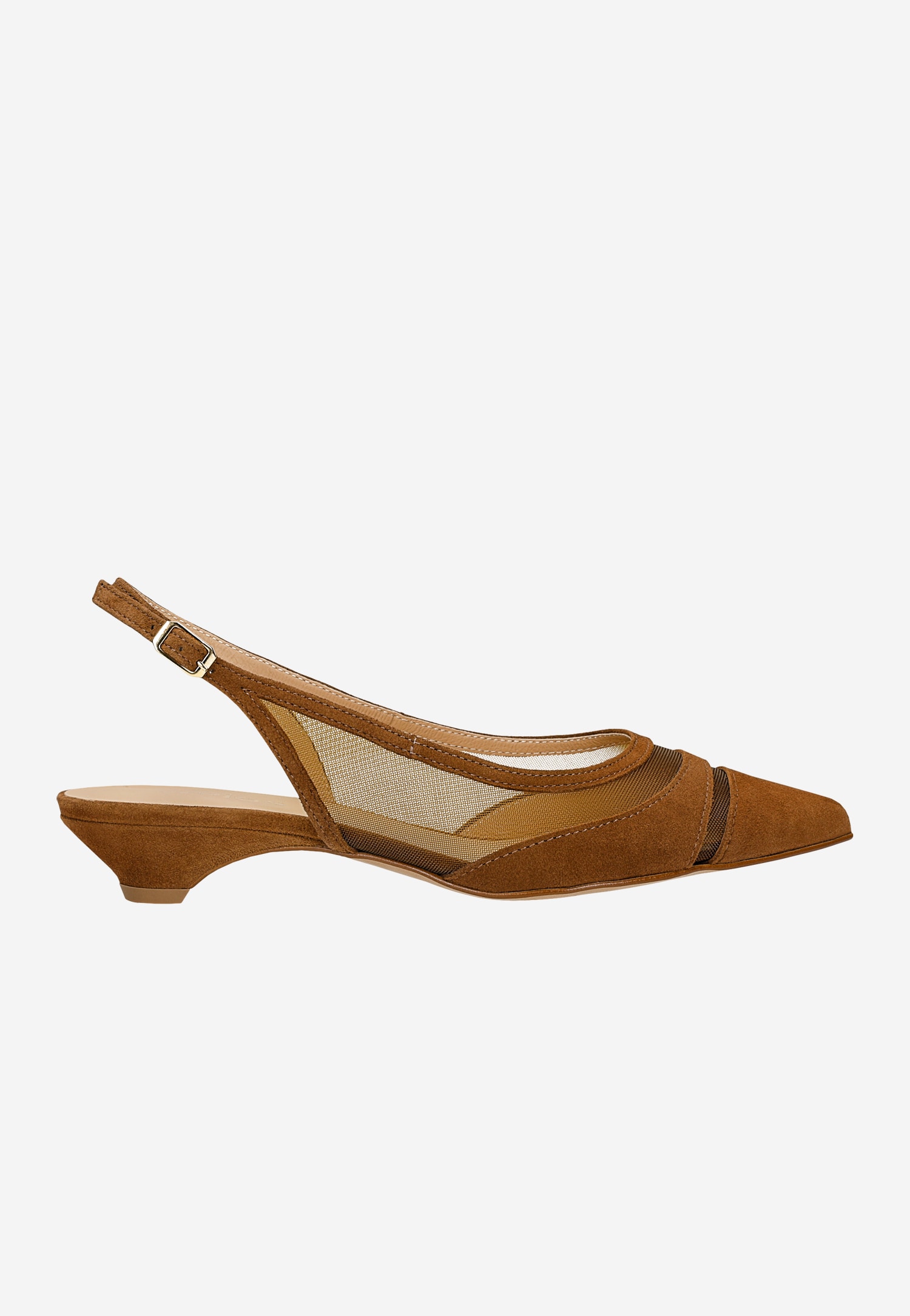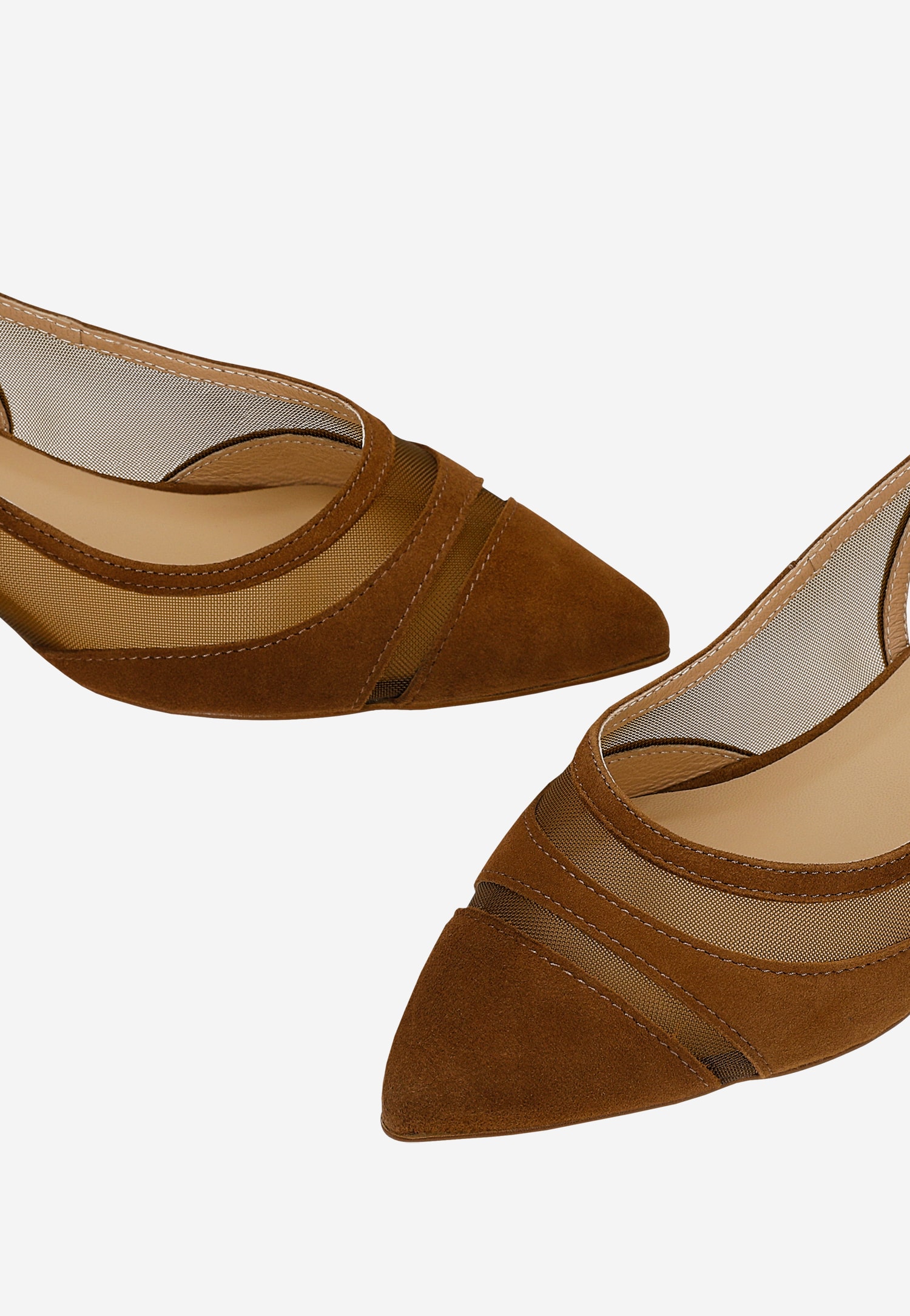 Te wyjątkowe baleriny łączą komfort z nowoczesnym designem, tworząc idealne obuwie na wiosenne dni. Model z odkrytą piętą w eleganckim brązowym kolorze wykonano z połączenia miękkiej skóry welurowej i przewiewnego materiału syntetycznego z siateczką, który zapewnia doskonałą wentylację stóp w cieplejsze dni.