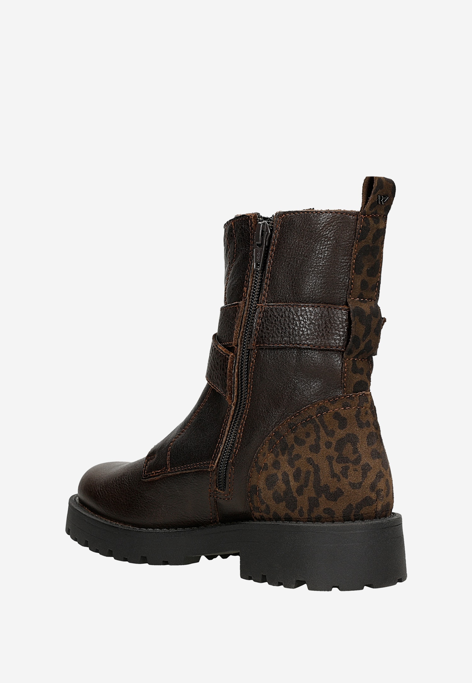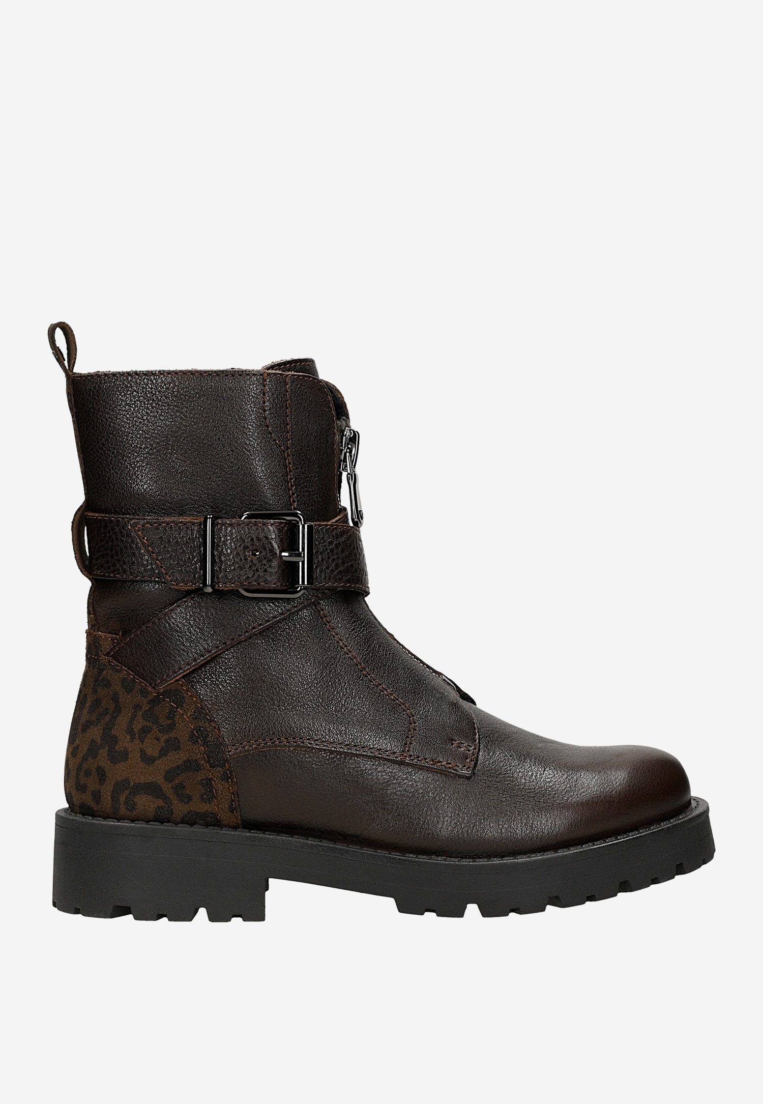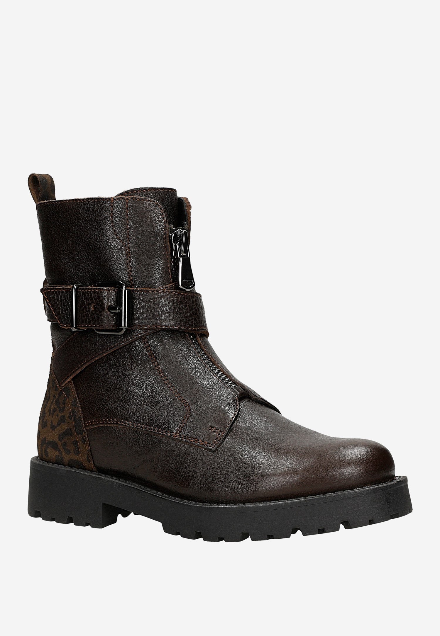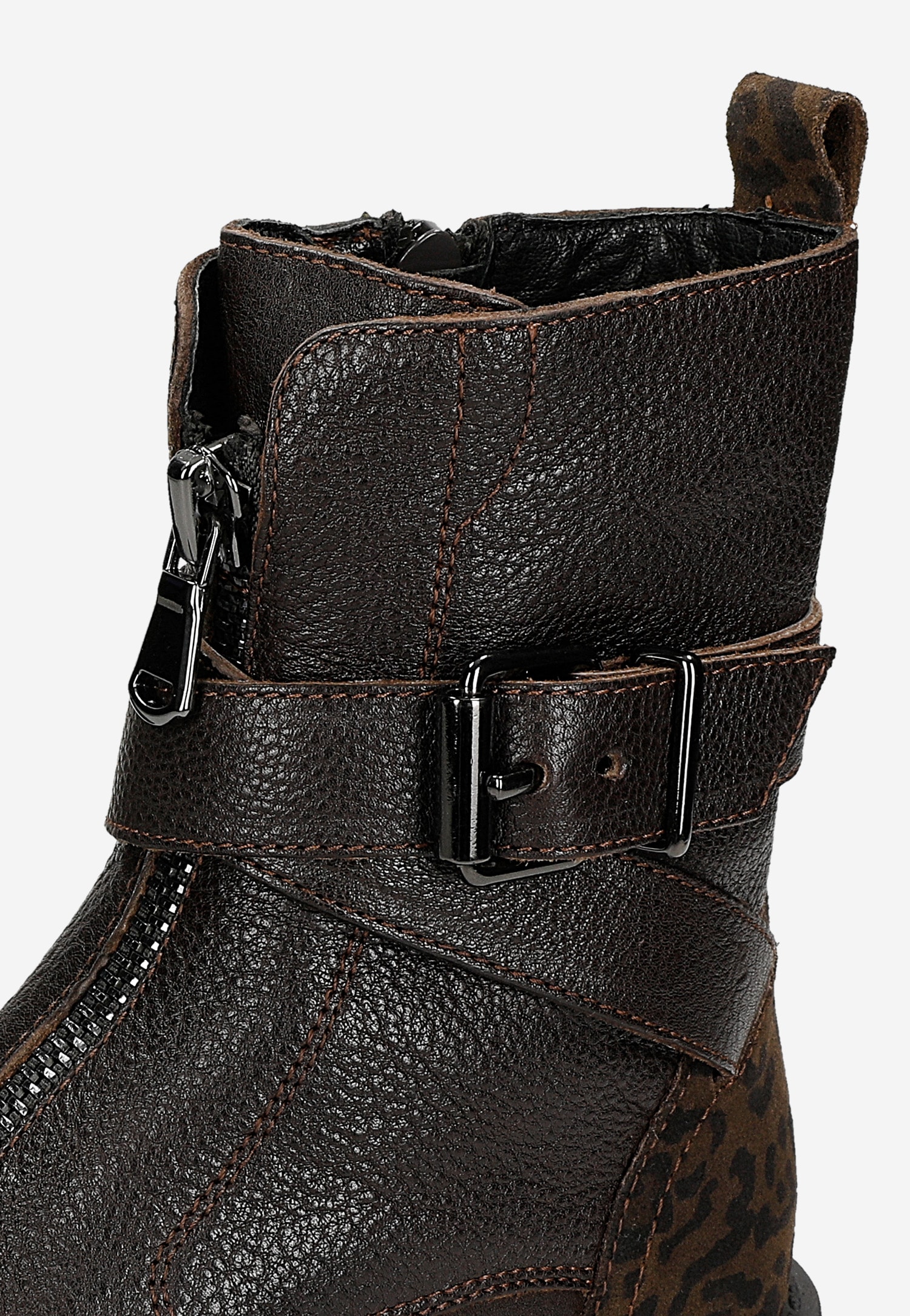 Brązowe skórzane botki ze wstawką w panterkę 55362-72