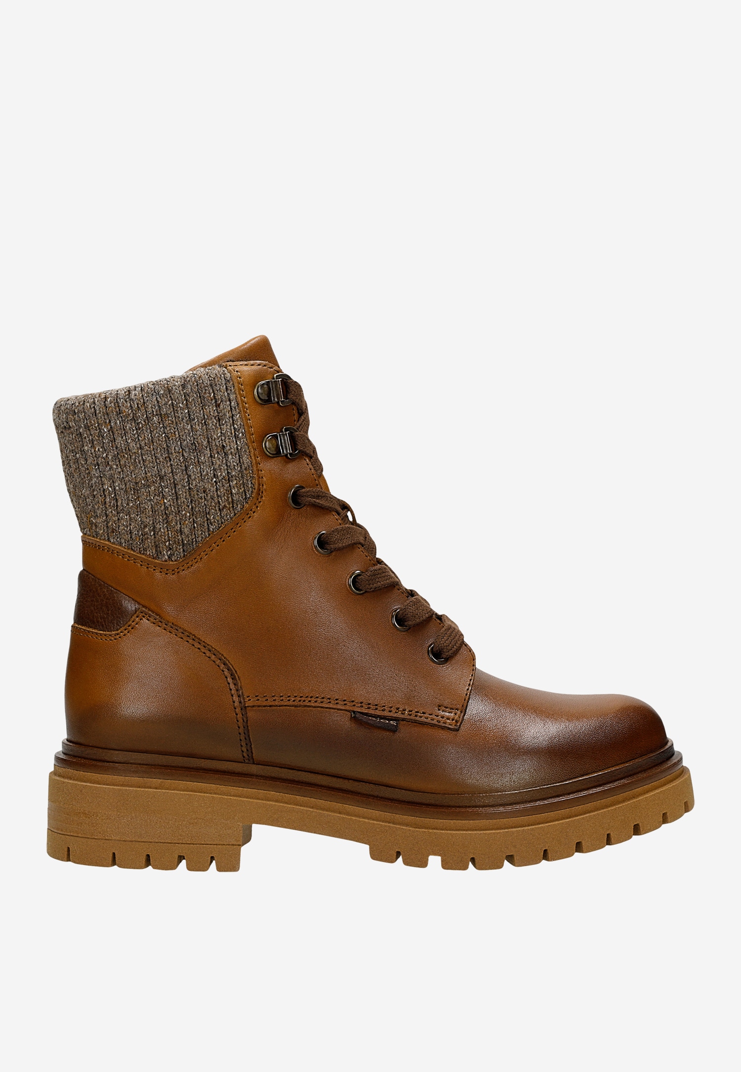 Brązowe skórzane trzewiki damskie ze skarpetą 64149-83