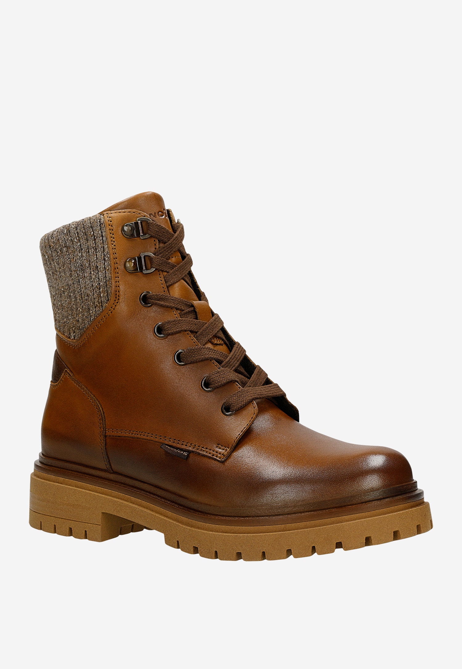 Brązowe skórzane trzewiki damskie ze skarpetą 64149-83 Widok 1