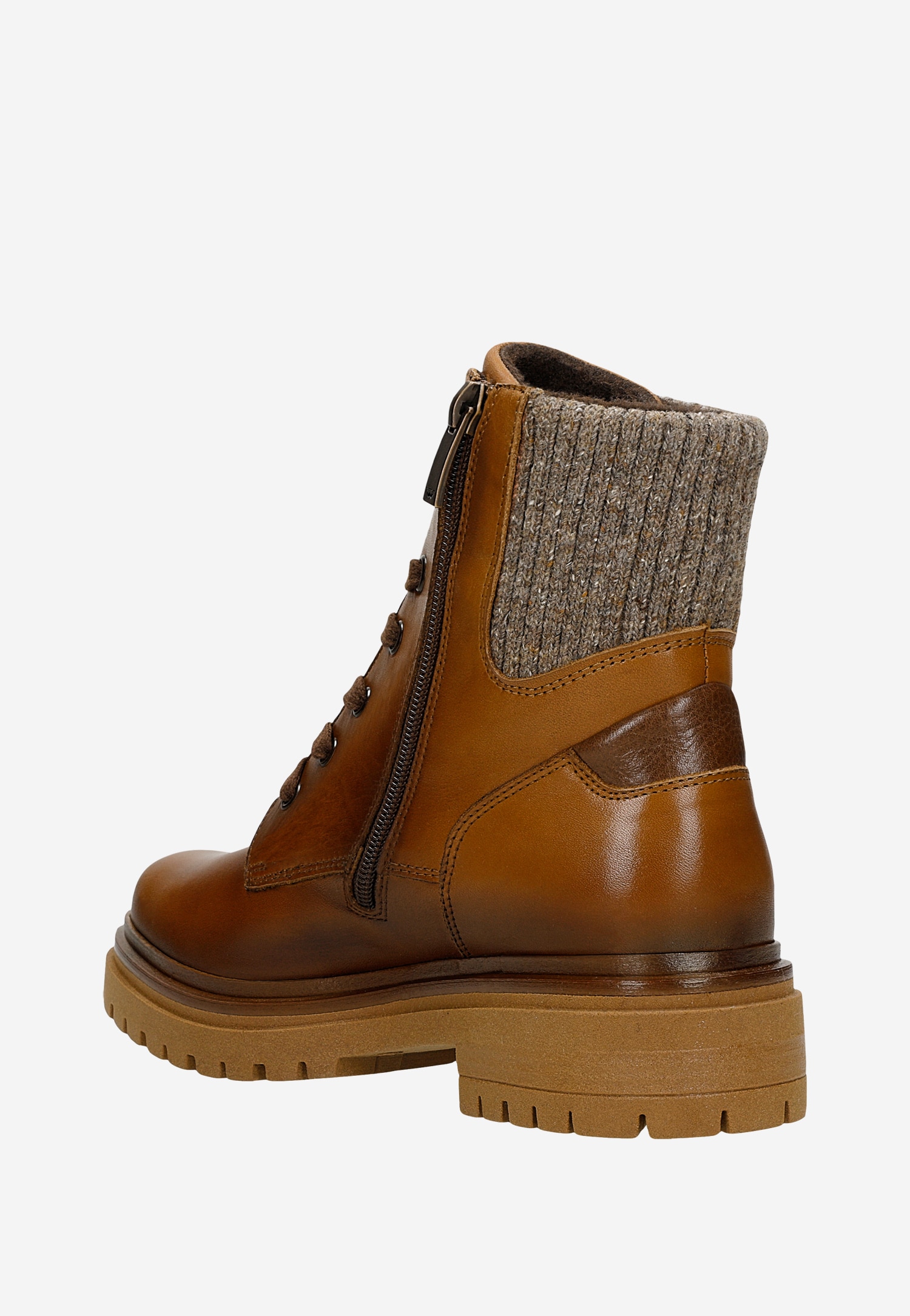 Brązowe skórzane trzewiki damskie ze skarpetą 64149-83 Widok 3