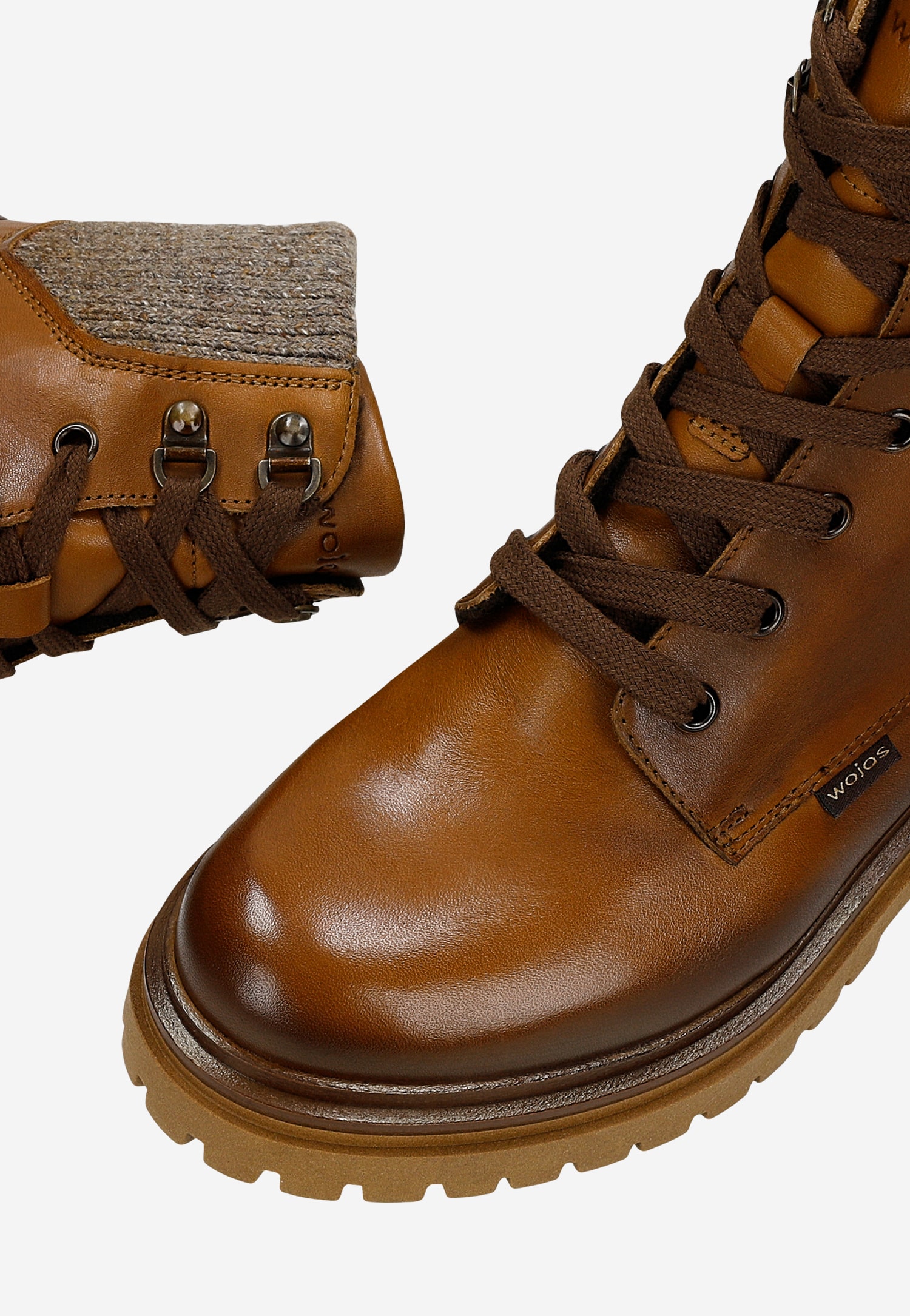 Brązowe skórzane trzewiki damskie ze skarpetą 64149-83 Widok 2