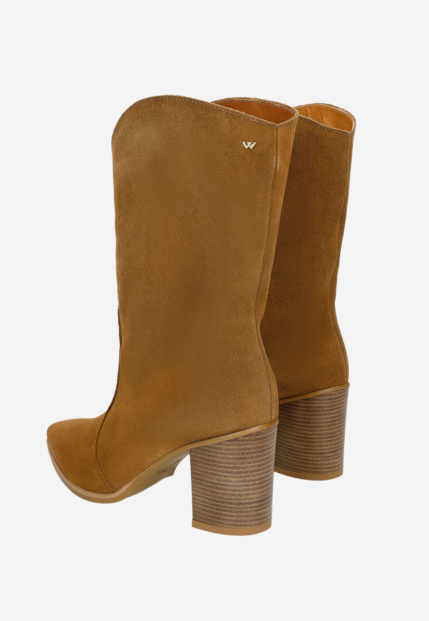 Brązowe welurowe kowbojki damskie na obcasie 55317-62 Widok 1