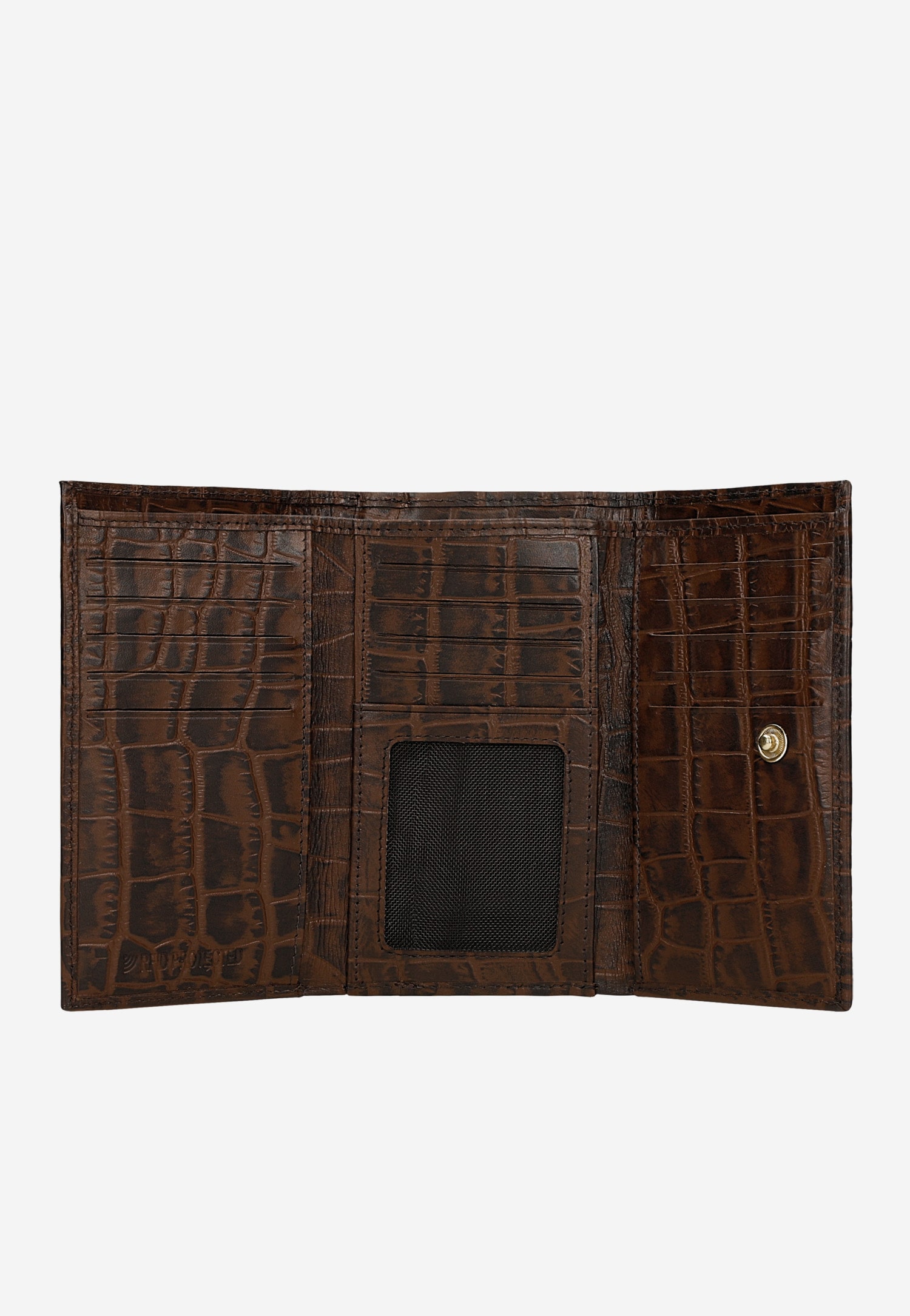 Brązowy portfel damski z tłoczeniem w skórę krokodyla 91085-72 Widok 6