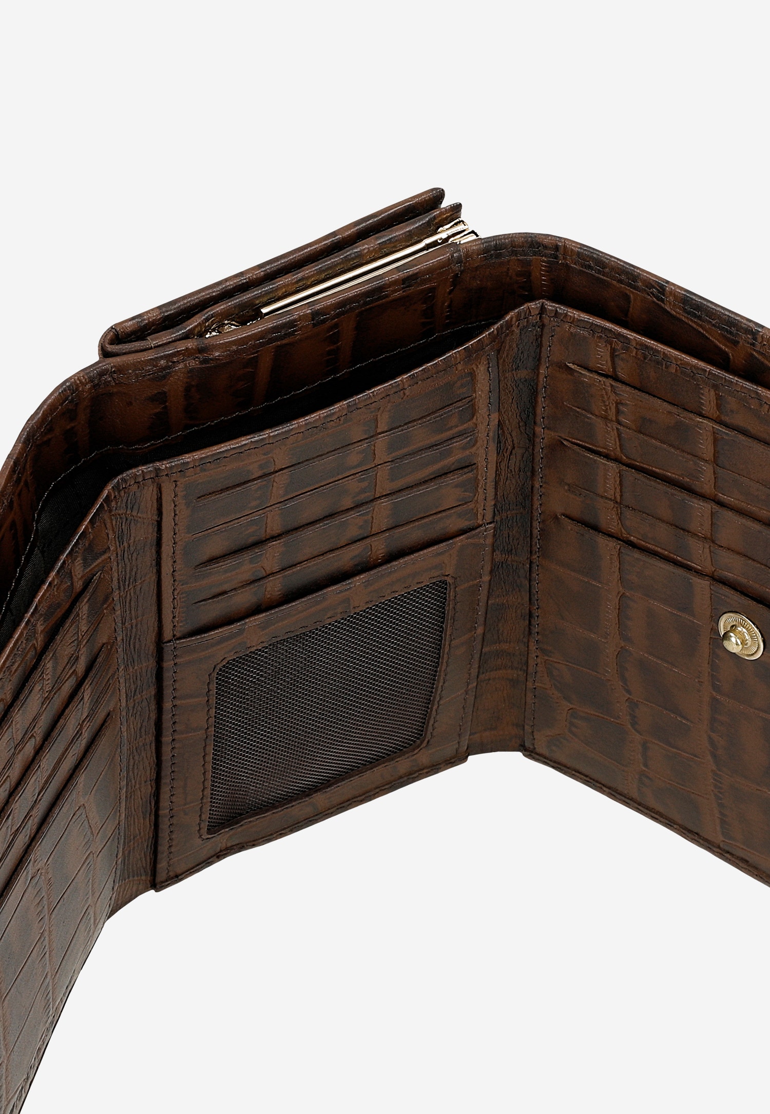 Brązowy portfel damski z tłoczeniem w skórę krokodyla 91085-72 Widok 8