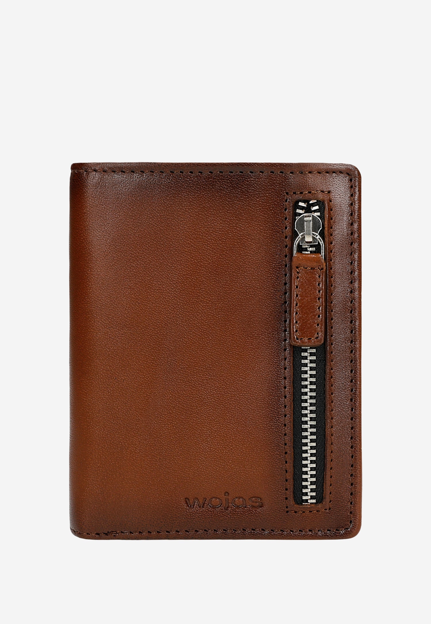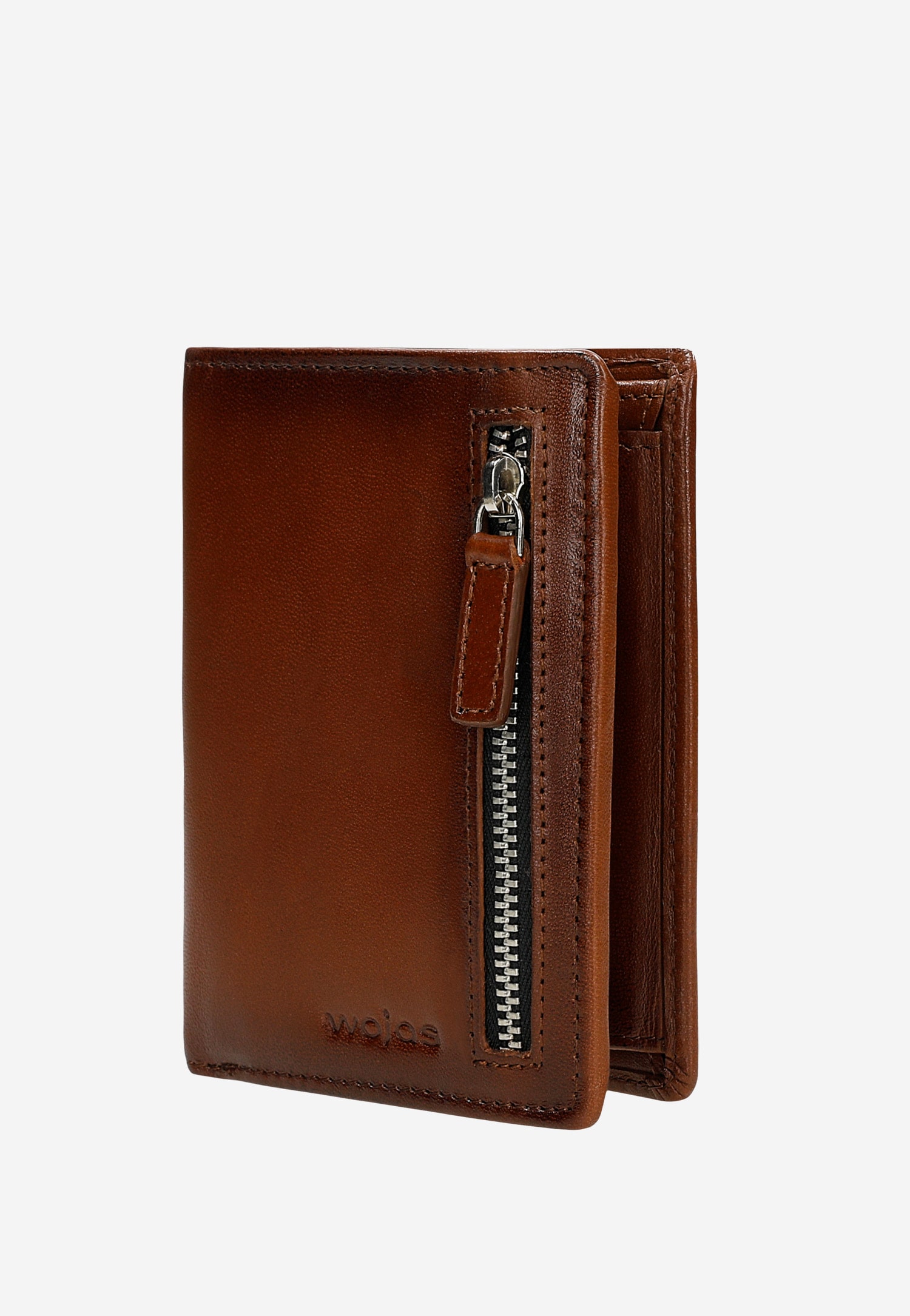 Brązowy portfel męski z zamkiem 91129-53 Brązowy skórzany portfel męski pionowy 91129-52