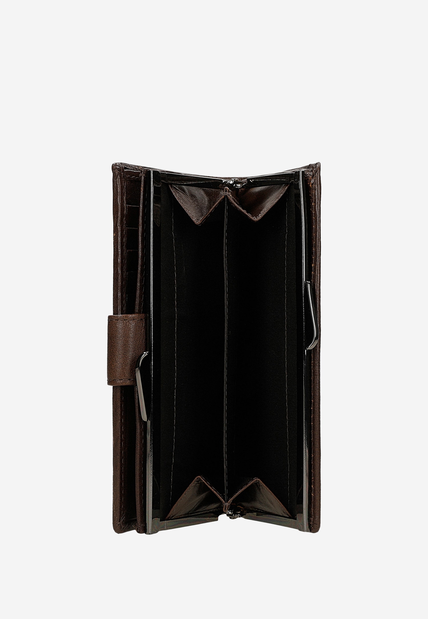 Kompaktowe wymiary sprawiają, że portfel zmieści się w każdej torebce, nie zajmując zbędnej przestrzeni. Jego uniwersalny brązowy kolor doskonale komponuje się zarówno z casualowymi, jak i eleganckimi stylizacjami, tworząc spójną całość z Twoją codzienną garderobą.