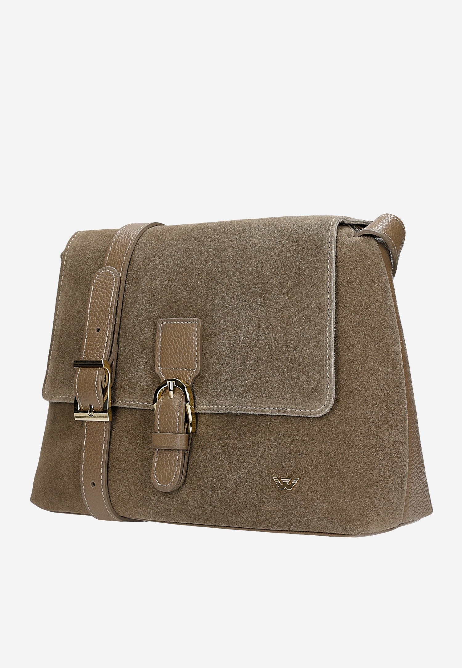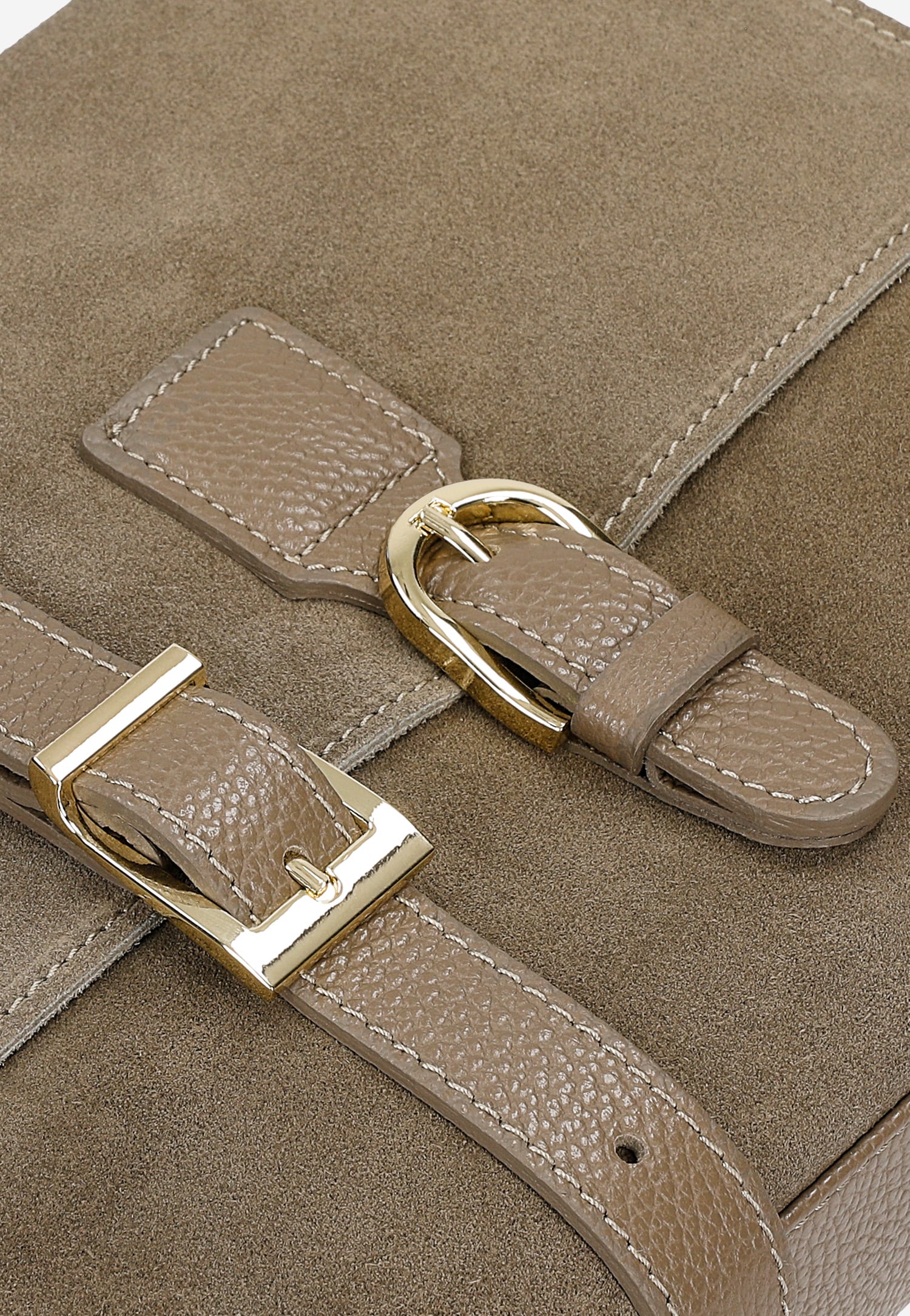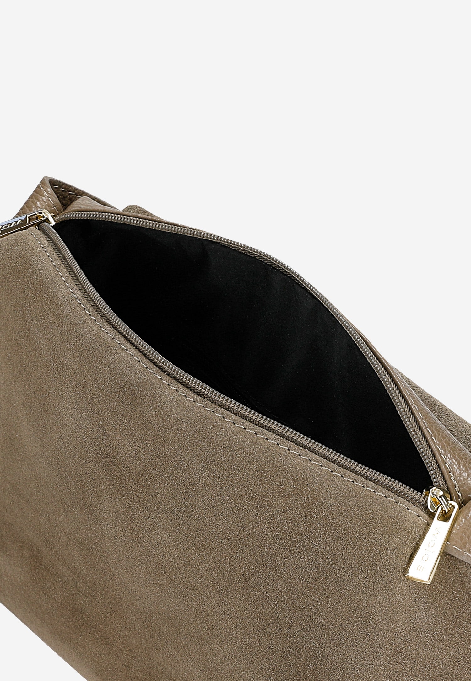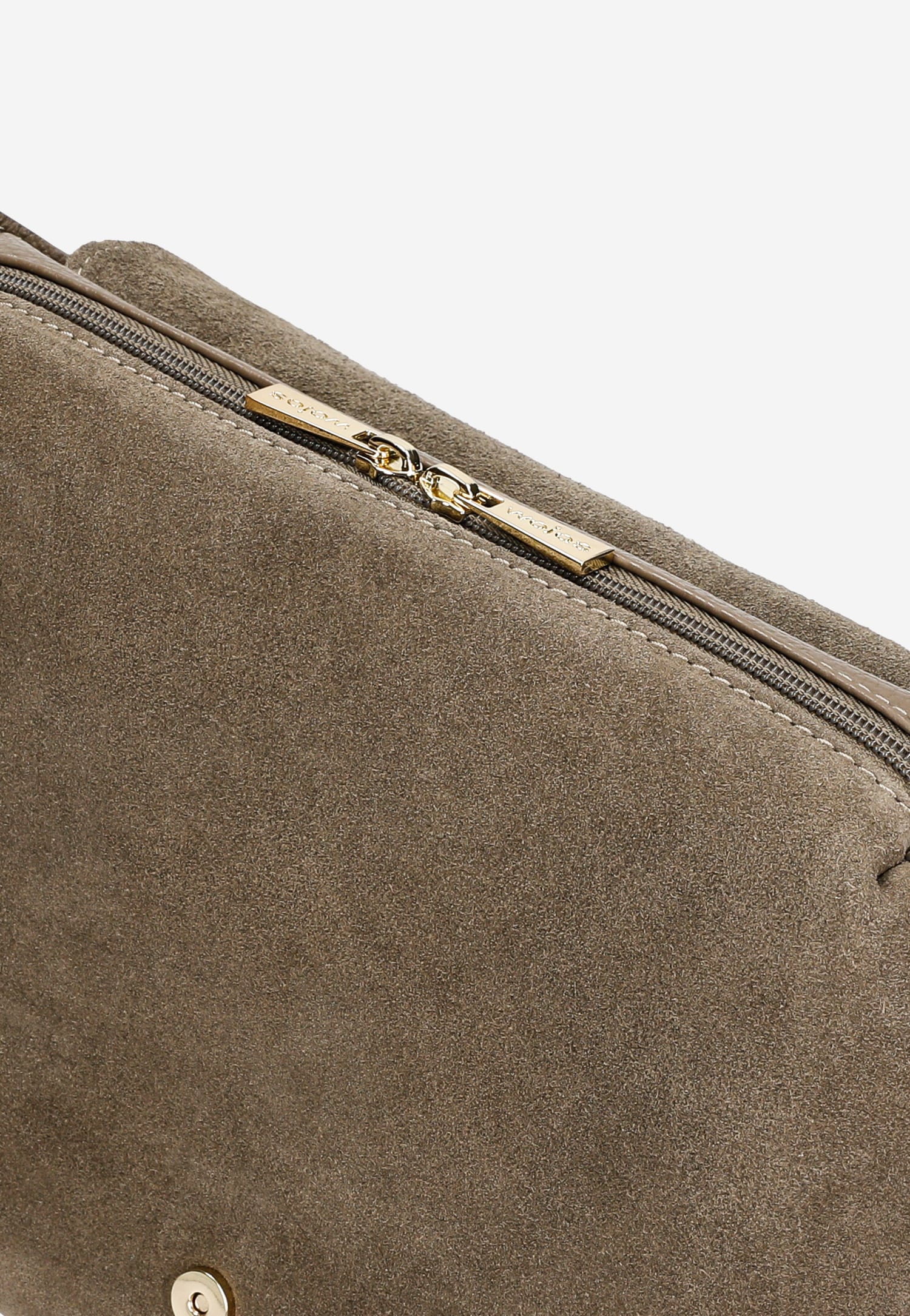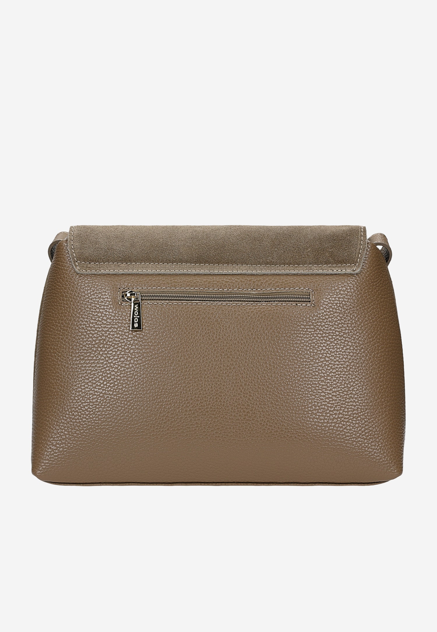 Ta stylowa torebka z łączonych skór licowej i dwoiny welurowej to doskonały wybór dla kobiet ceniących jakość i ponadczasowy design. Delikatny ciemnobeżowy kolor sprawia, że dodatek ten idealnie komponuje się zarówno z miejskimi, jak i casualowymi stylizacjami – od eleganckich kostiumów po swobodne zestawy z jeansami.
