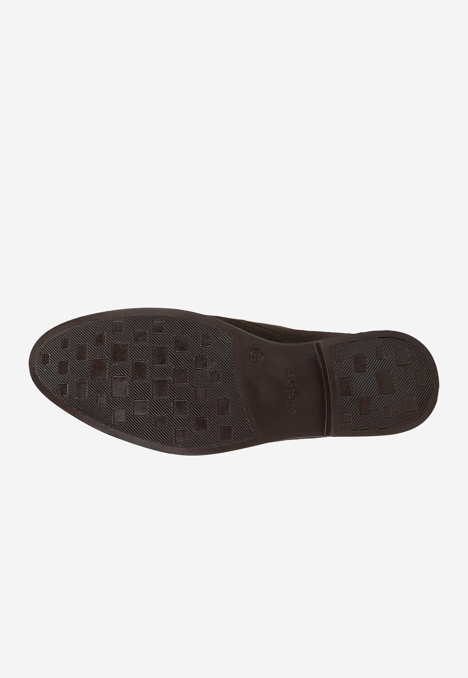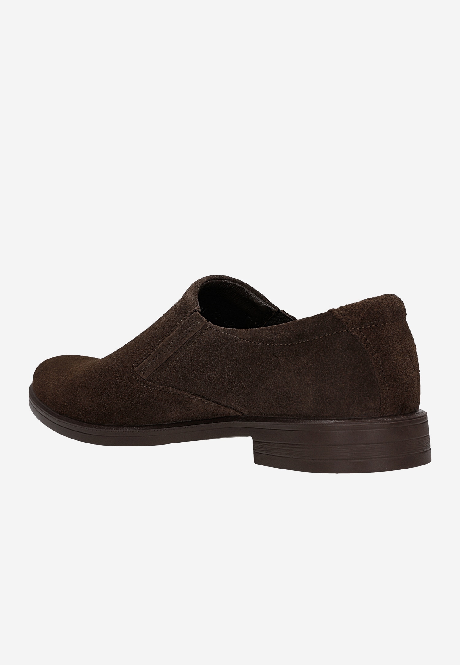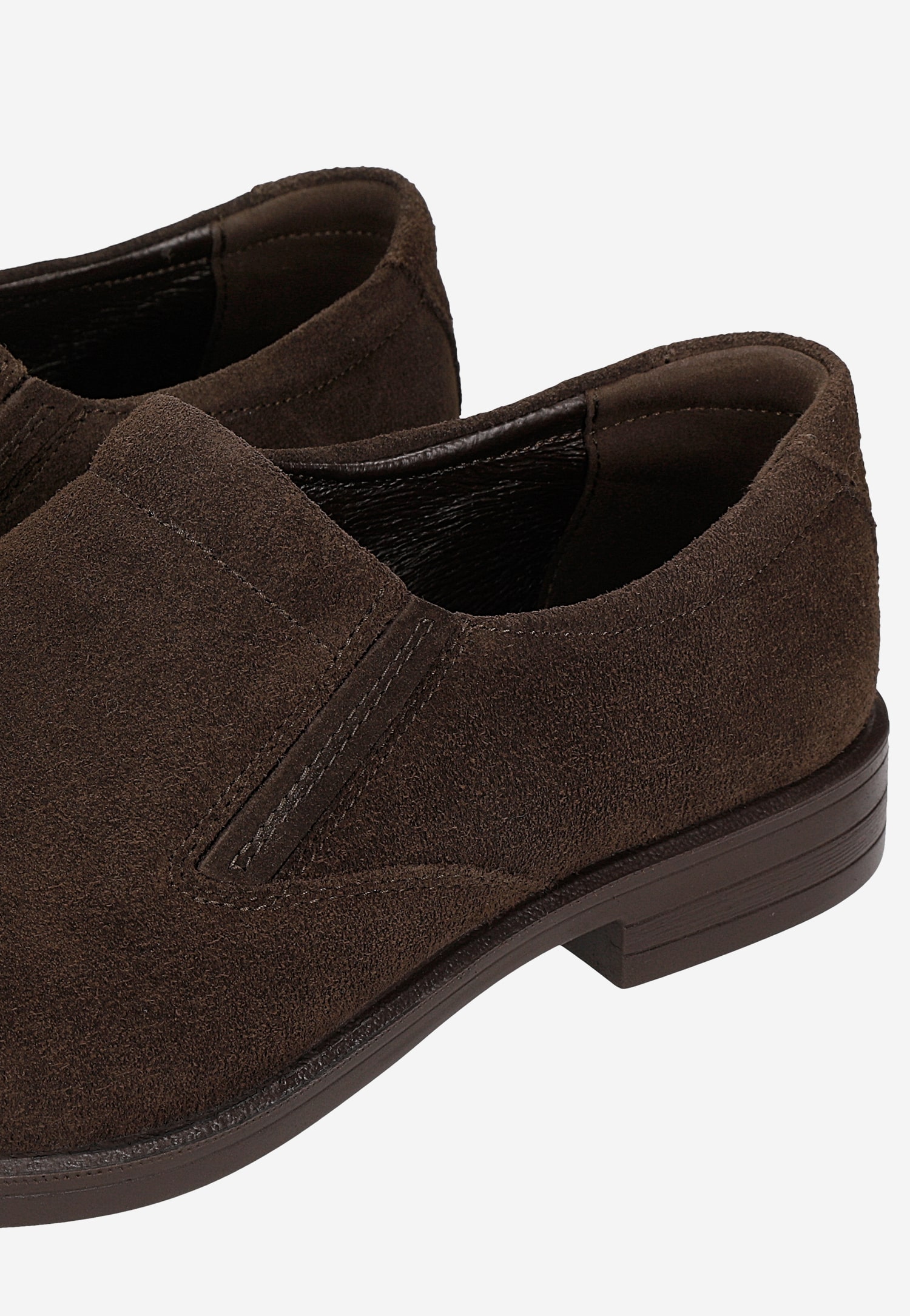 Te ciemnobrązowe półbuty wsuwane to połączenie wygody i formalnego stylu, które docenisz każdego dnia. Wykonane z dwoinowej skóry welurowej, oferują szlachetny wygląd i przyjemną w dotyku fakturę. Praktyczne wsuwanie sprawia, że zakładasz je w kilka sekund – idealne rozwiązanie dla zapracowanych mężczyzn ceniących funkcjonalność.