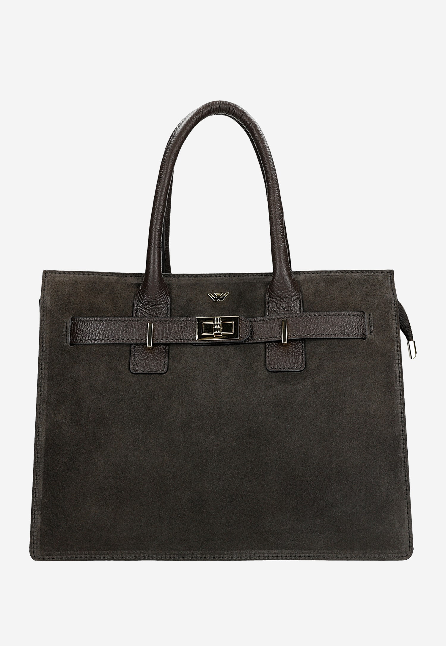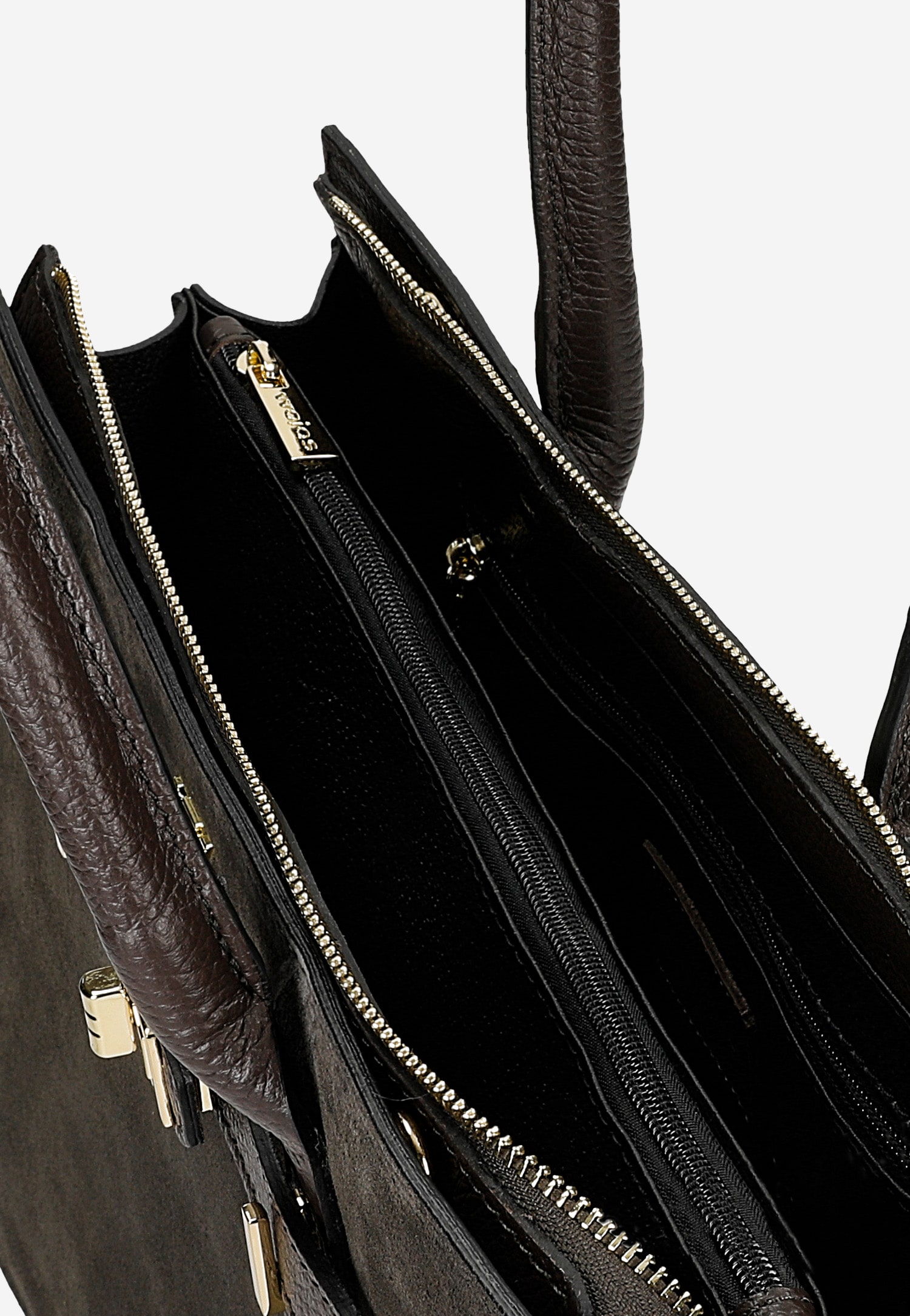 Ciemnobrązowy kuferek damski z łączonych skór 80449-72 Widok 1