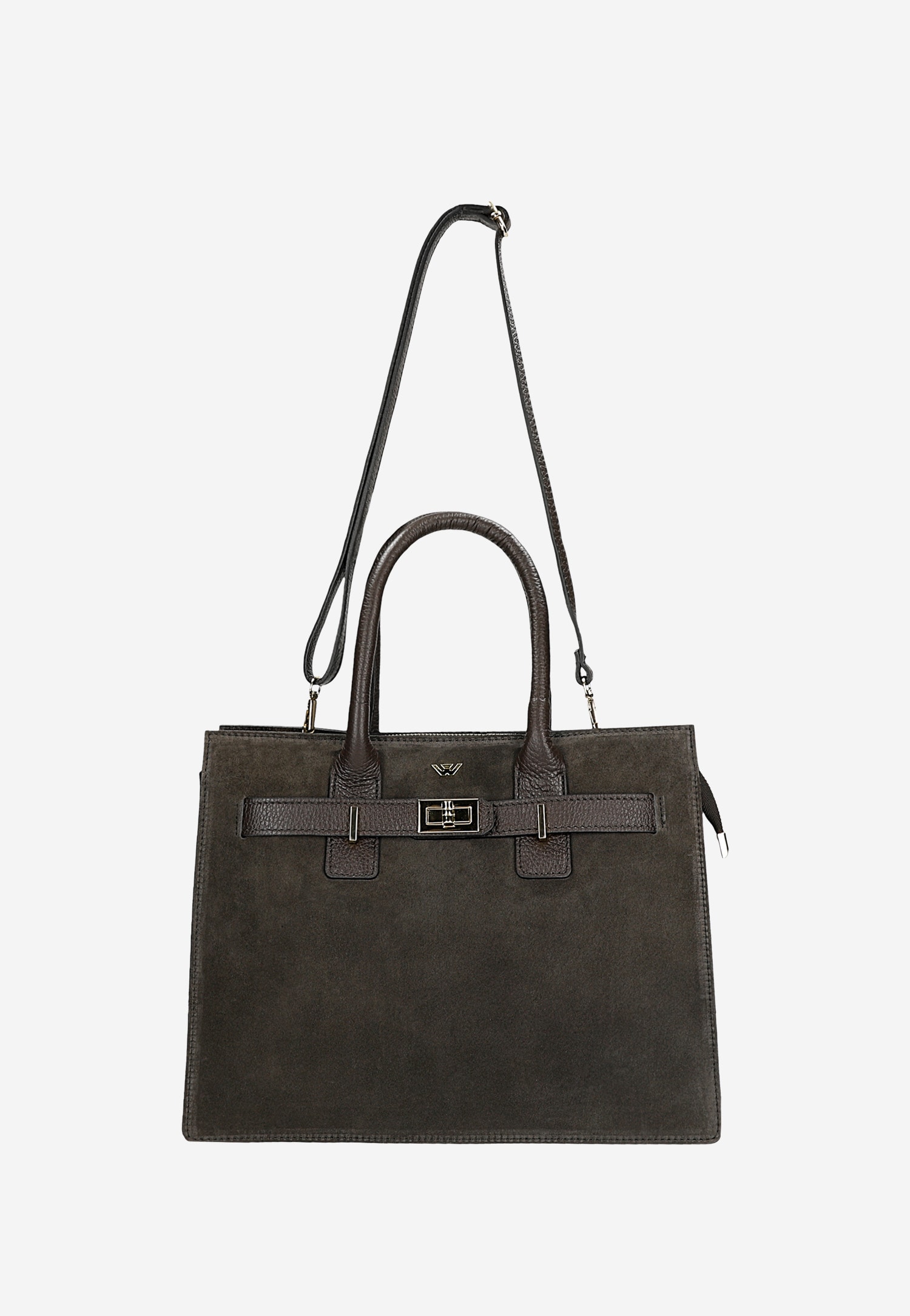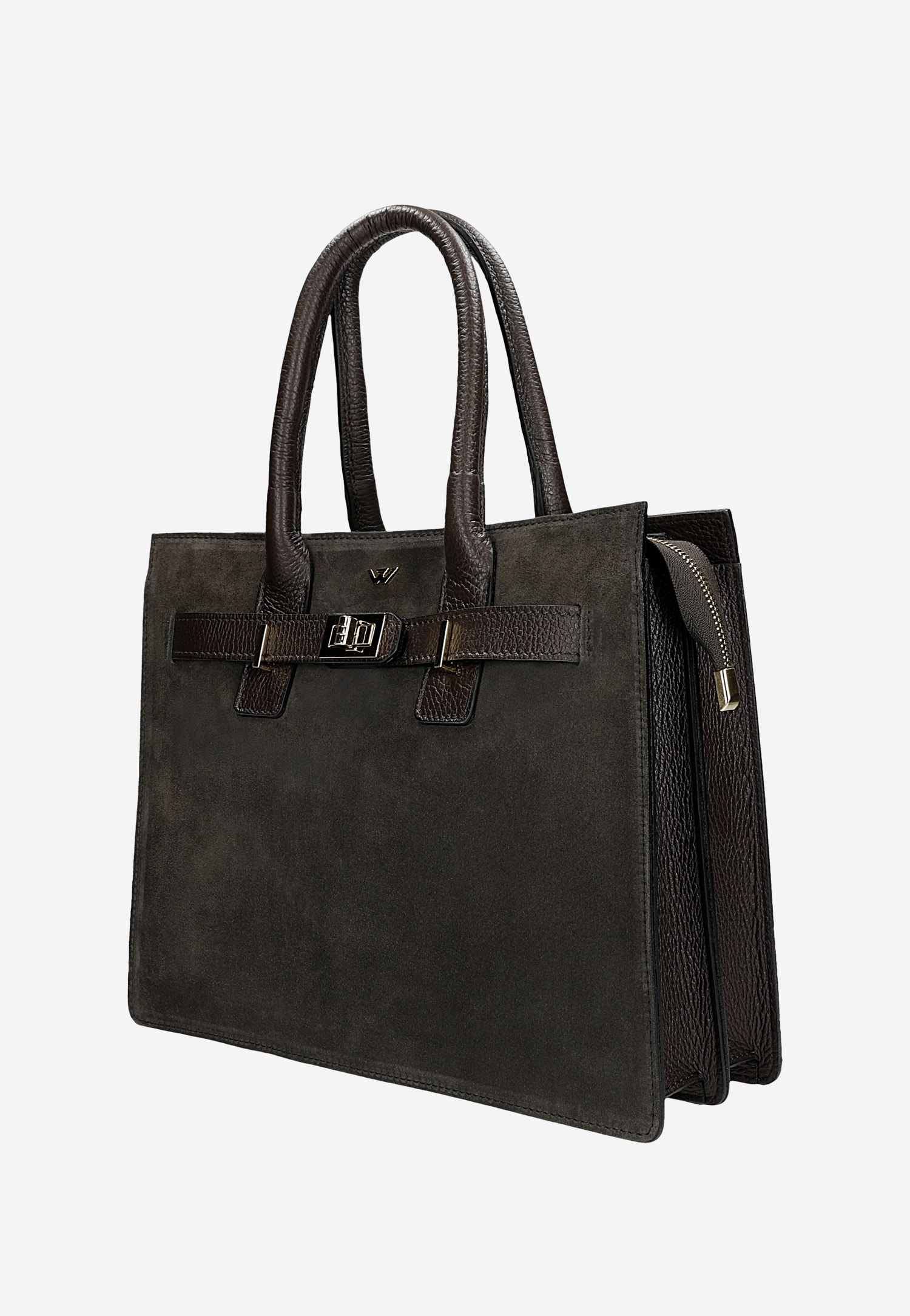 Ciemnobrązowy kuferek damski z łączonych skór 80449-72