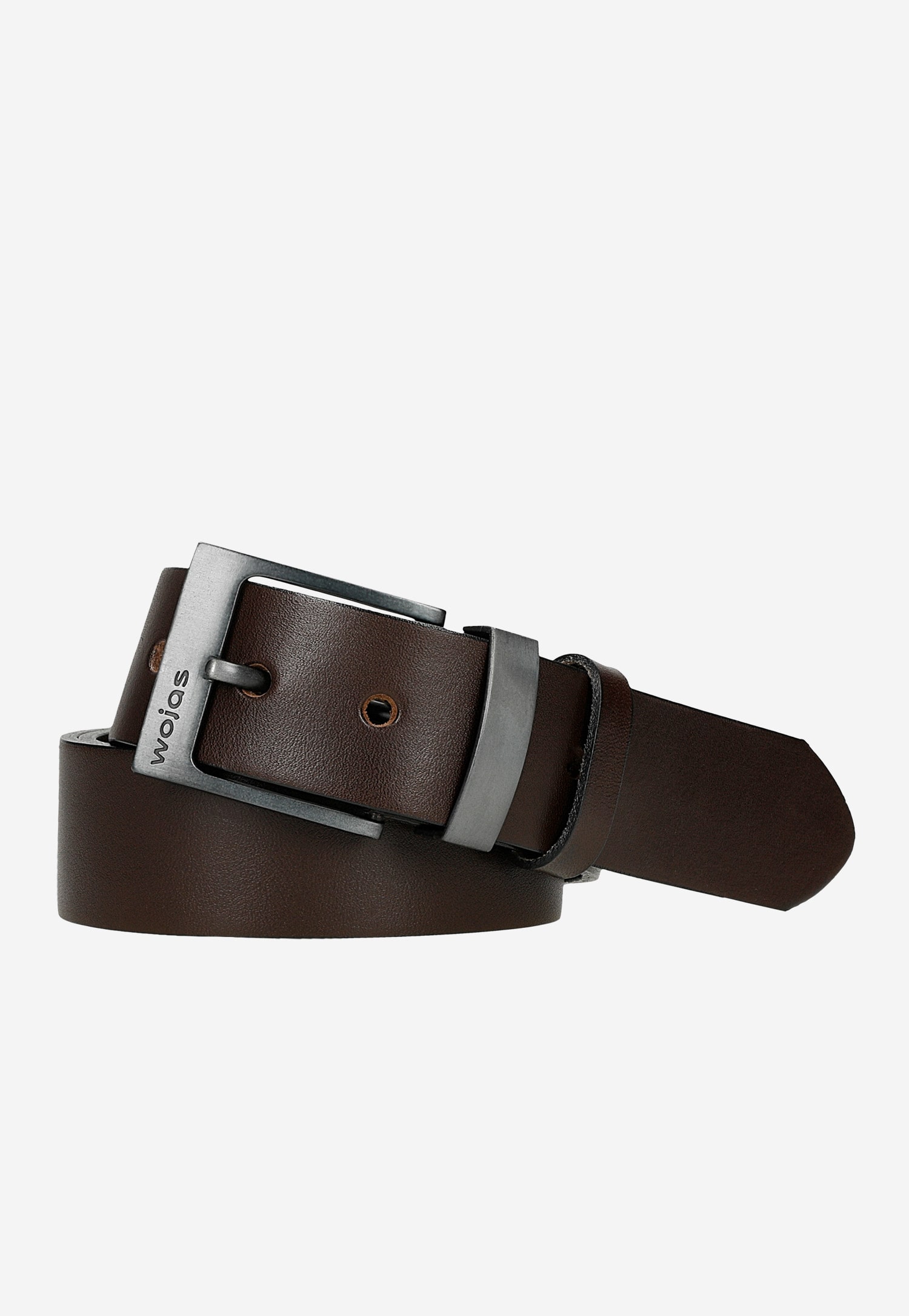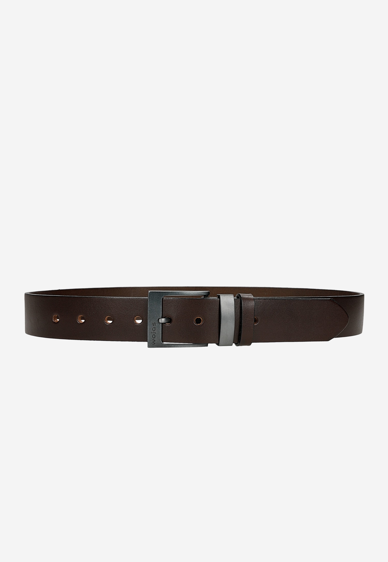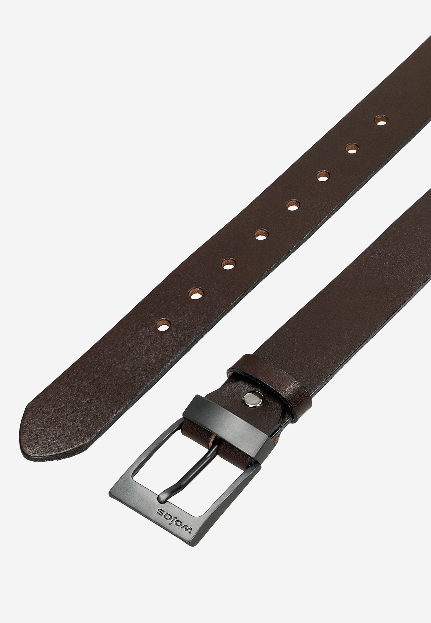 Brązowy skórzany pasek męski ze srebrną klamrą 93140-53 Ciemnobrązowy skórzany pasek męski 93140-52