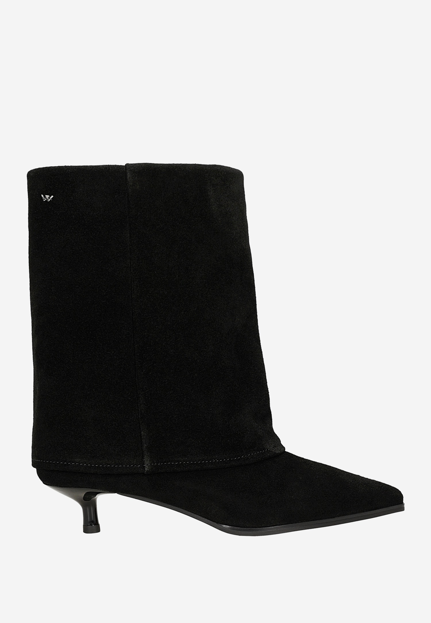 Czarne botki damskie z dwoiny welurowej 55345-61 Widok 1