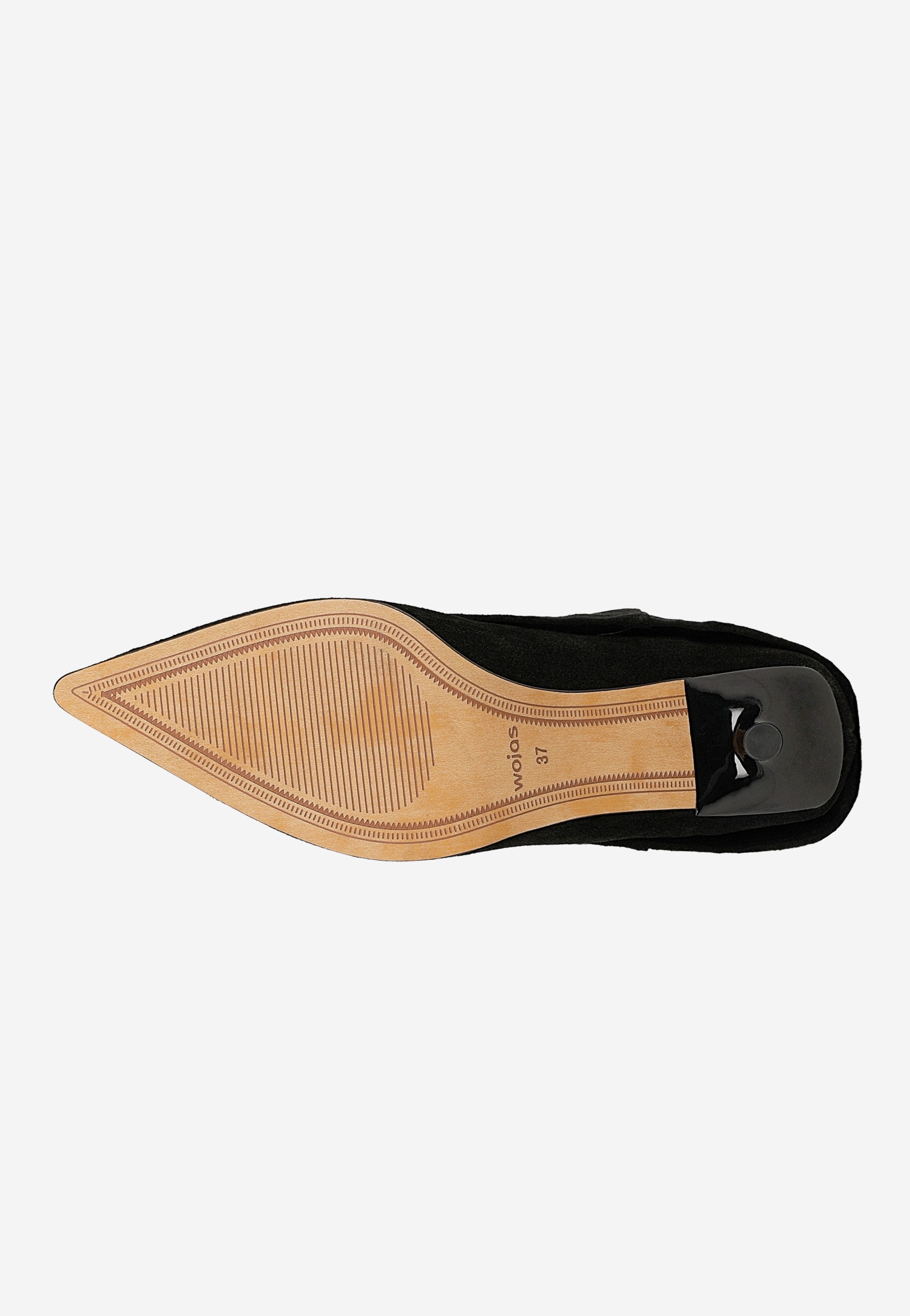 Brązowe botki damskie na niskiej szpilce 55345-62 Czarne botki damskie z dwoiny welurowej 55345-61 Czarne skórzane botki na kaczuszce 55345-51