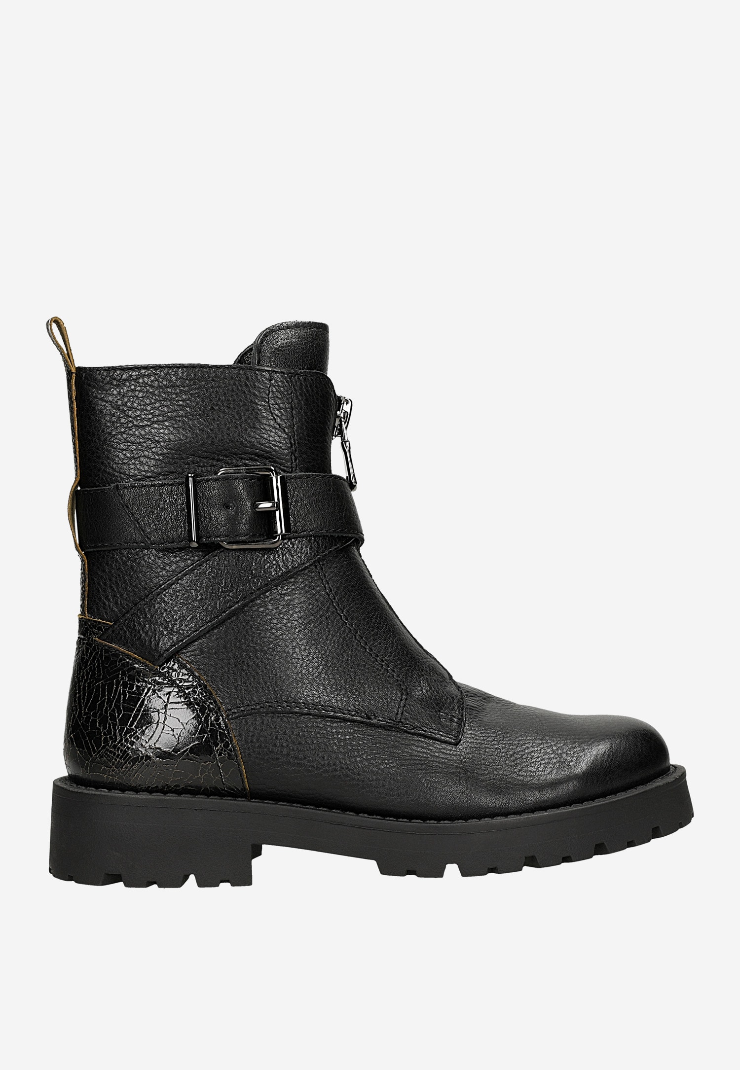 Czarne botki ze skóry licowej z lakierowanym zapiętkiem 55362-51