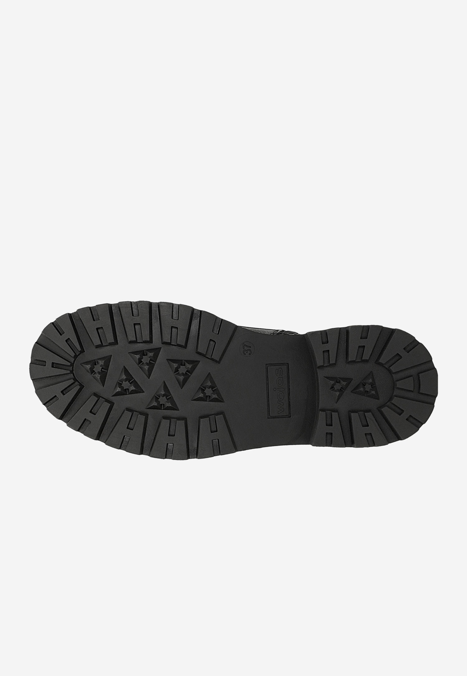 Brązowe skórzane botki ze wstawką w panterkę 55362-72 Czarne botki ze skóry licowej z lakierowanym zapiętkiem 55362-51