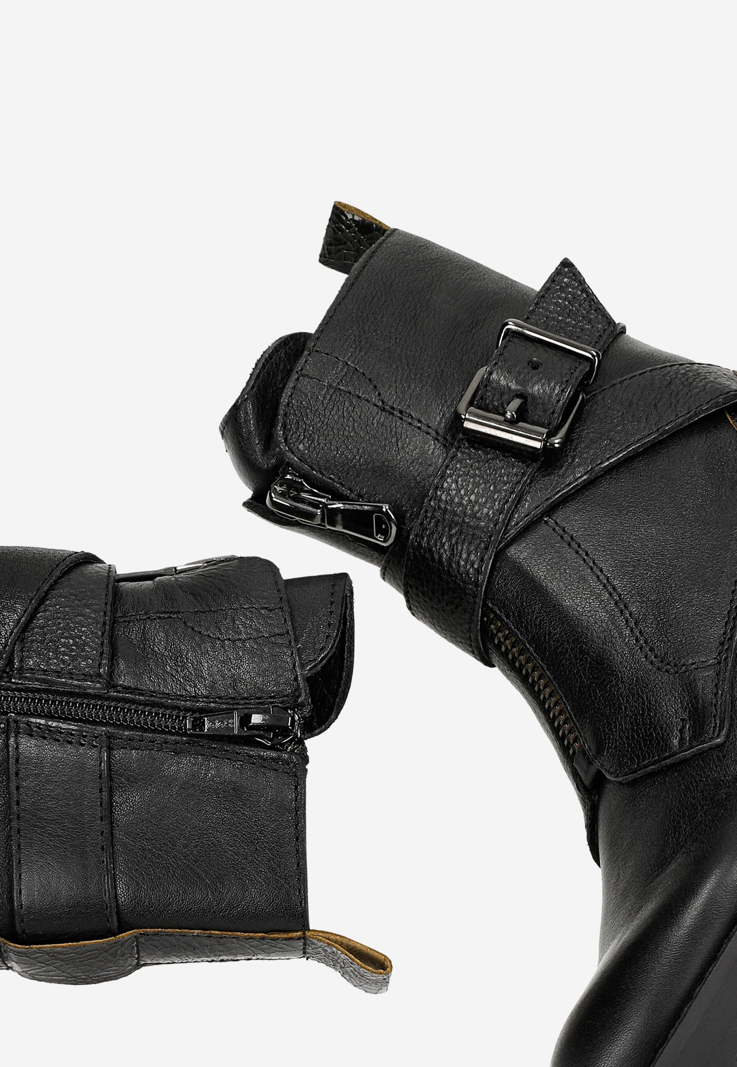 Czarne botki ze skóry licowej z lakierowanym zapiętkiem 55362-51 Widok 4