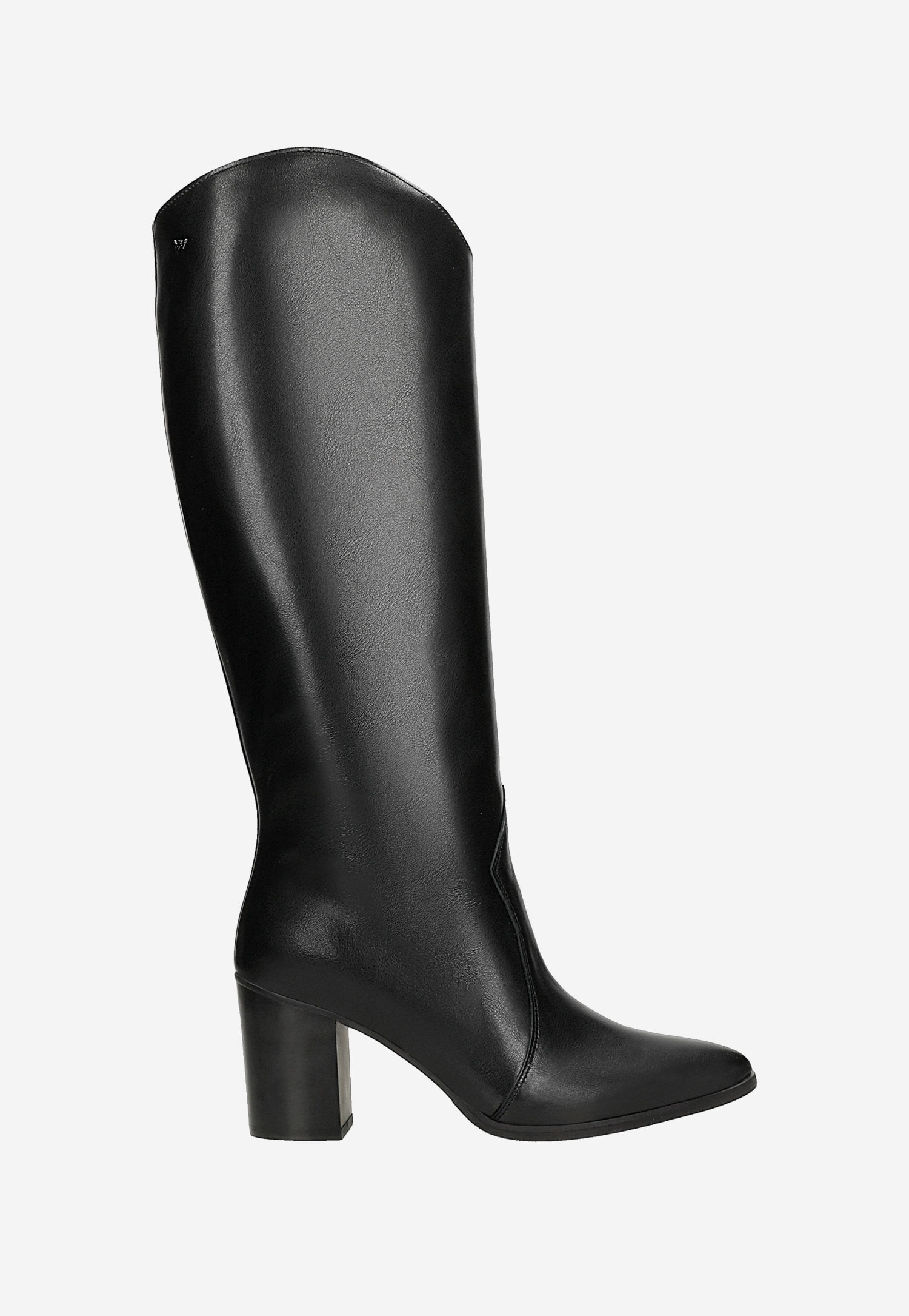 Czarne kozaki kowbojki ze skóry licowej 71151-51