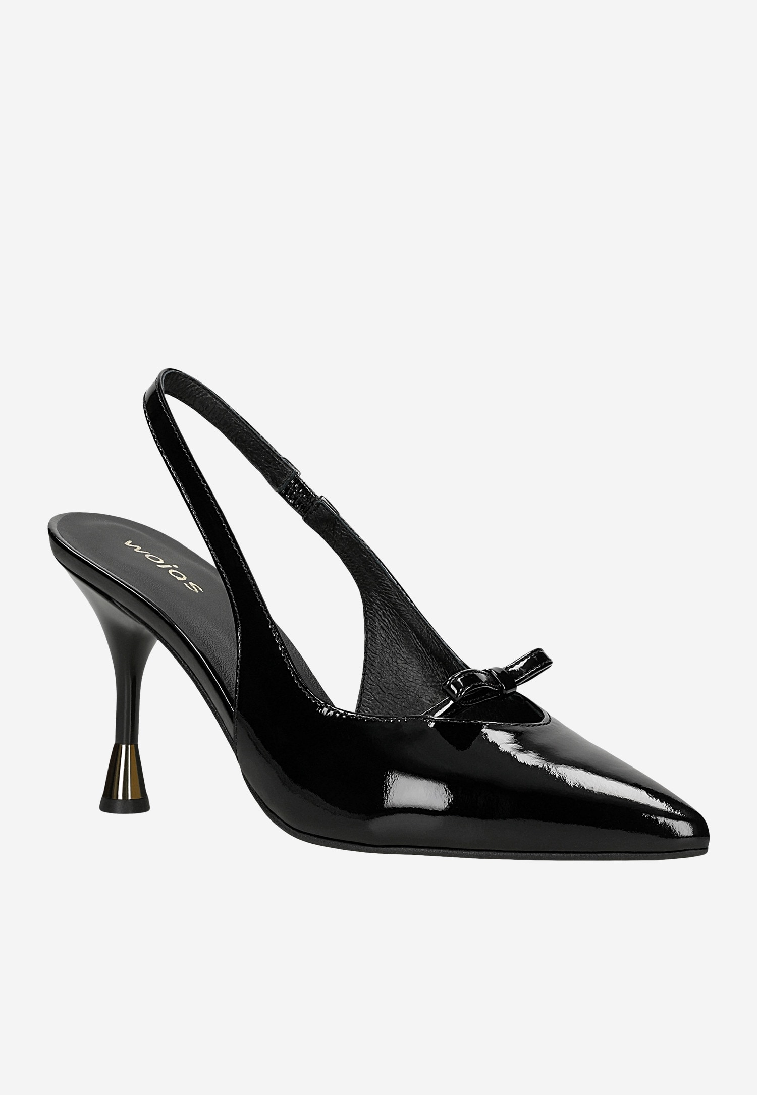 Czółenka osadzono na eleganckiej szpilce o wysokości 9 cm, która optycznie wydłuża sylwetkę i dodaje pewności siebie. Delikatna kokardka z przodu stanowi subtelny akcent ozdobny, podkreślający formalny charakter obuwia. Wnętrze wykończono kombinacją podszewki ze skóry świńskiej i koziej, która zapewnia komfort noszenia przez cały dzień.
