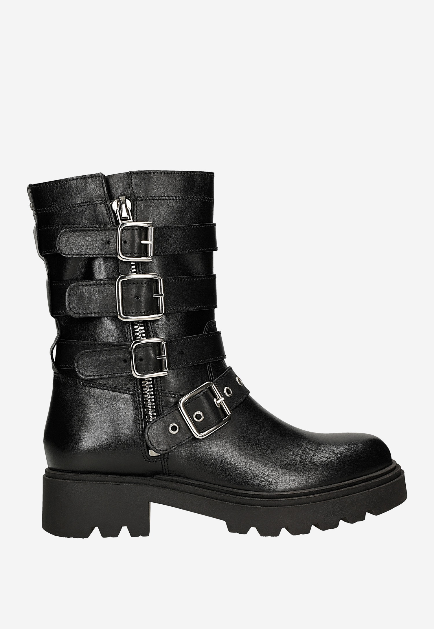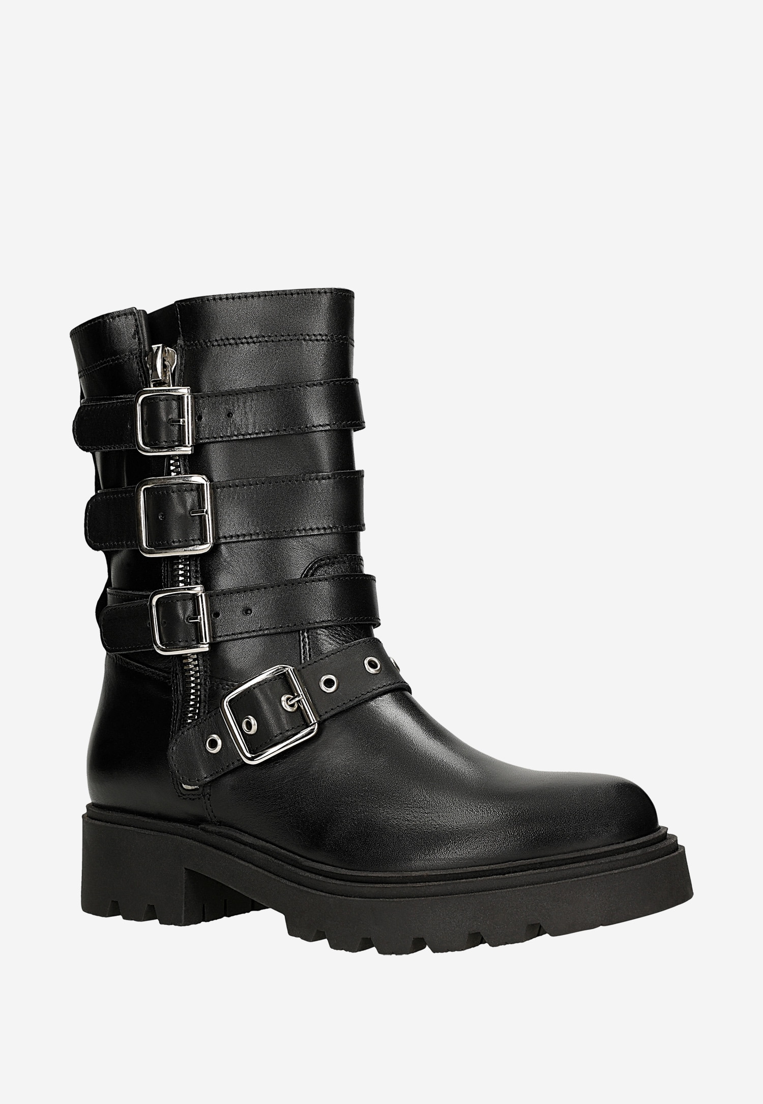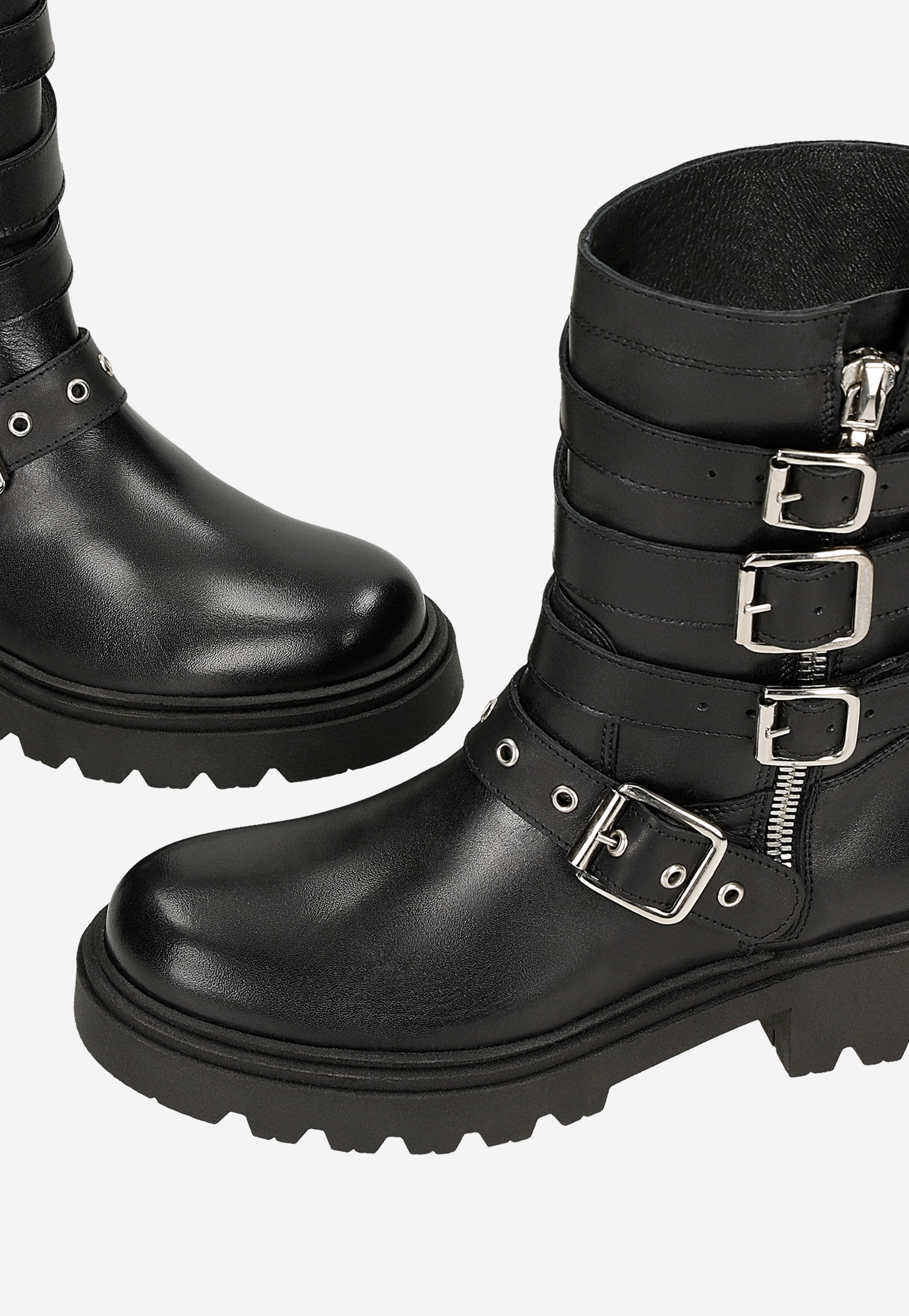 Czarne skórzane bikery z czterema klamrami 55313-51 Widok 1