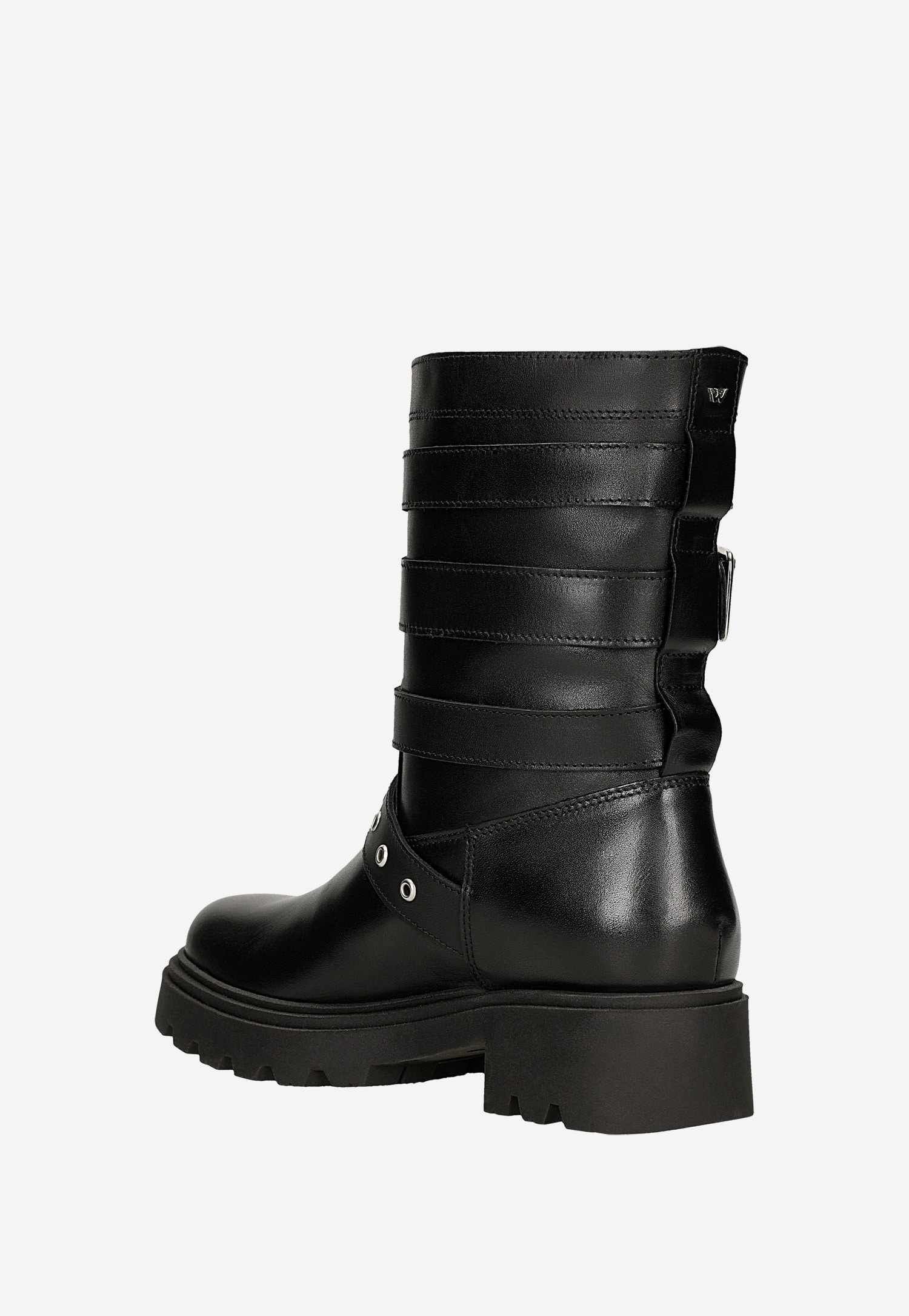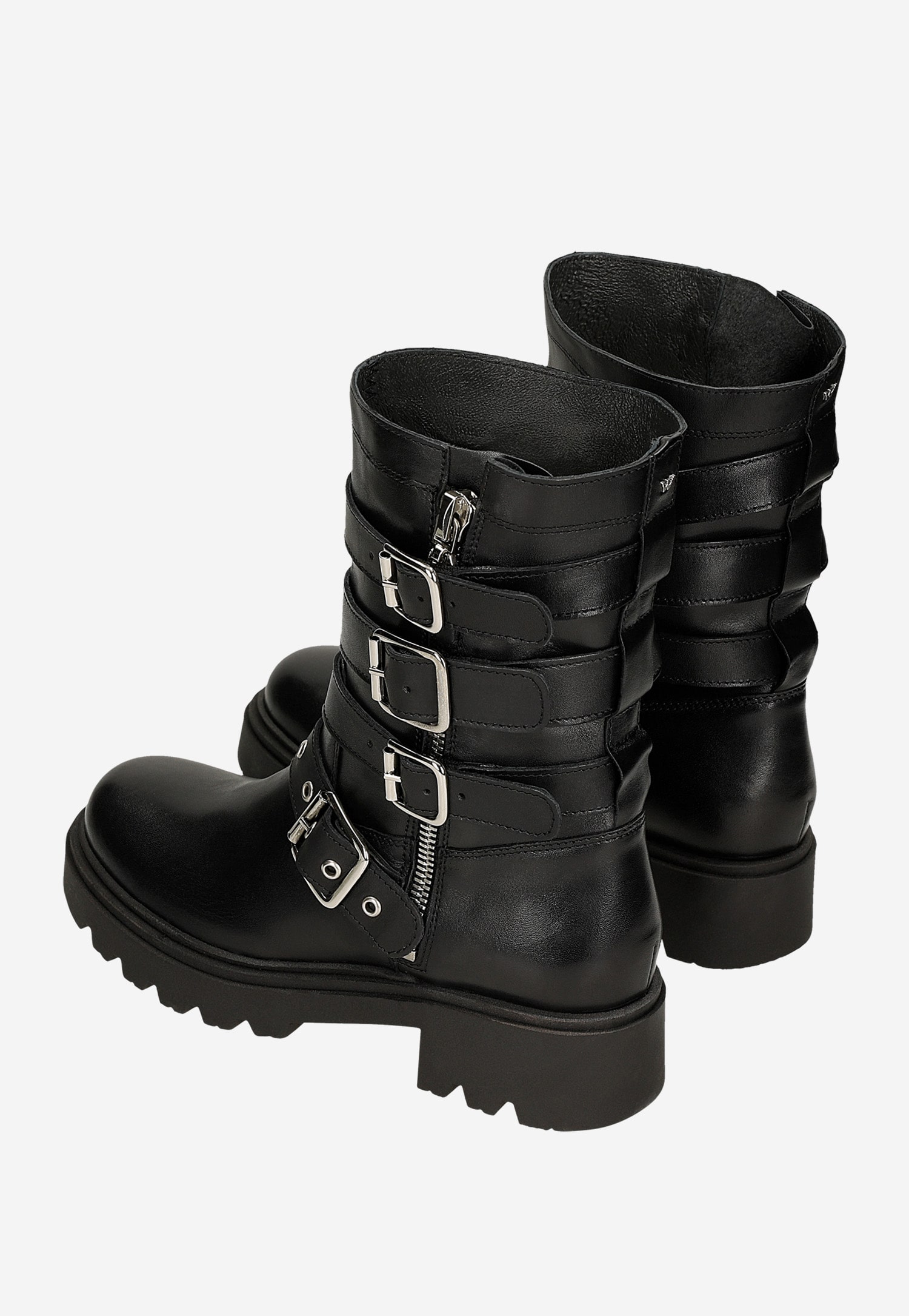 Czarne skórzane bikery z czterema klamrami 55313-51