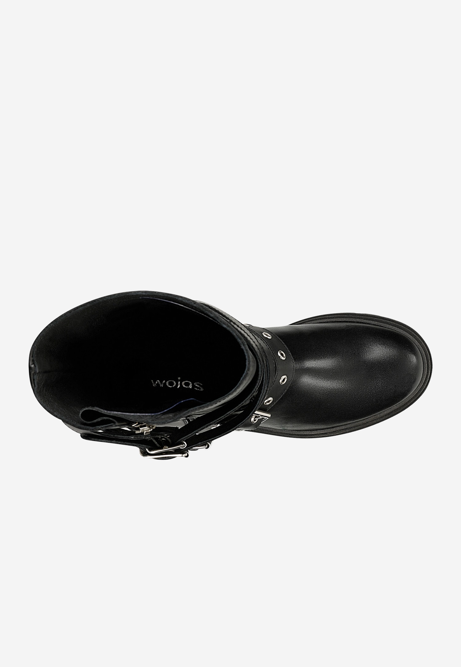 Czarne skórzane bikery z czterema klamrami 55313-51 Widok 3