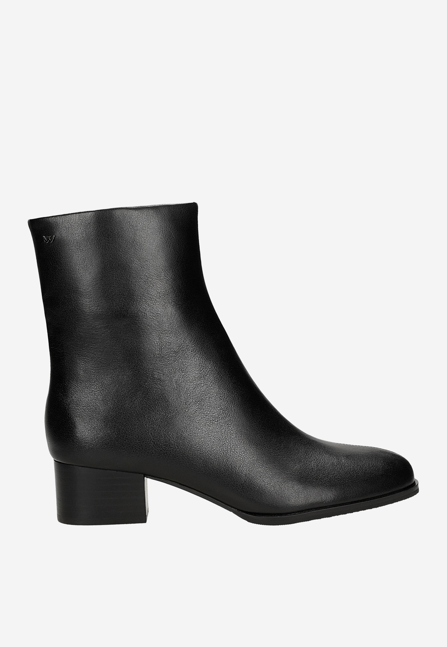 Czarne skórzane botki na niskim obcasie 55329-51 Widok 1